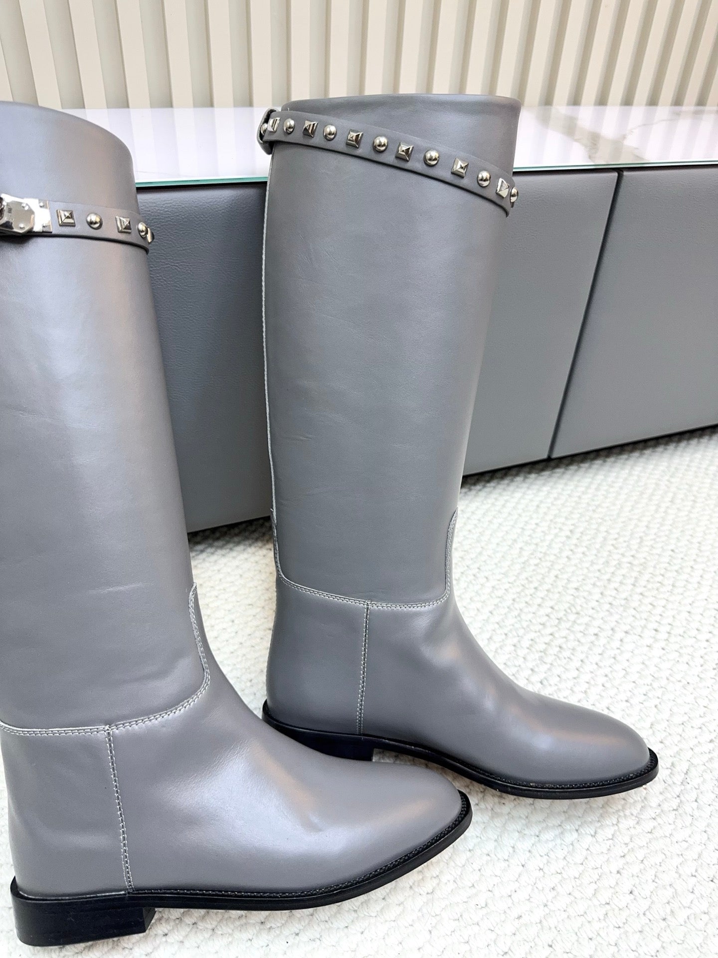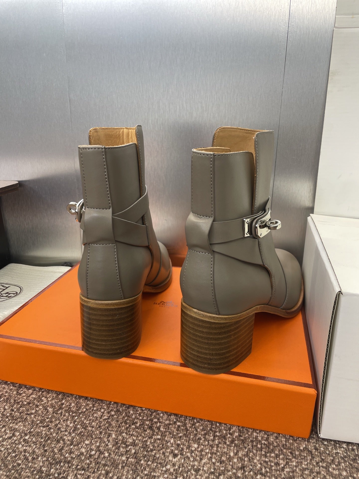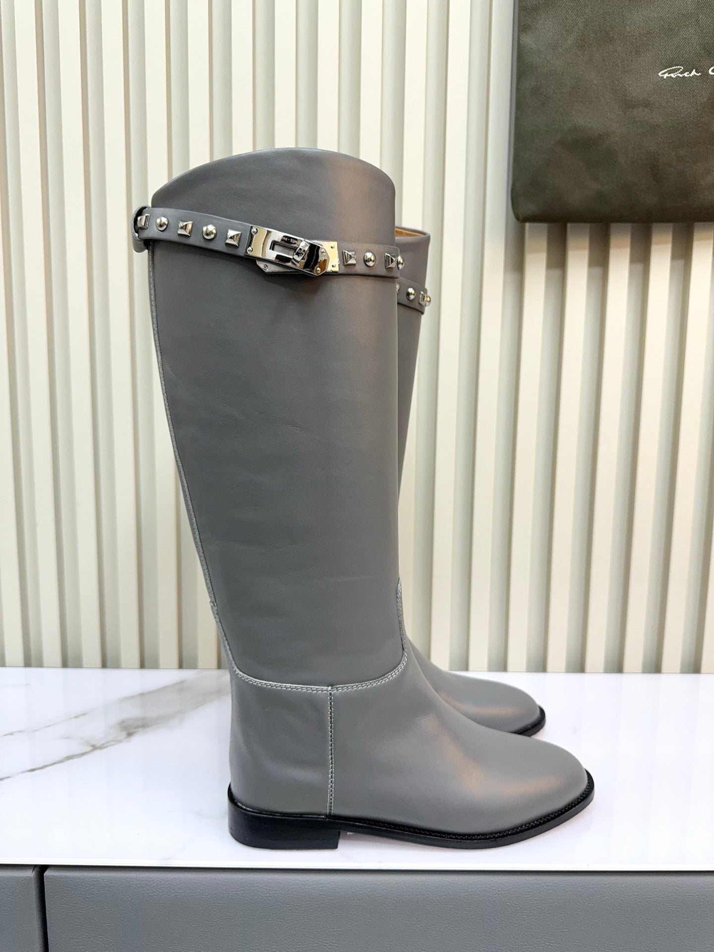 HM 25ss Kelly Buckle Riding Boots Gray Cowhide 576120