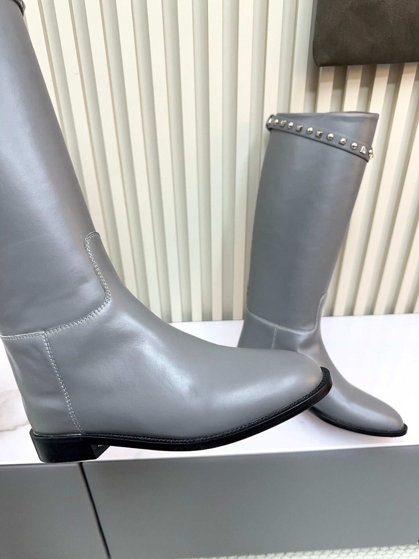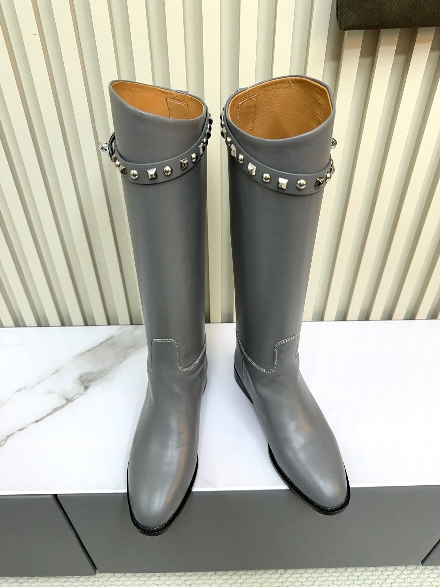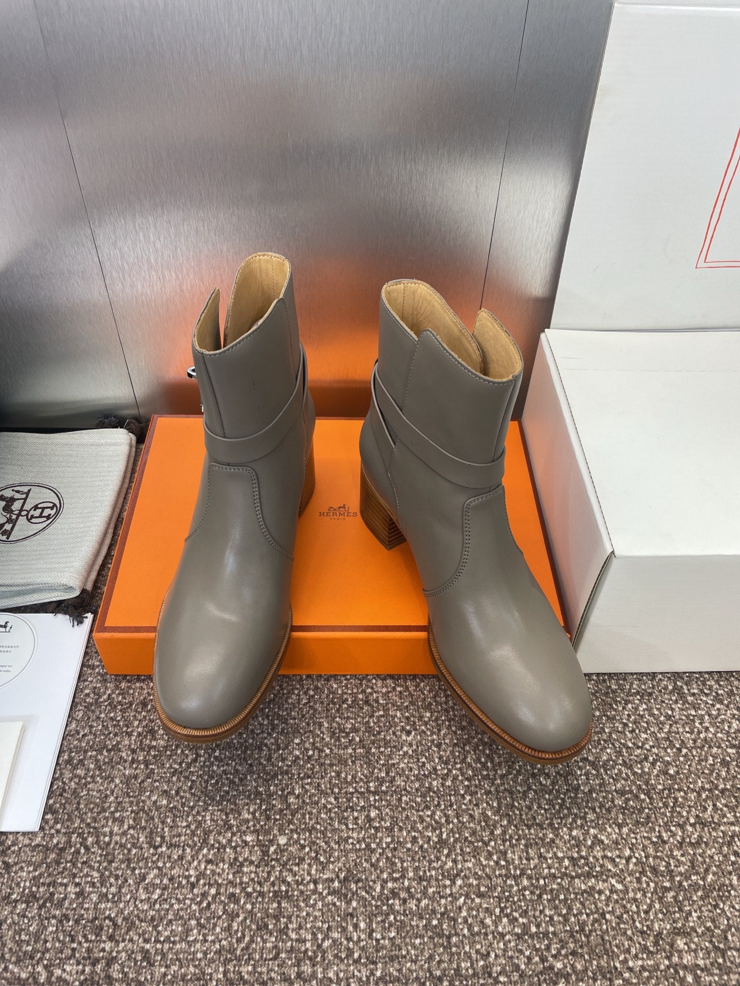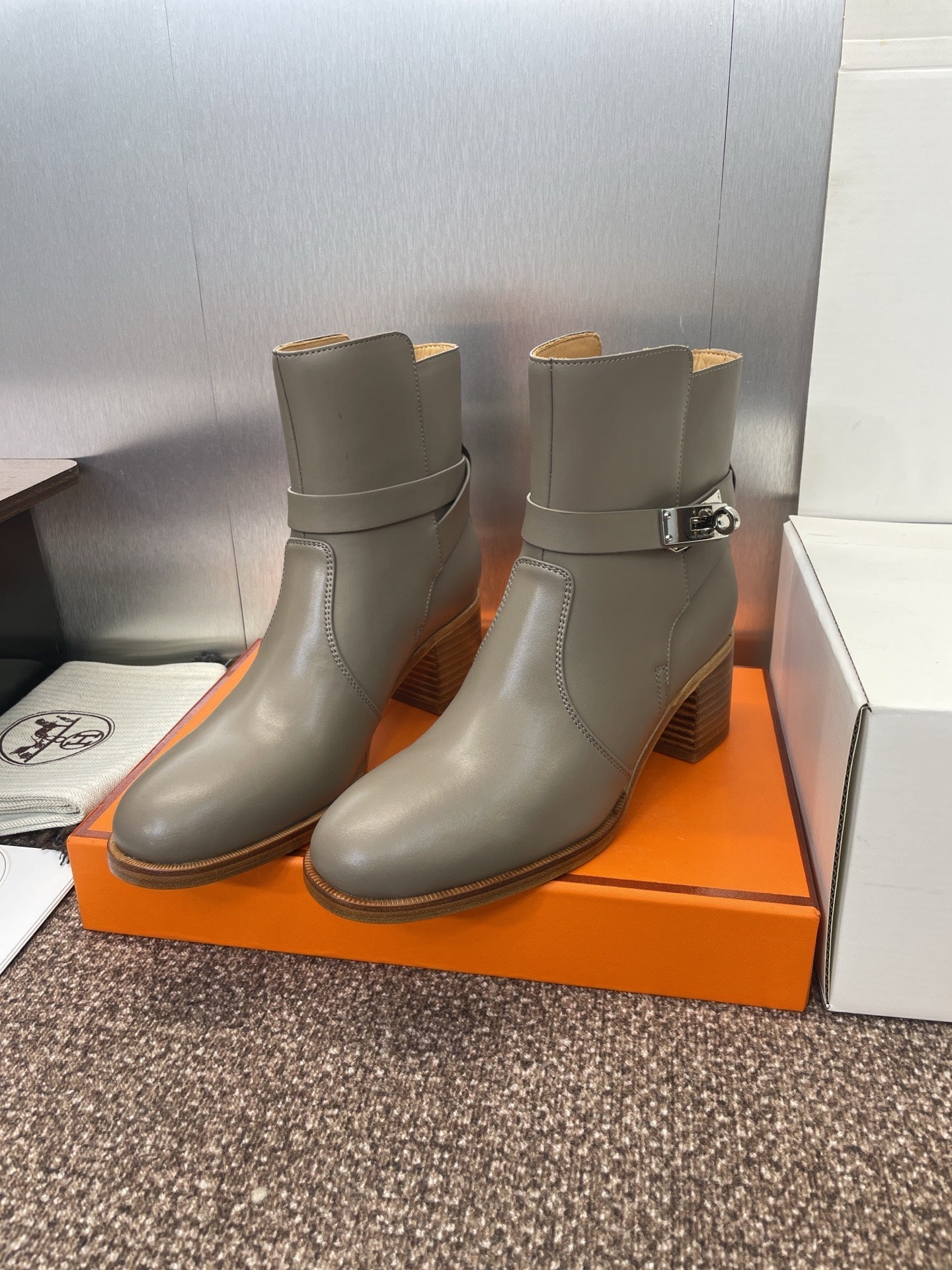 HM 25ss Kelly Buckle Riding Boots Gray Cowhide 576120