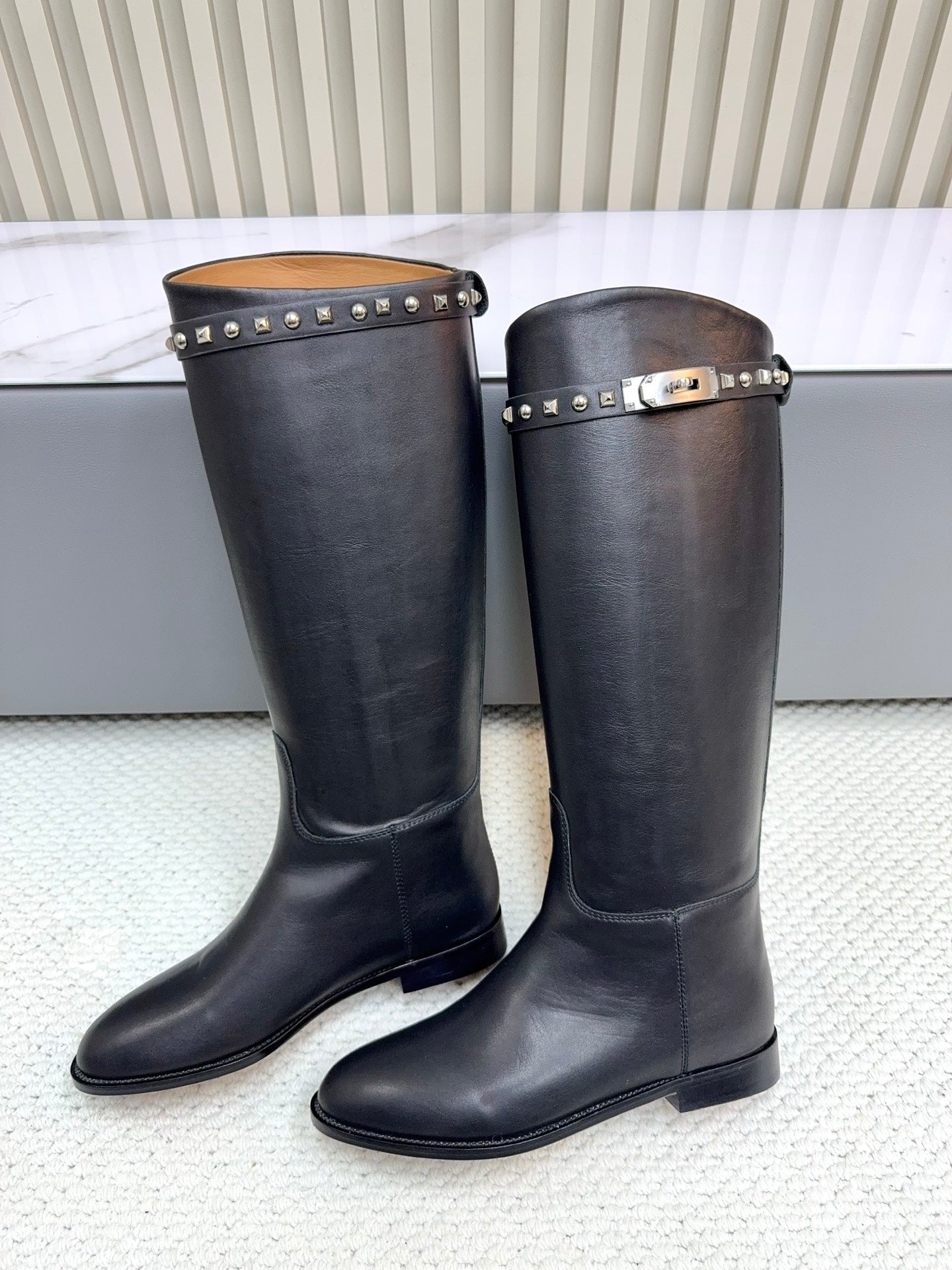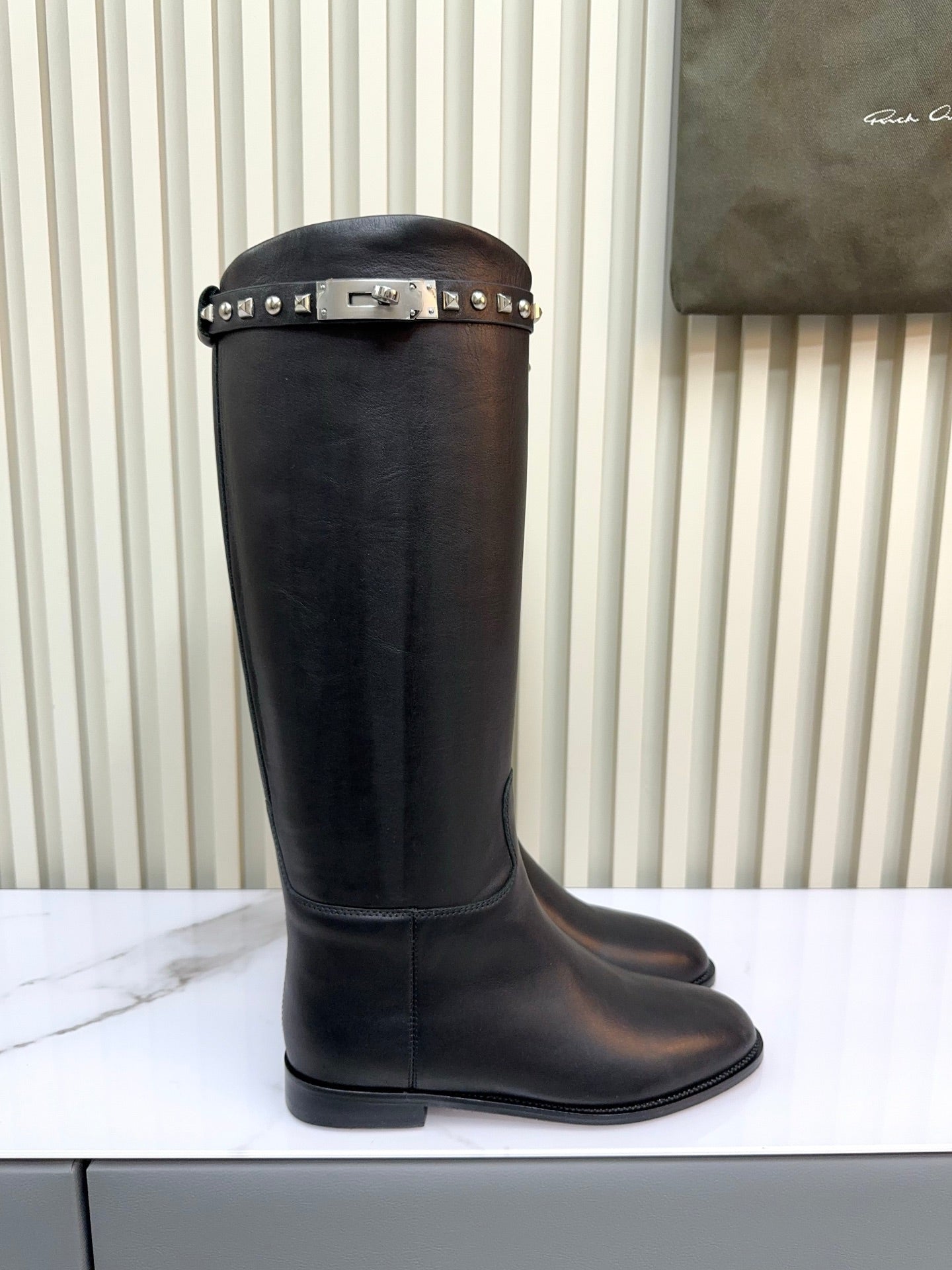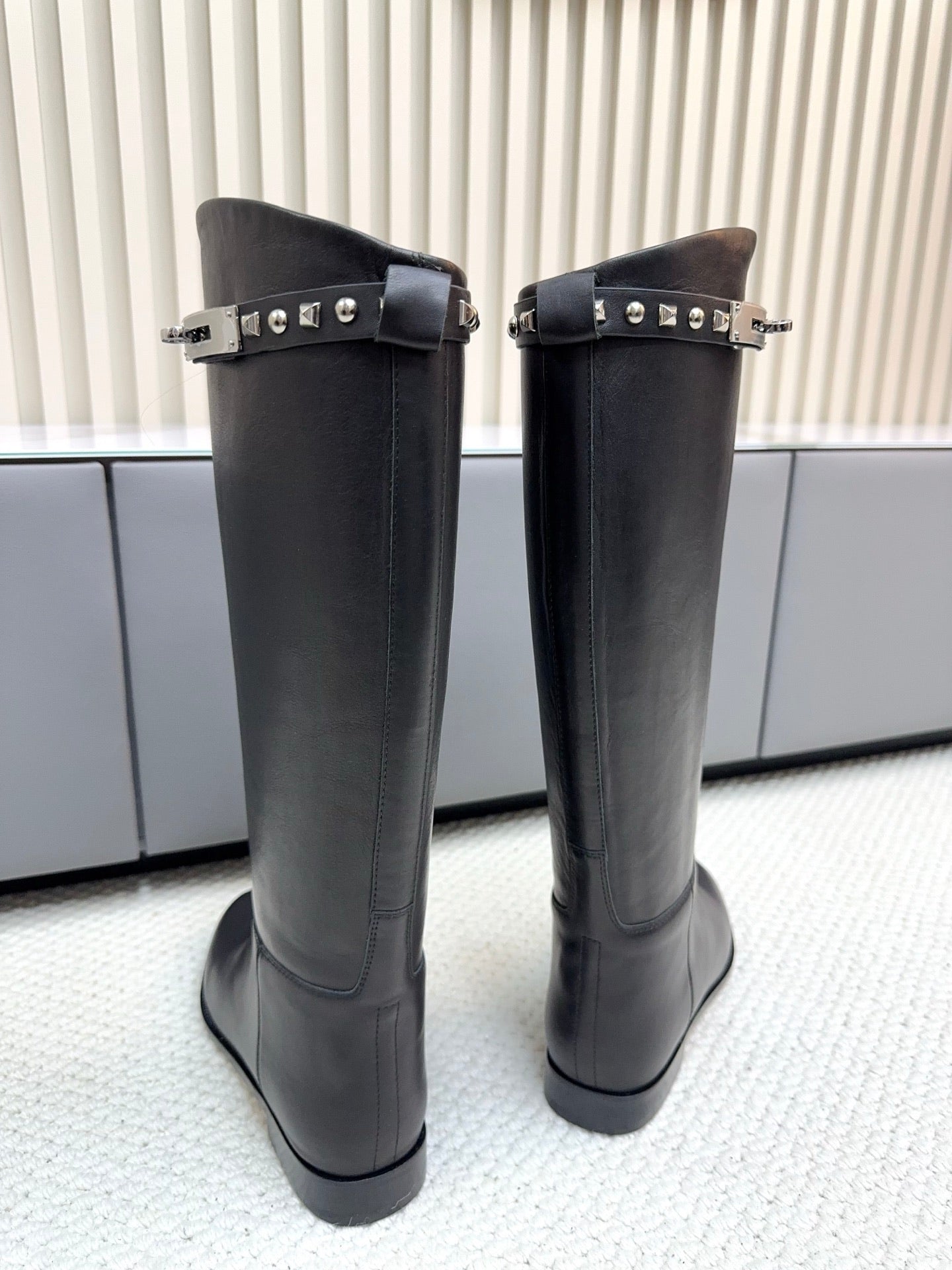 HM 25ss Kelly Buckle Riding Boots Black Cowhide 576121