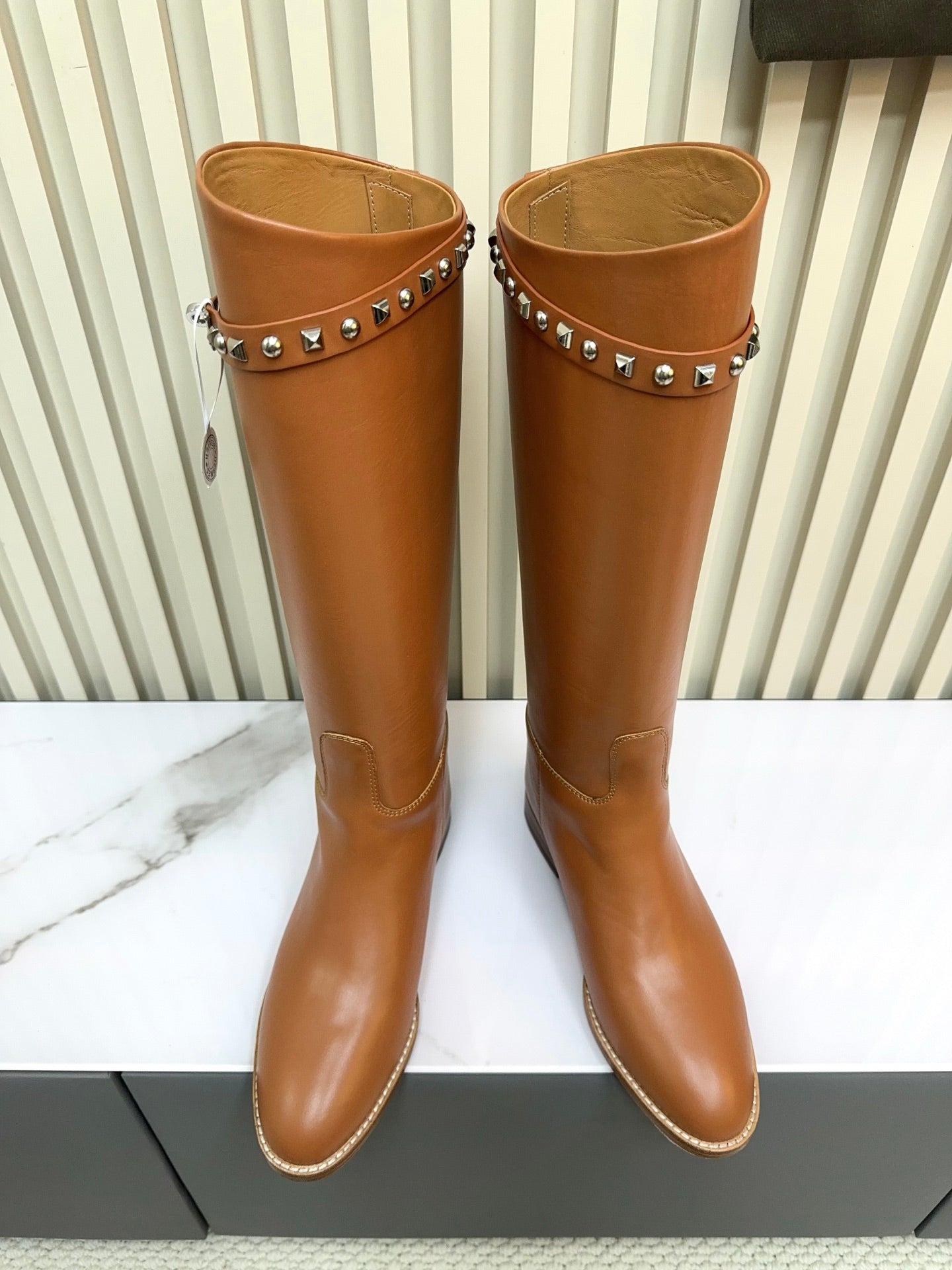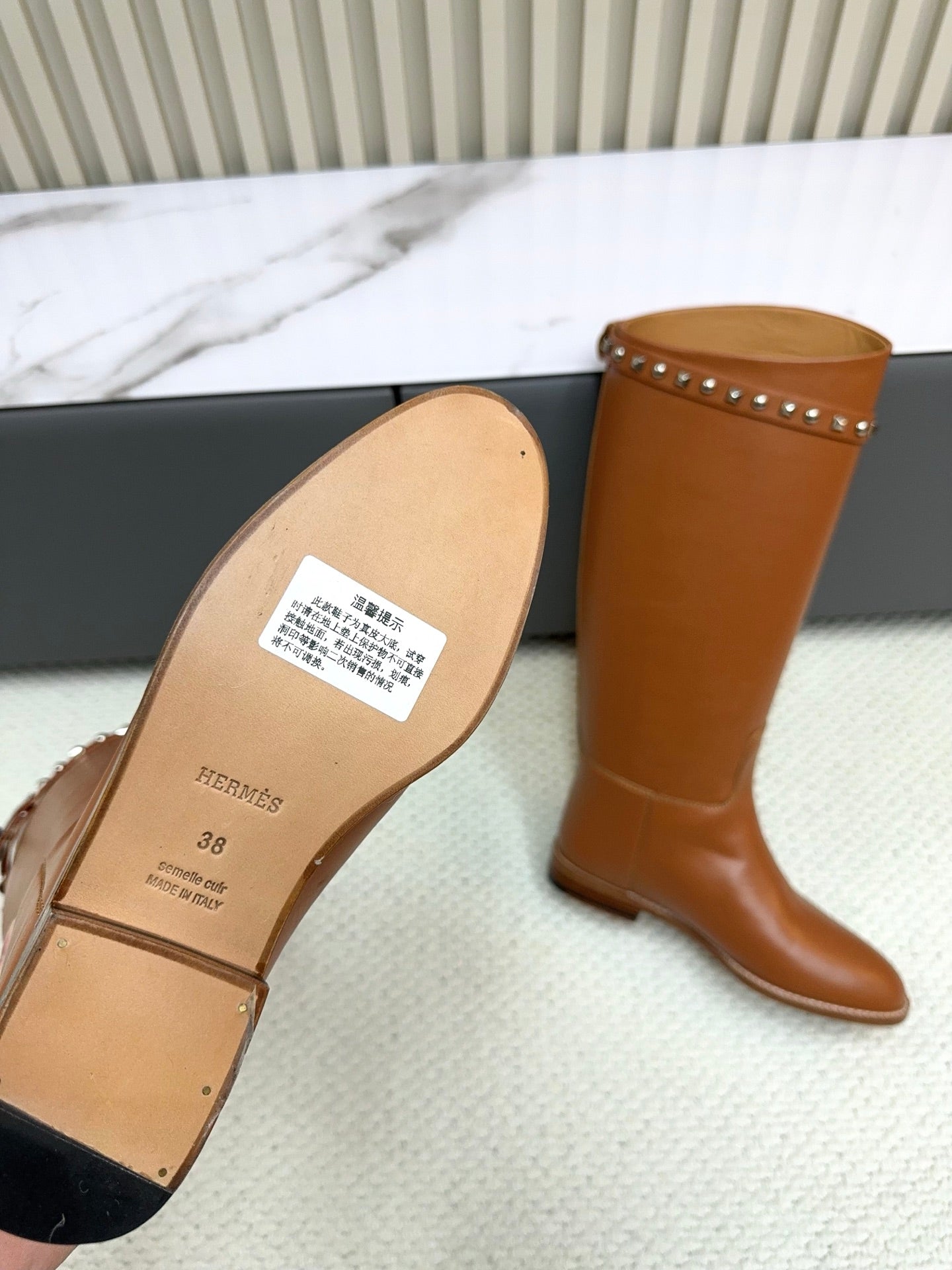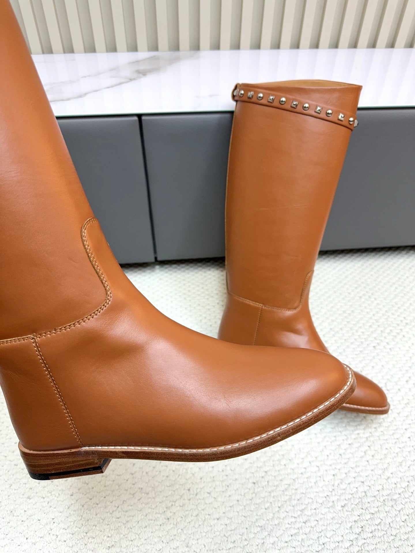 HM 25ss Kelly Buckle Riding Boots Camel Brown Cowhide 576123
