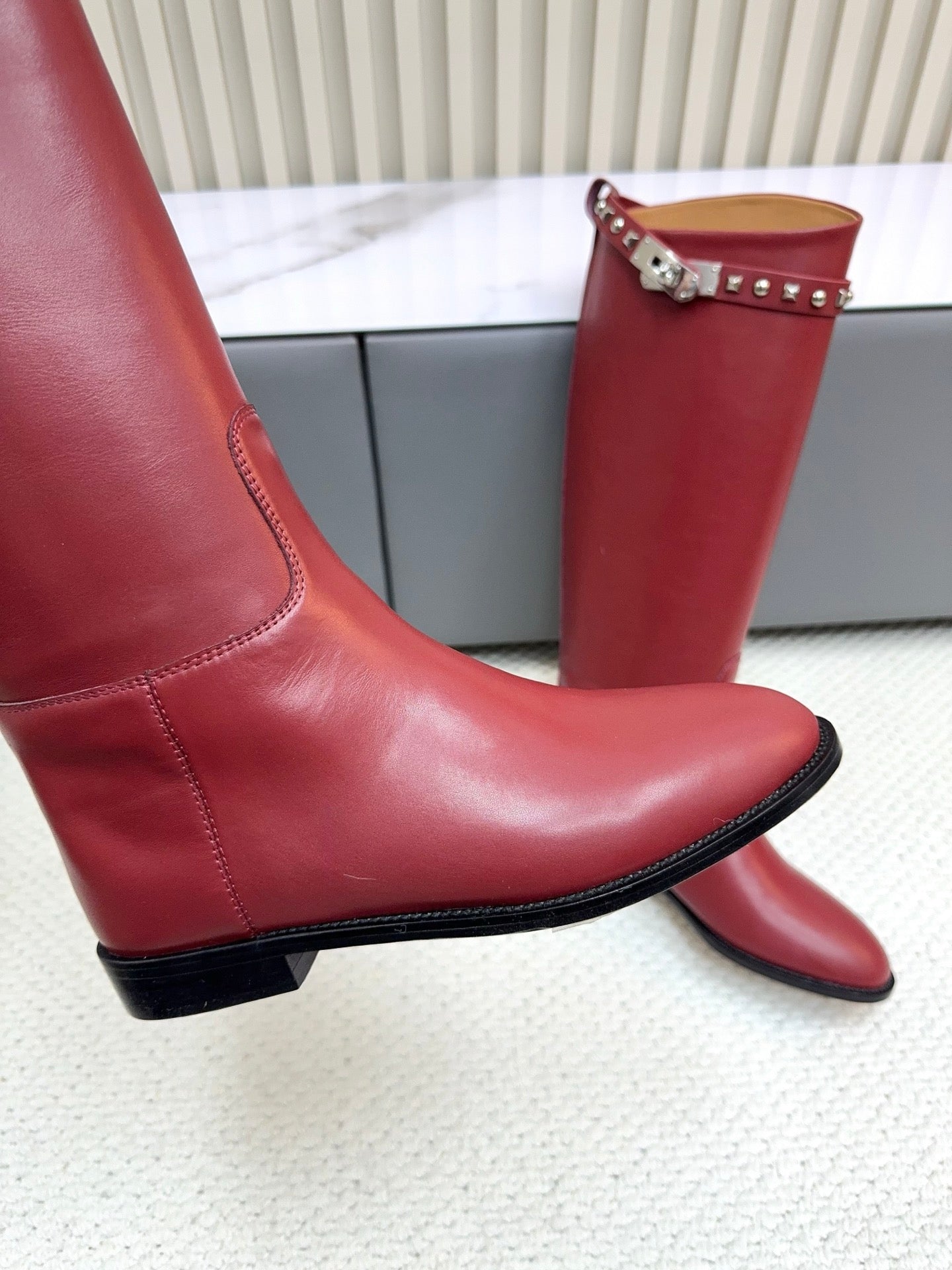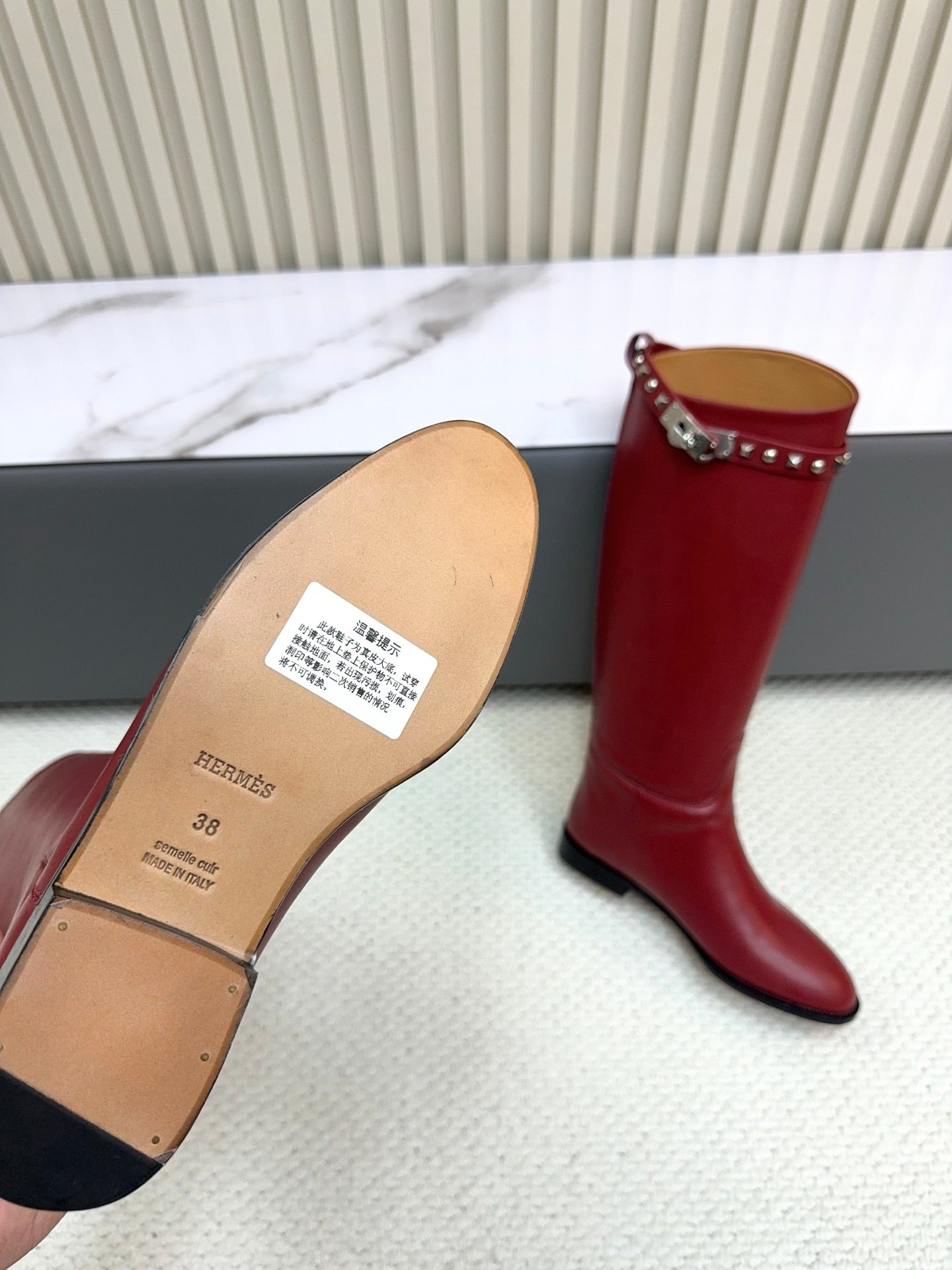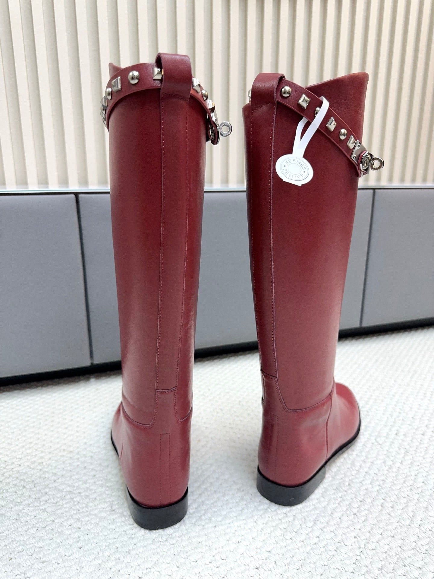 HM 25ss Kelly Buckle Riding Boots Red Cowhide 576124