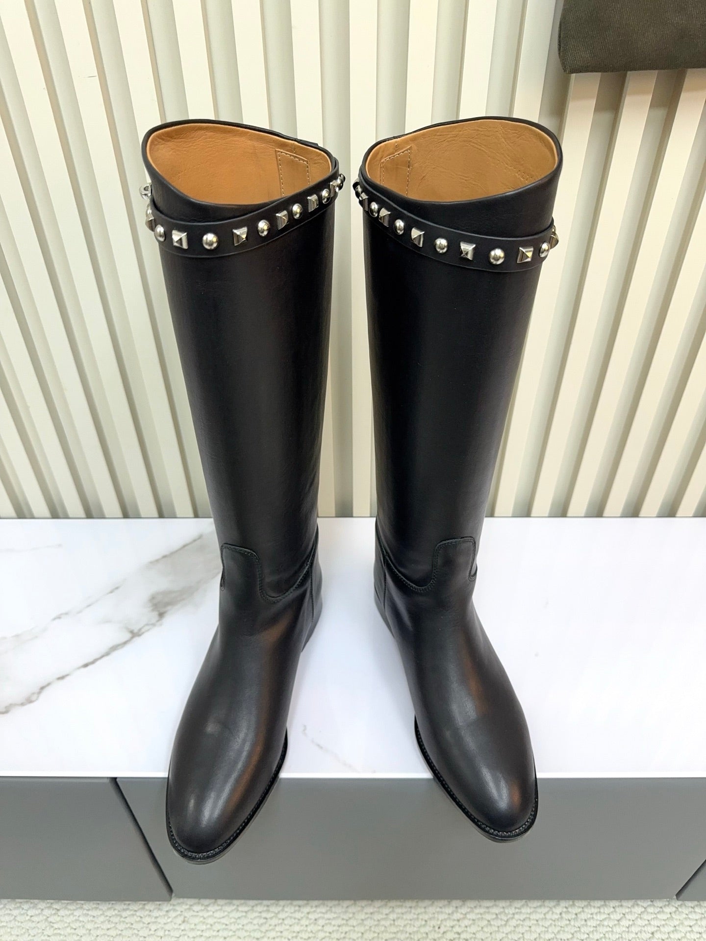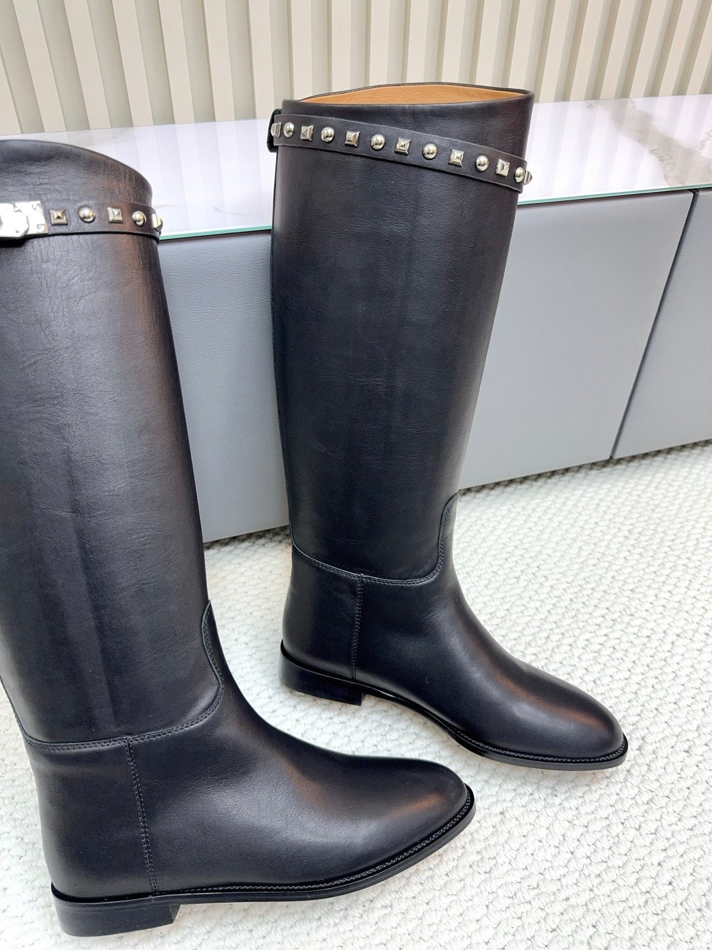 HM 25ss Kelly Buckle Riding Boots Black Cowhide 576121