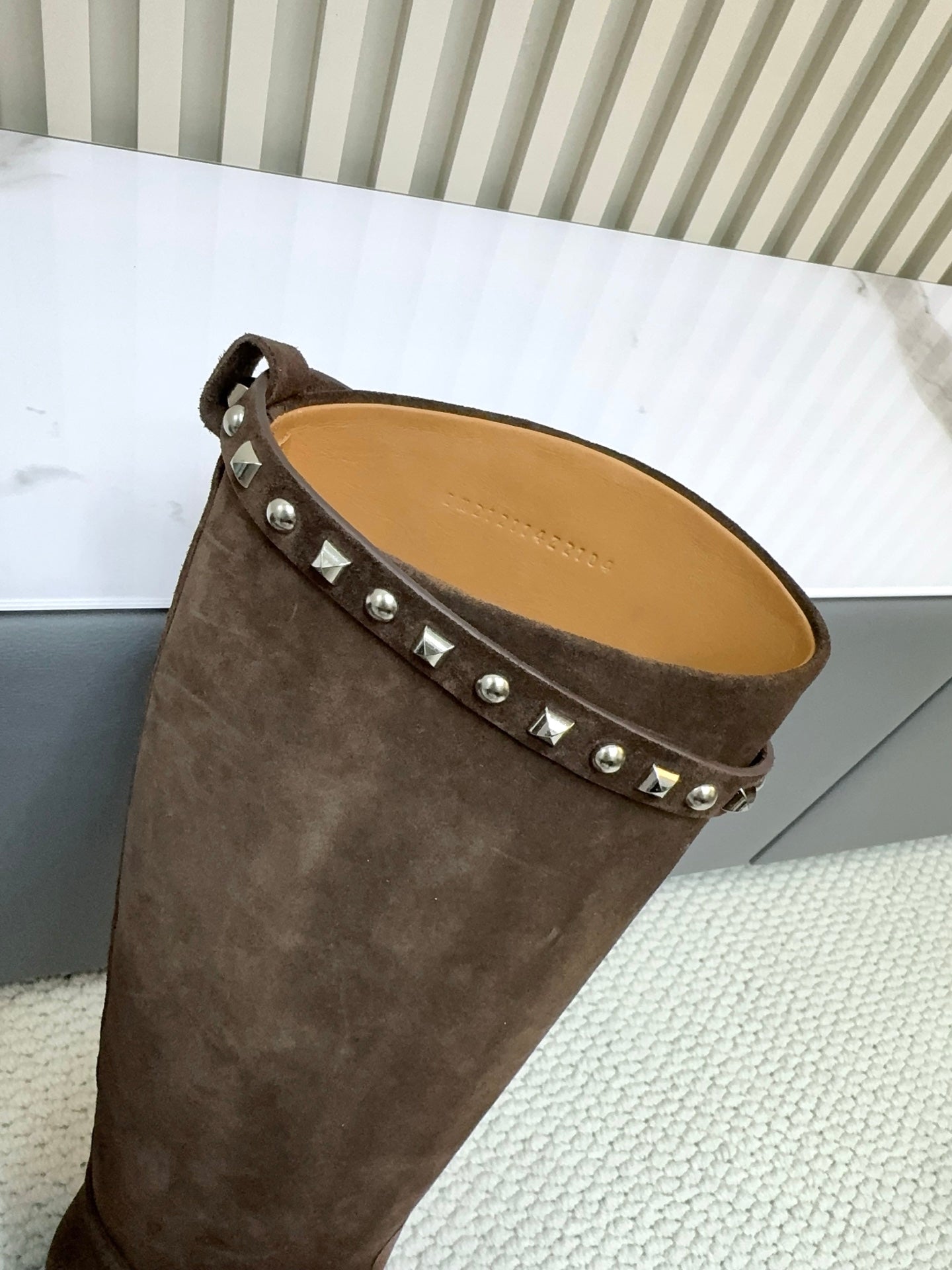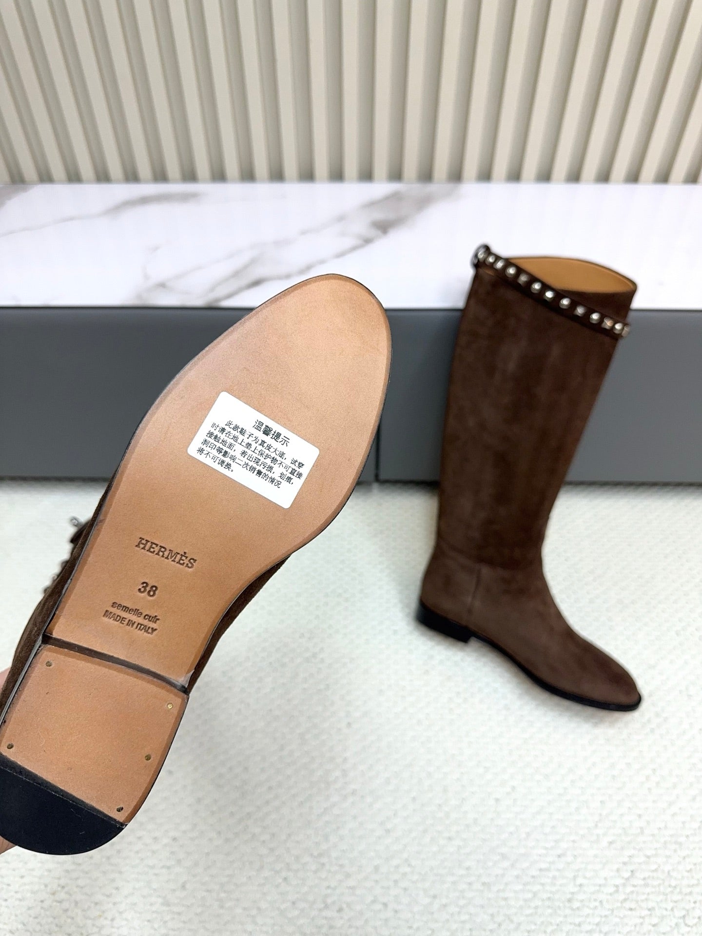 HM 25ss Kelly Buckle Riding Boots Dark Brown Suede 576118