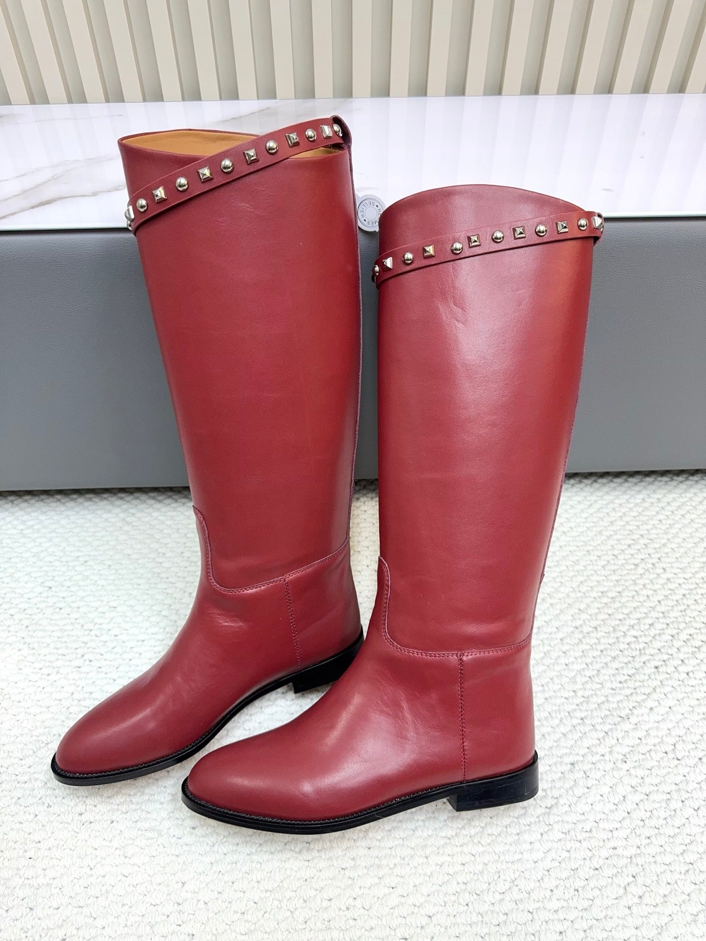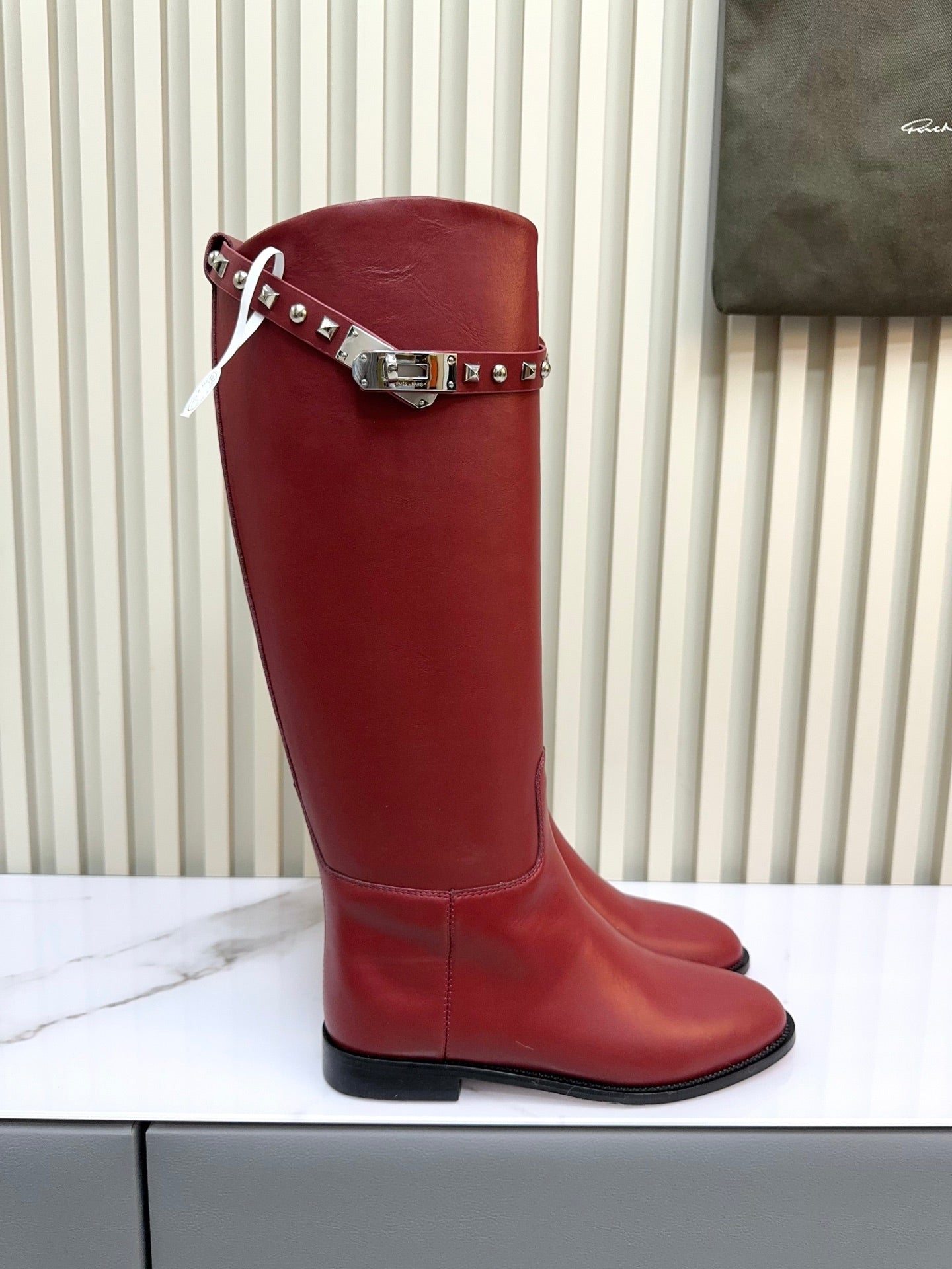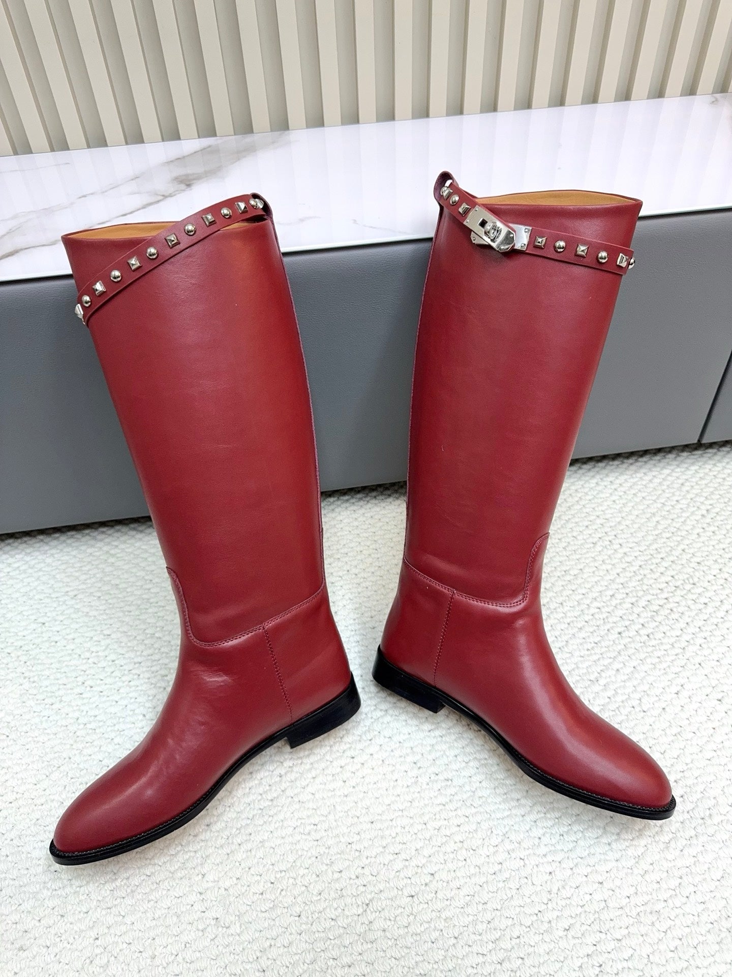 HM 25ss Kelly Buckle Riding Boots Red Cowhide 576124