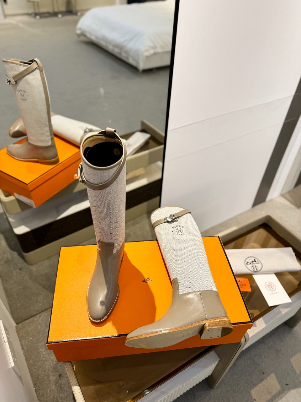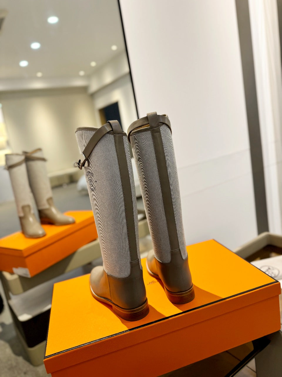 HM Jumping Boot 20mm Beige Light Brown Mix Grey White Cowhide And Tech Fabric 961655