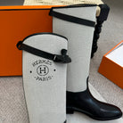 HM Jumping Boot In White Mix Black Calfskin And Burlap 973841