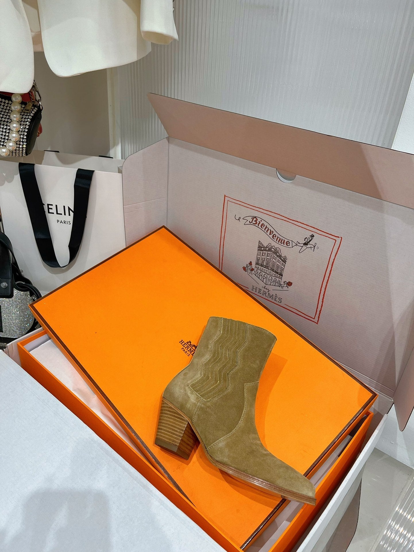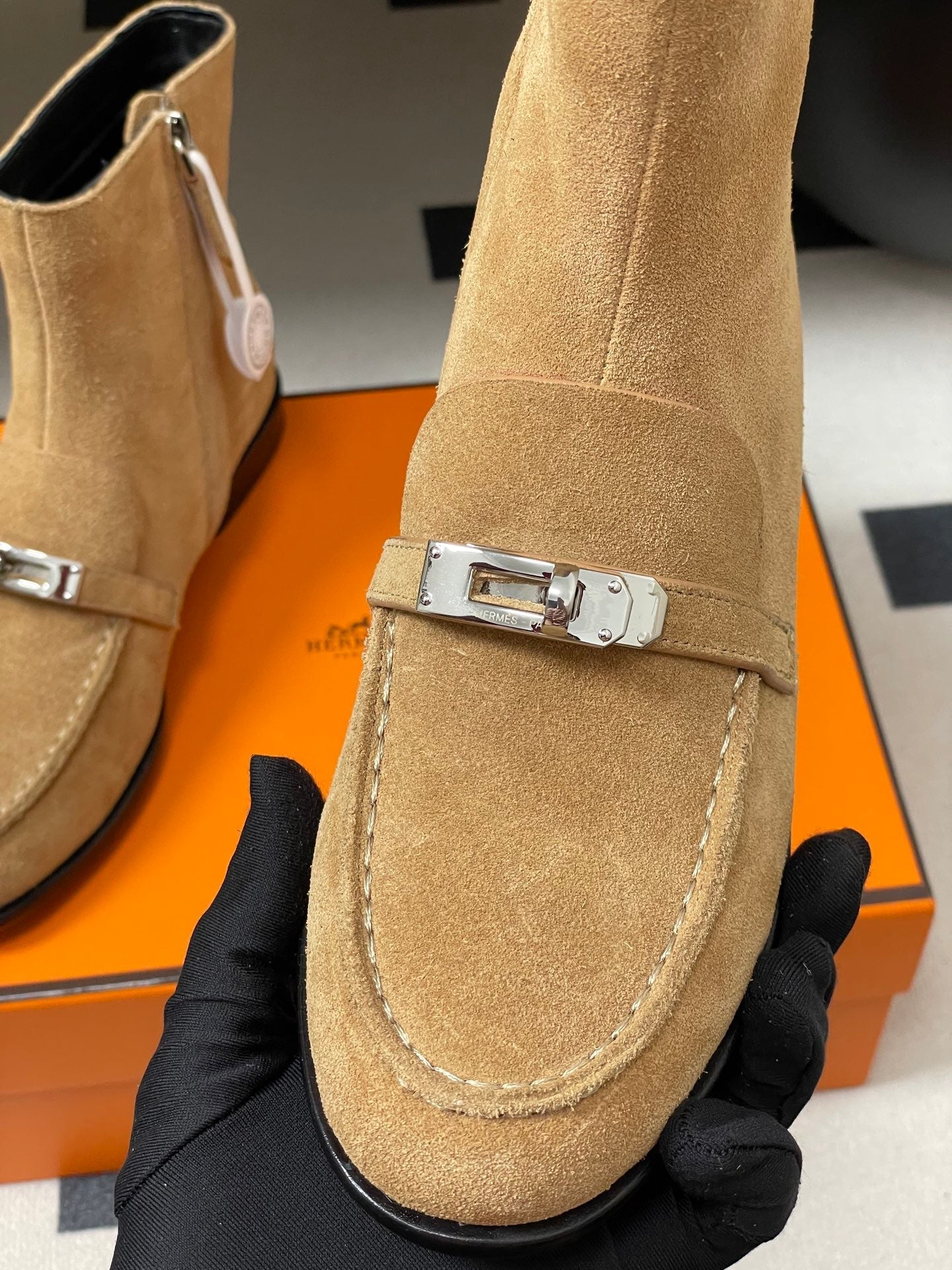 HM Short Boots 25mm Kelly Buckle Light Beige Suede