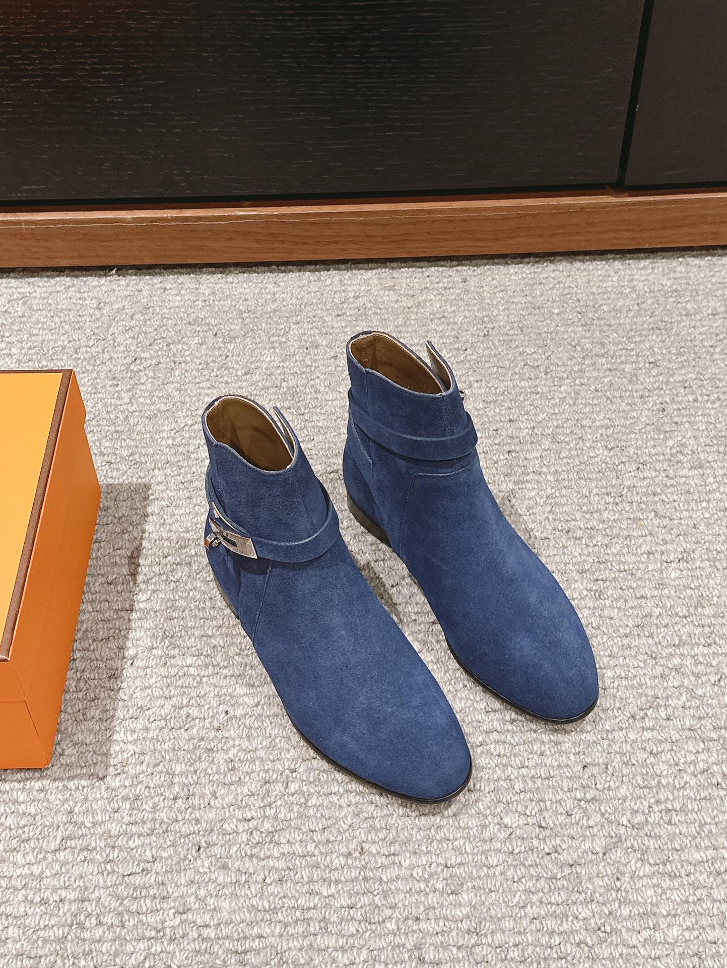 HM Short Boots 25mm Kelly Buckle Rich Burnt Orange Suede
