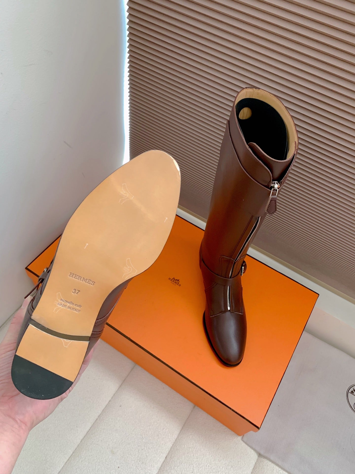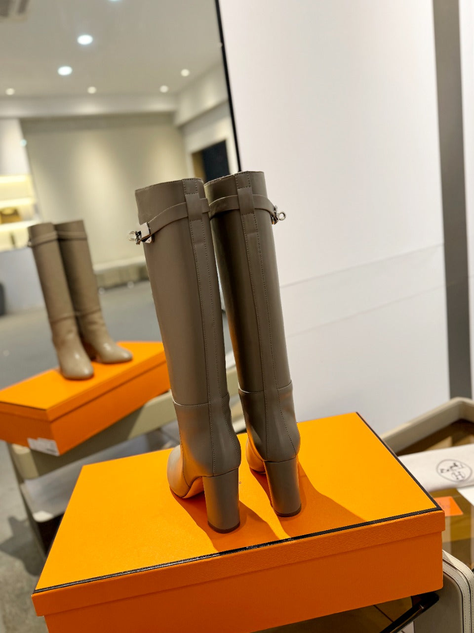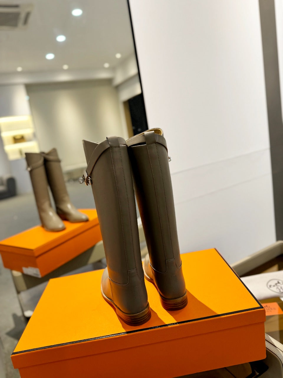 HM Riding Boots Taupe Gray Cowhide 464359