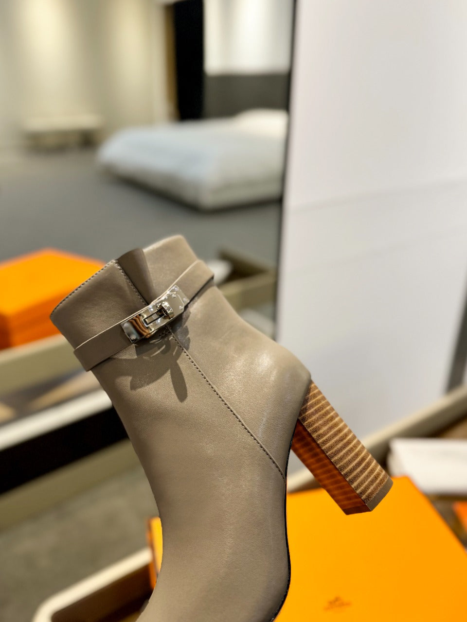 HM Saint Germain Ankle Boot 85mm Beige Light Brown Cowhide 961649