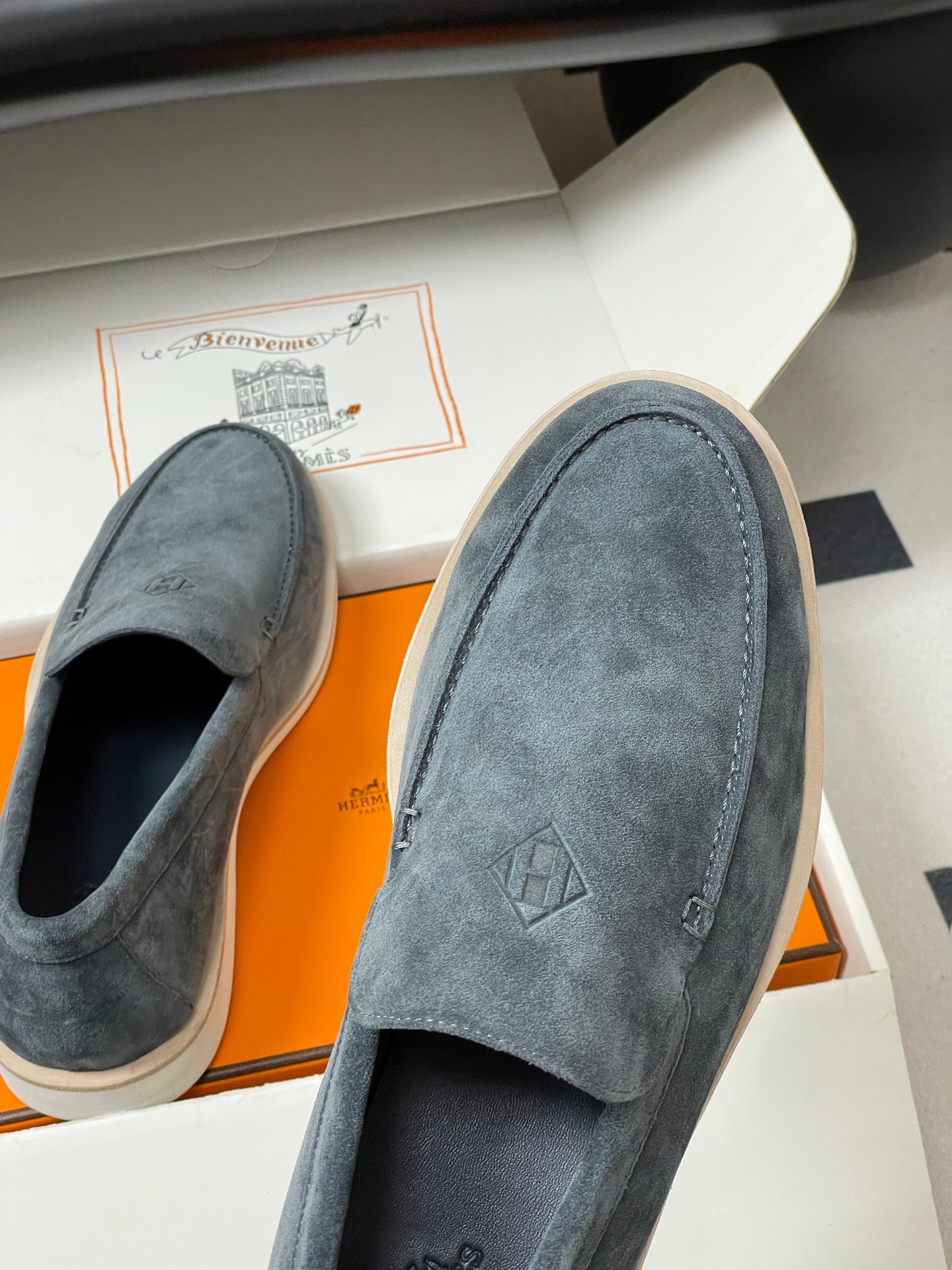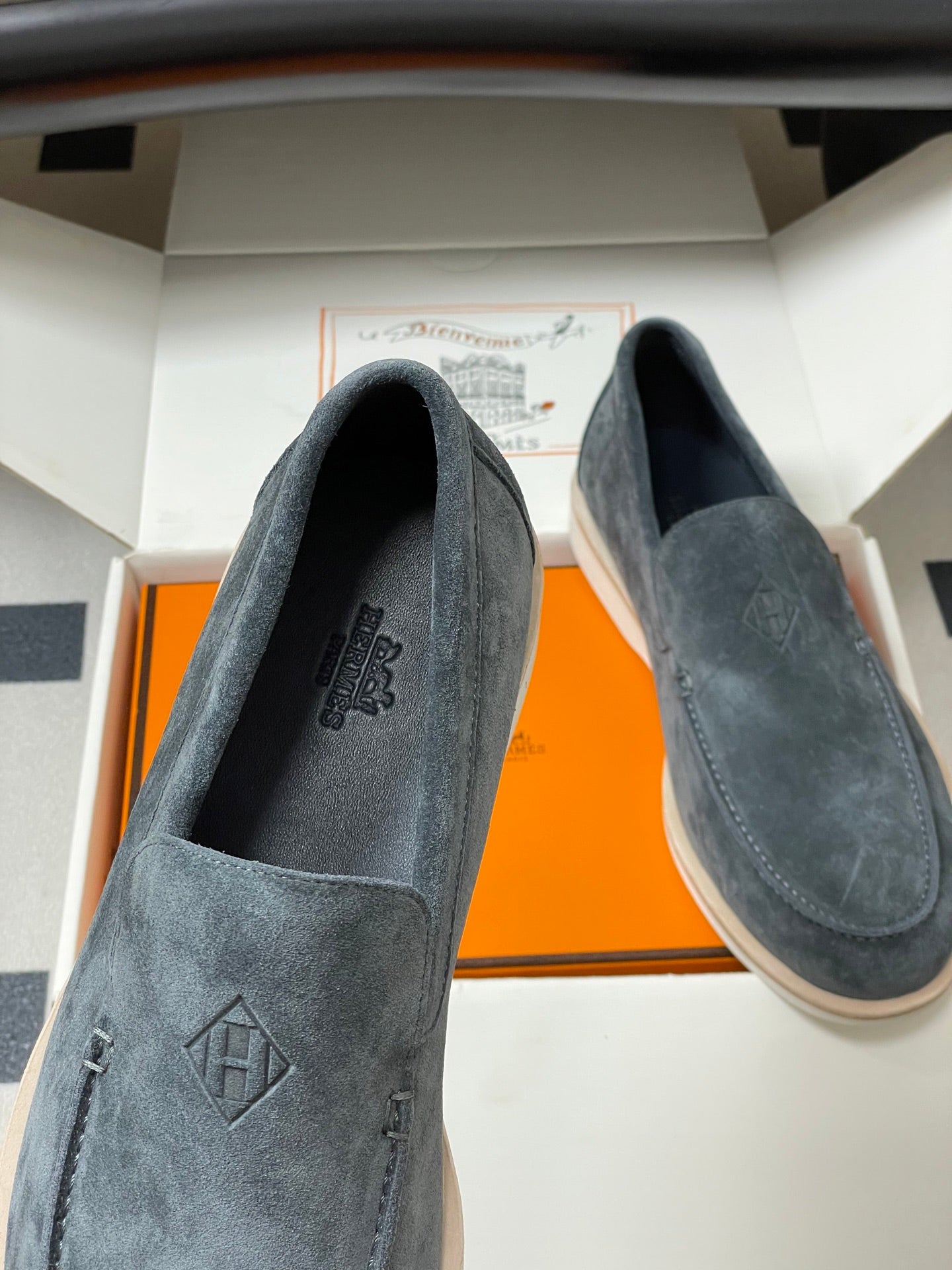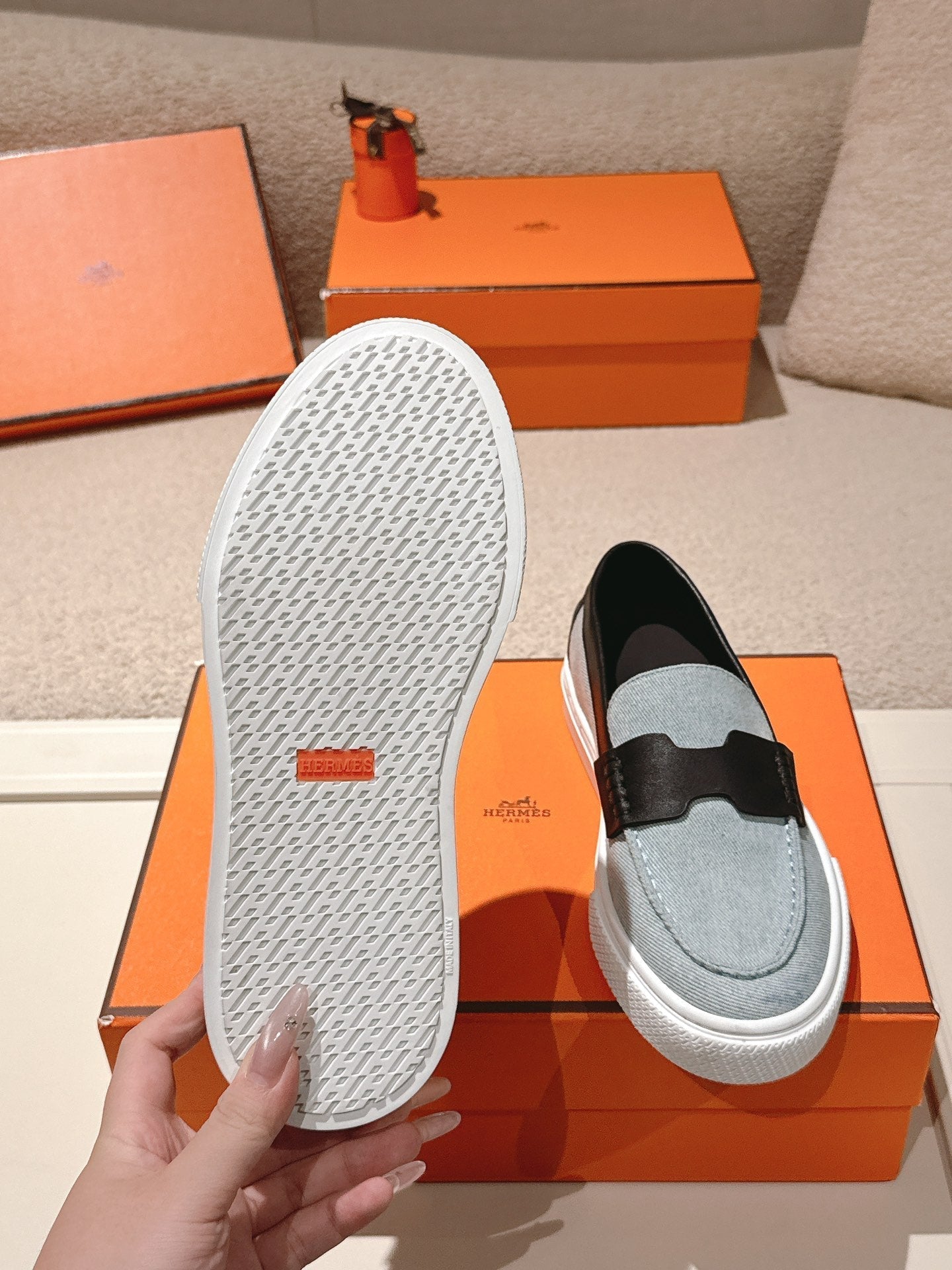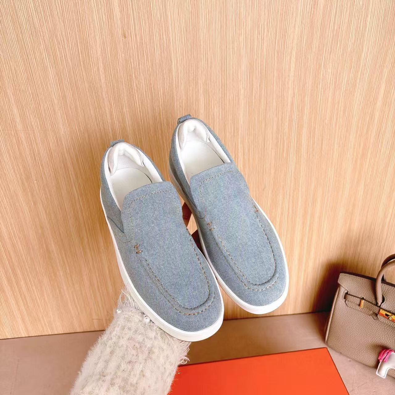 Hermes Loafer Blue White Denim leather