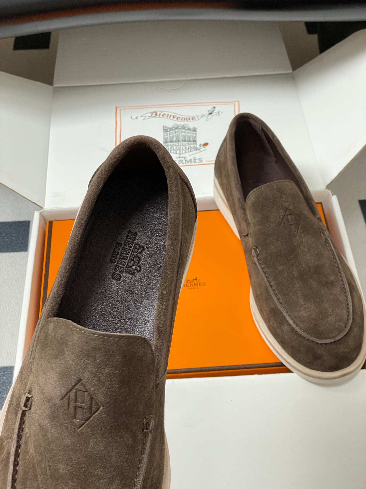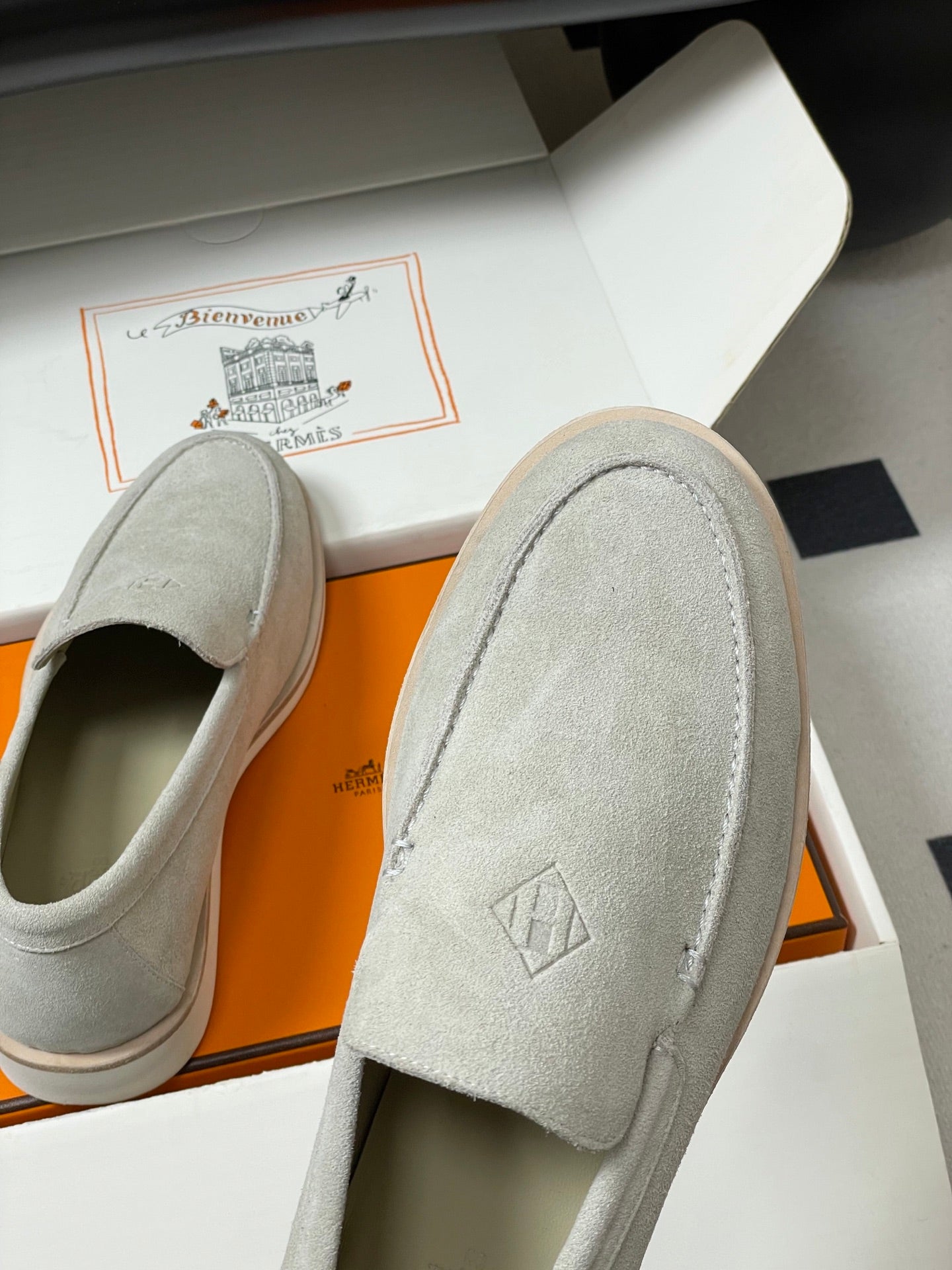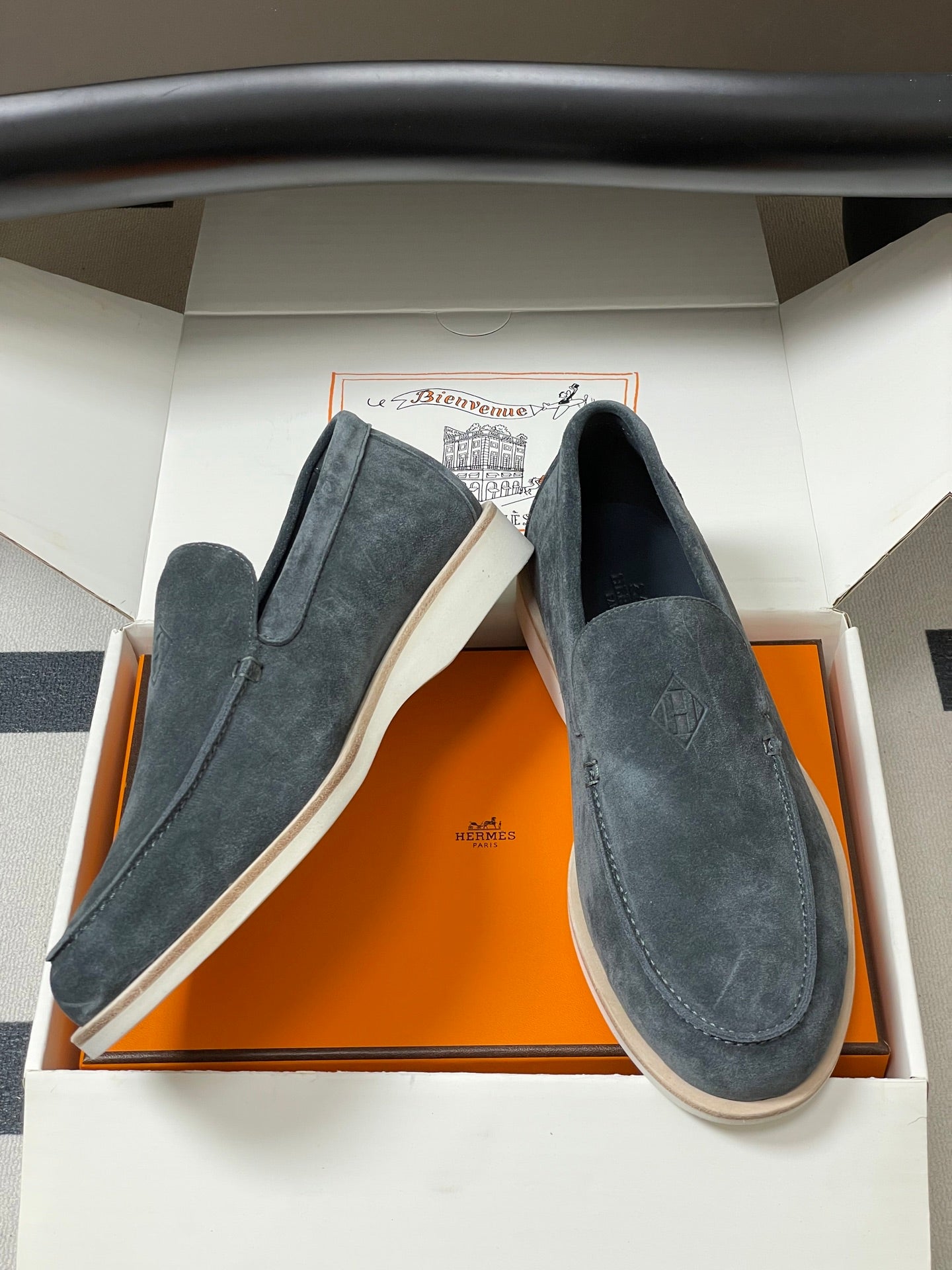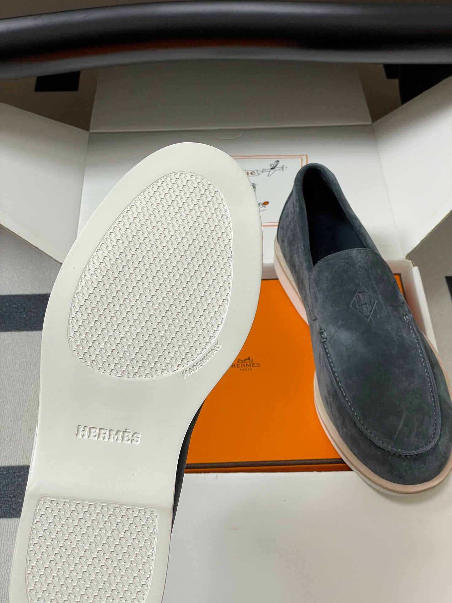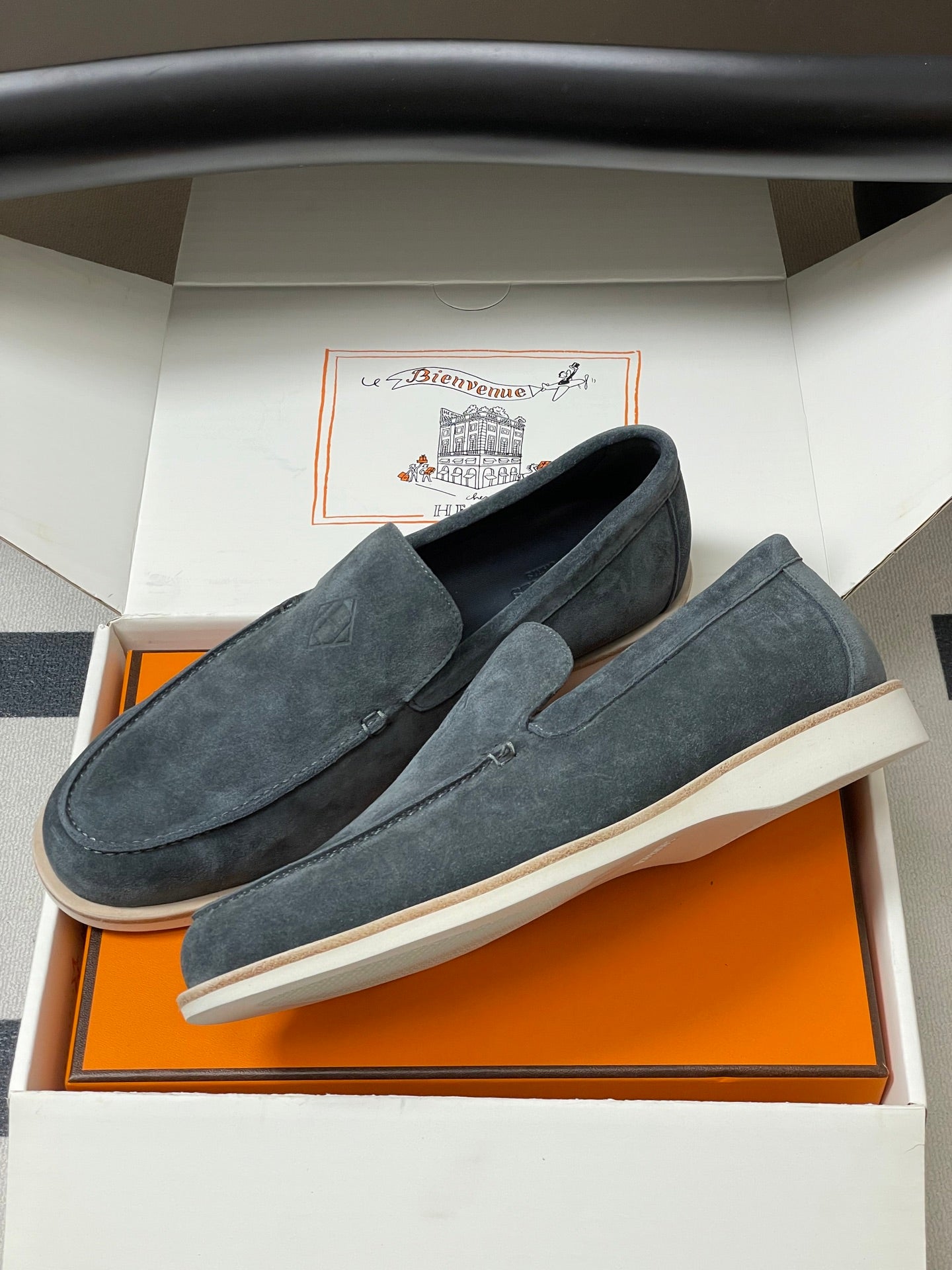 Hermes Loafer Blue White Denim leather