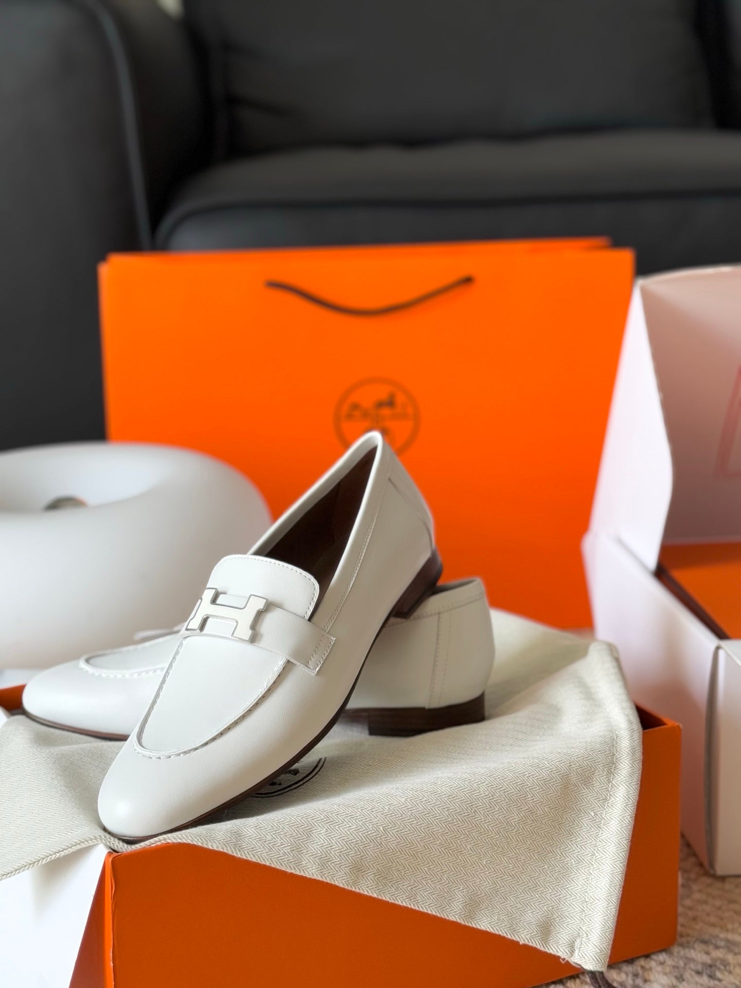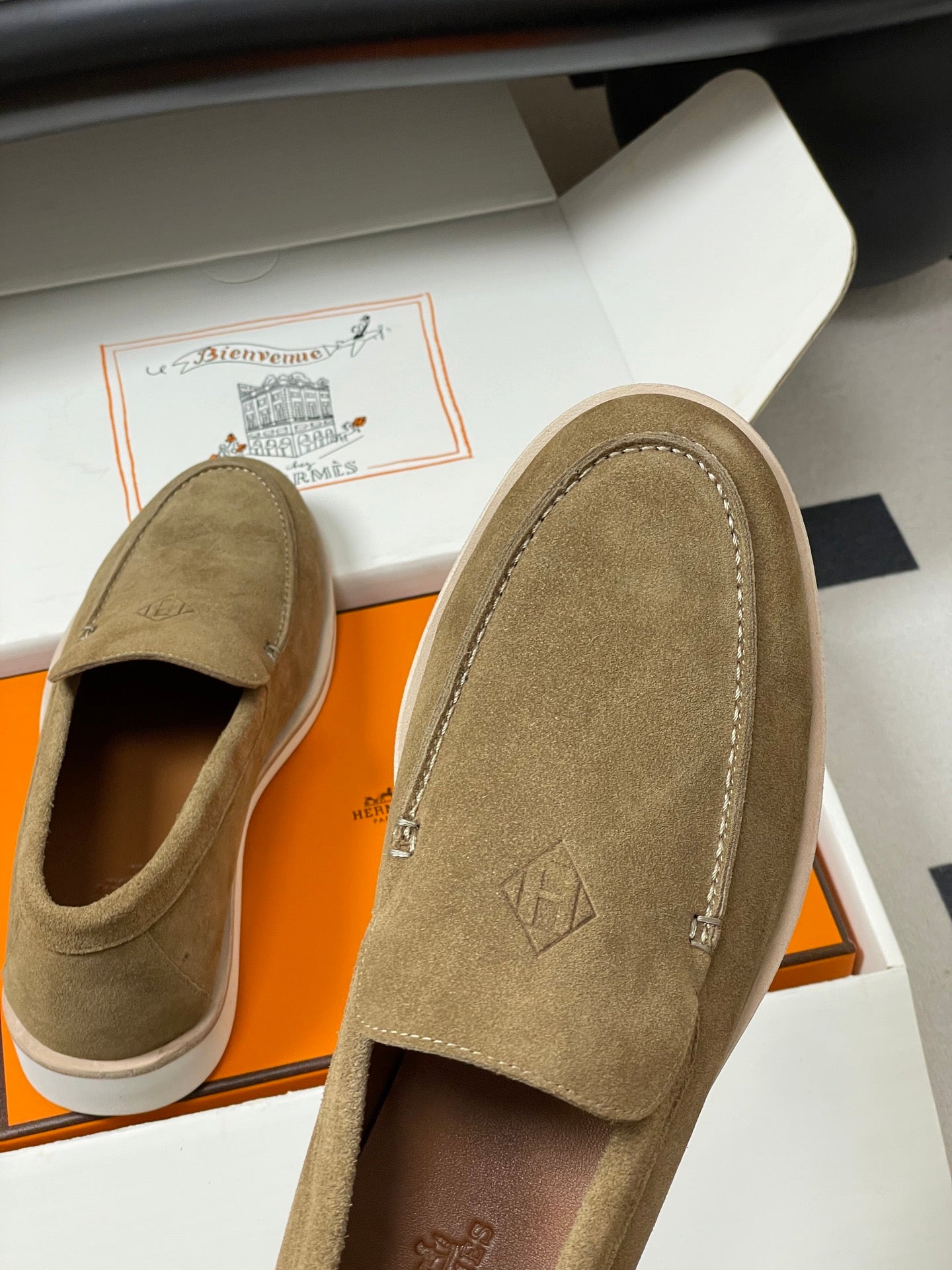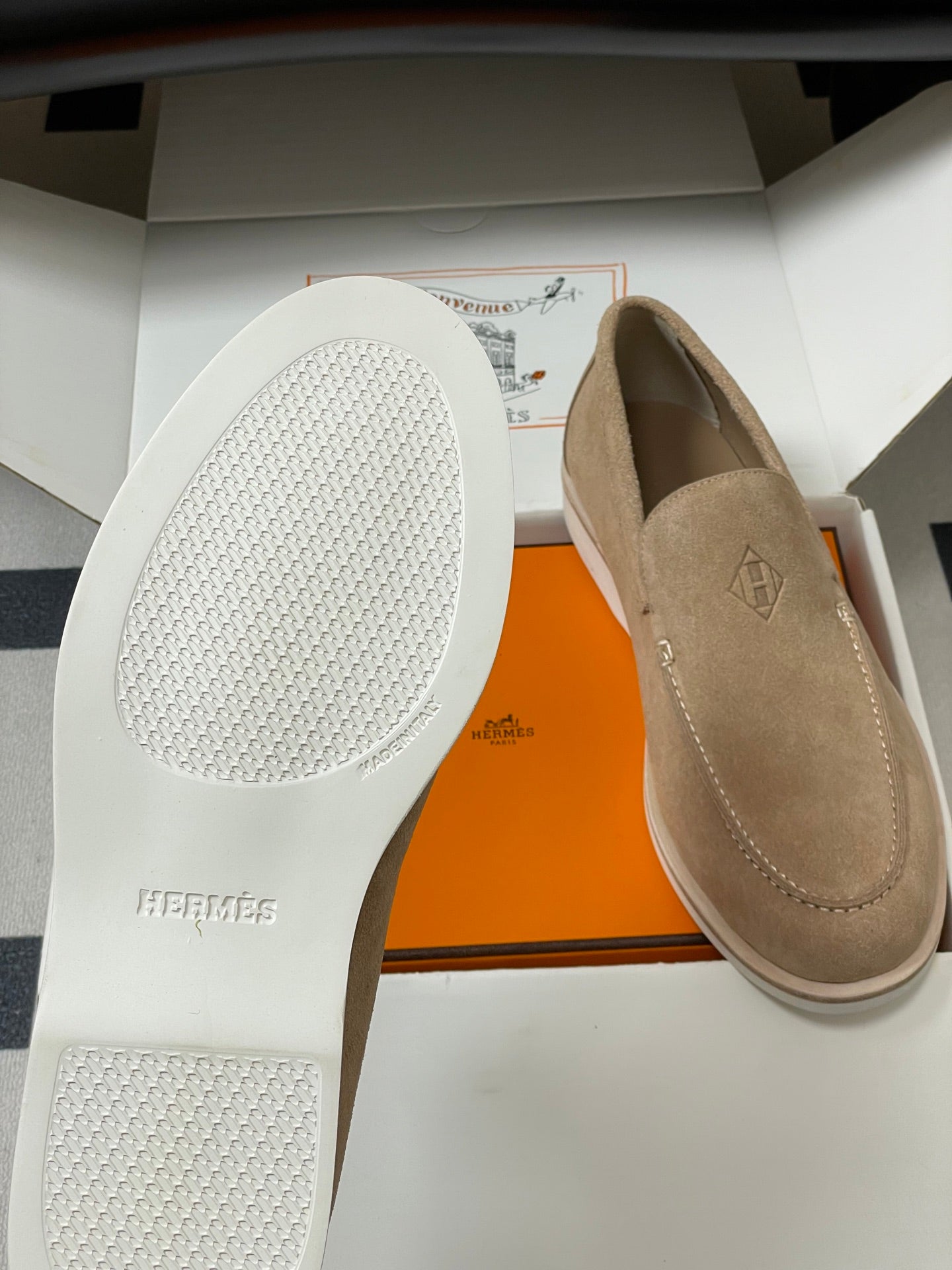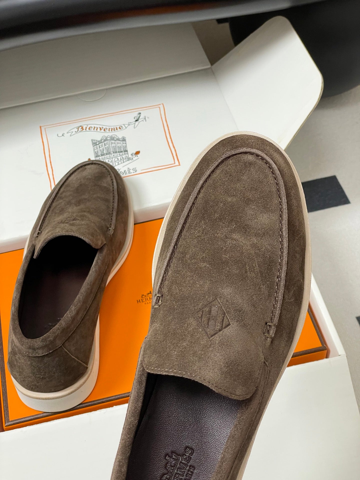 Hermes Loafer Blue White Denim leather