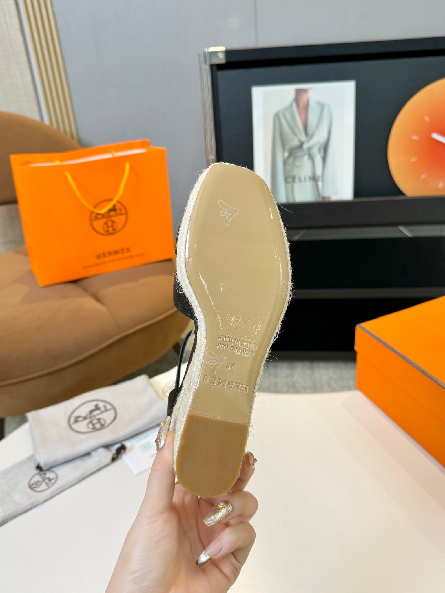 HM Feria Espadrille Mule Brown Calfskin