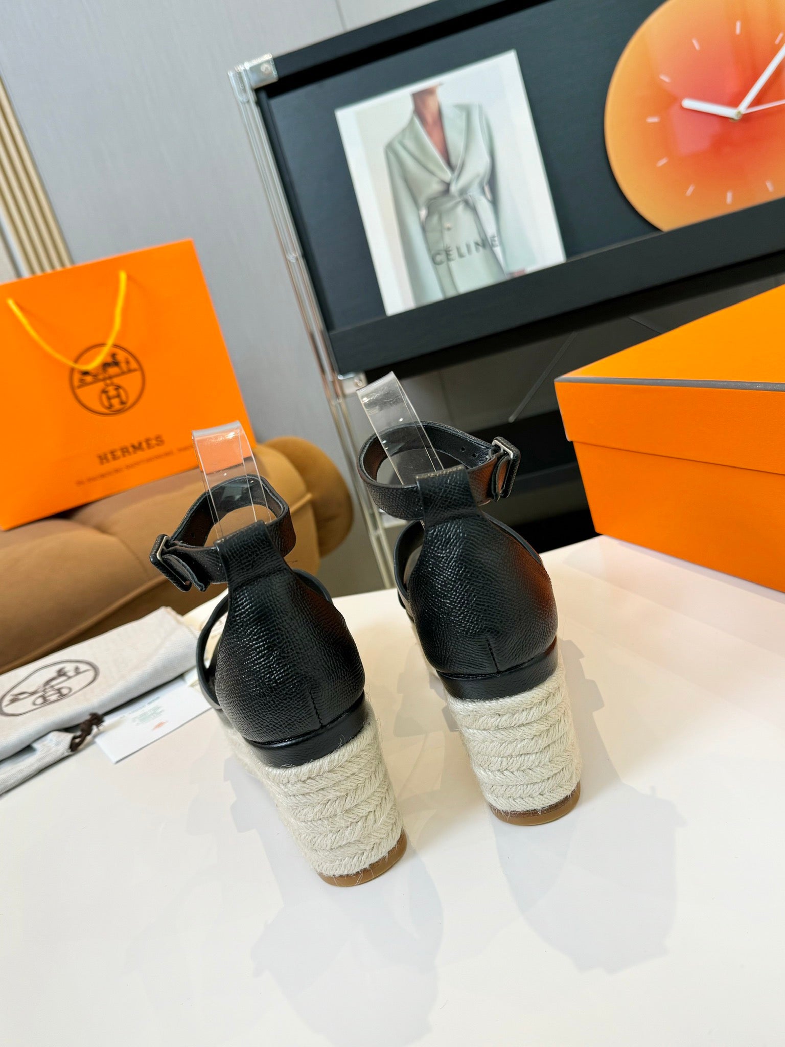 HM Antigua Espadrille Black Leather Raffia 631947