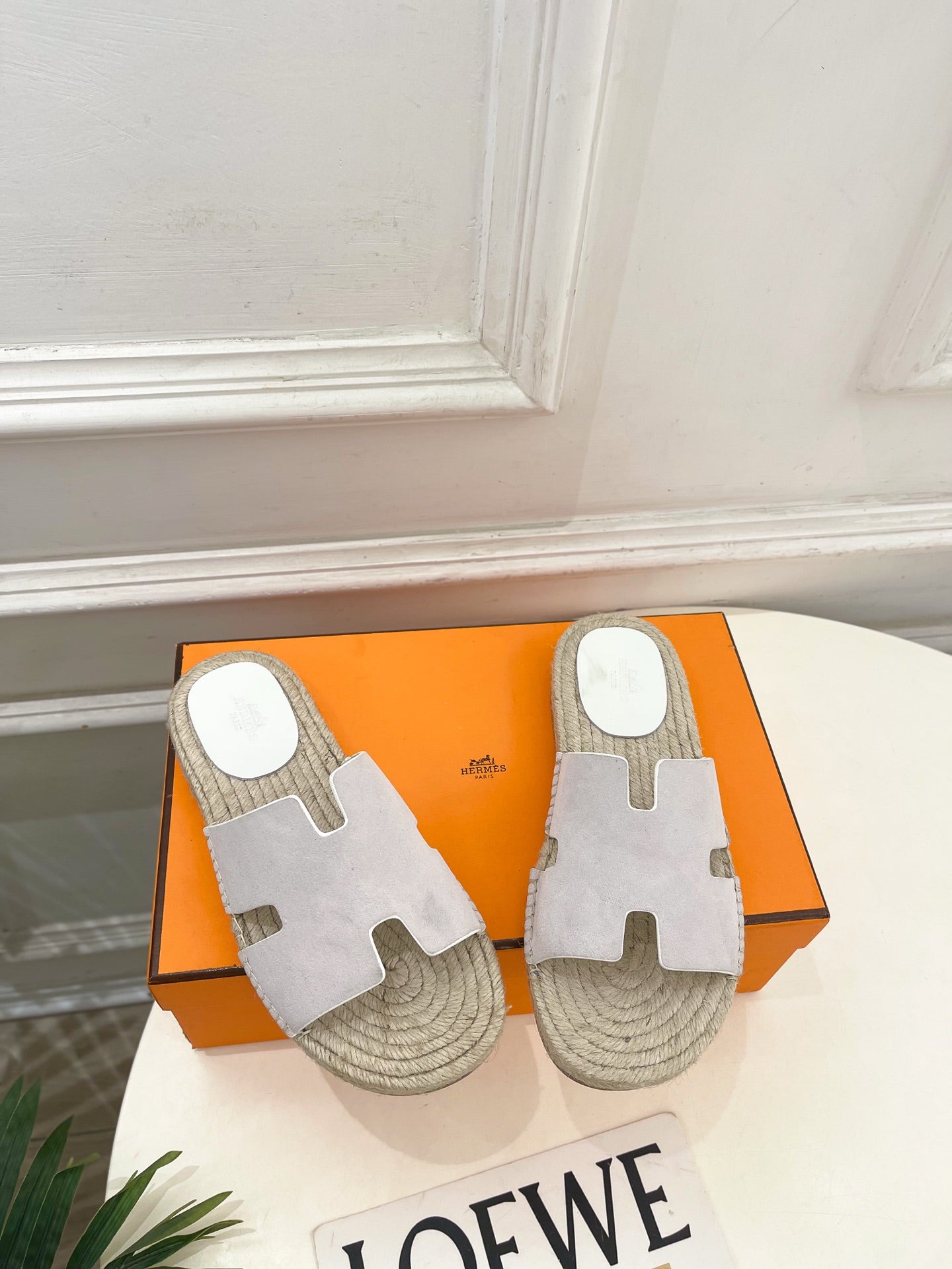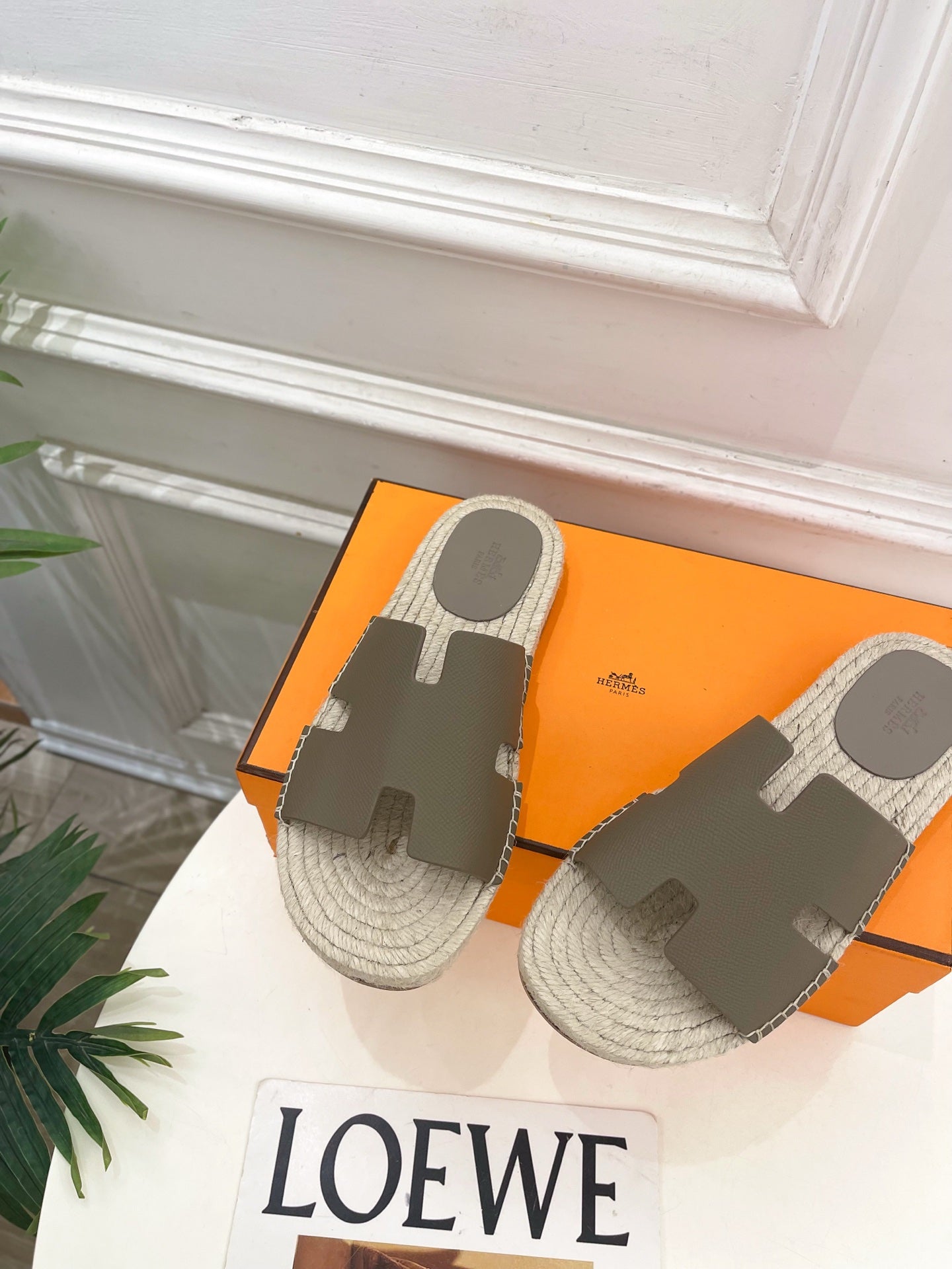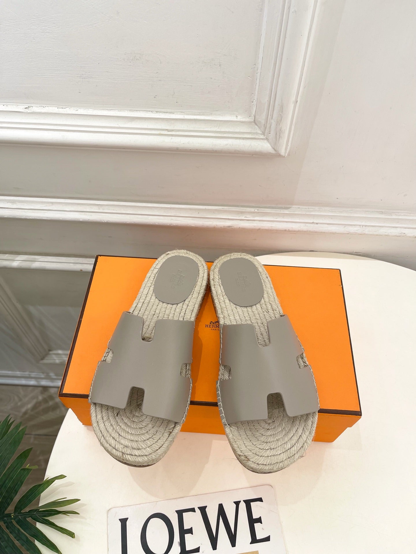HM Antigua Espadrille Grey Leather Raffia 631945