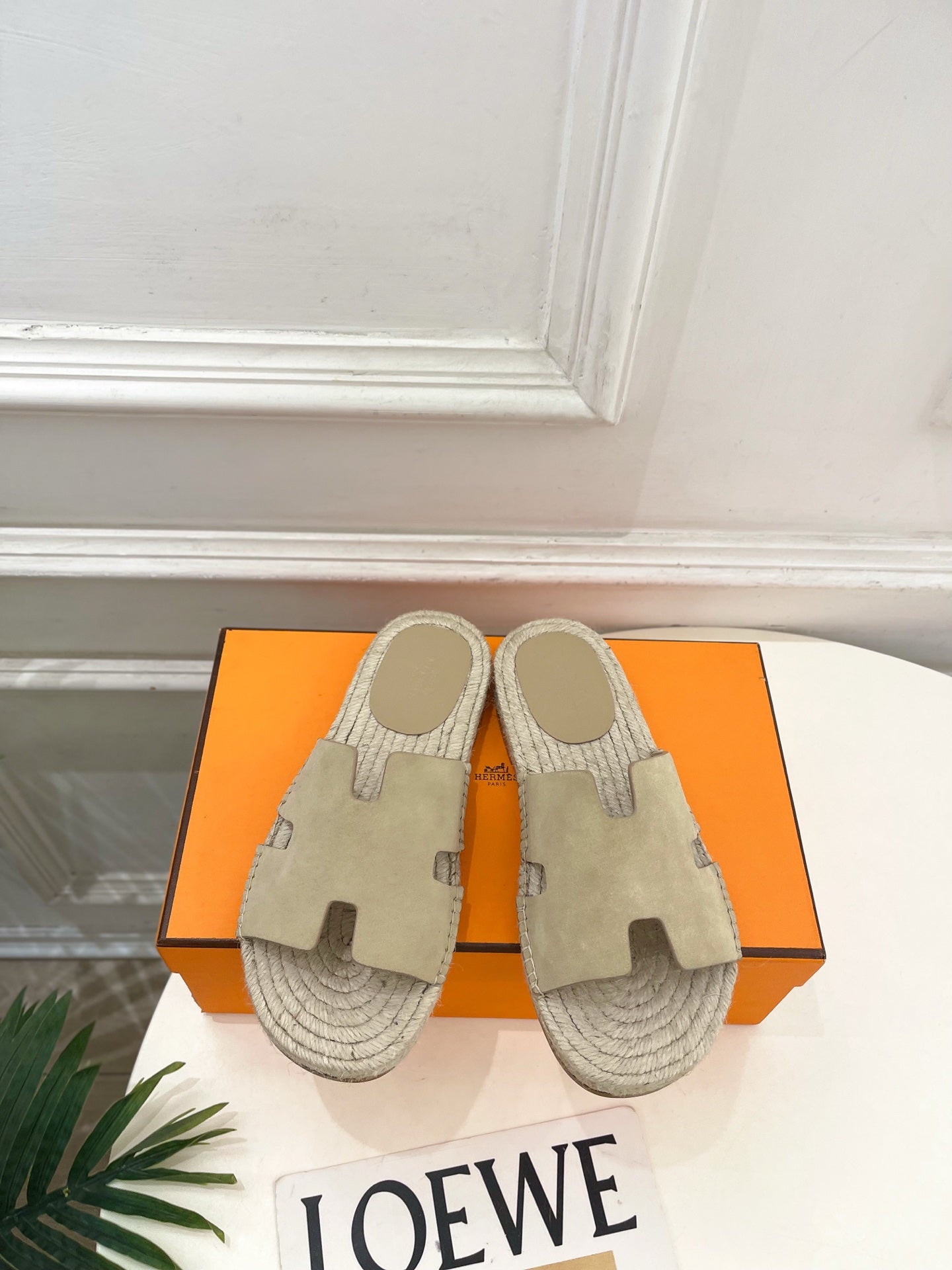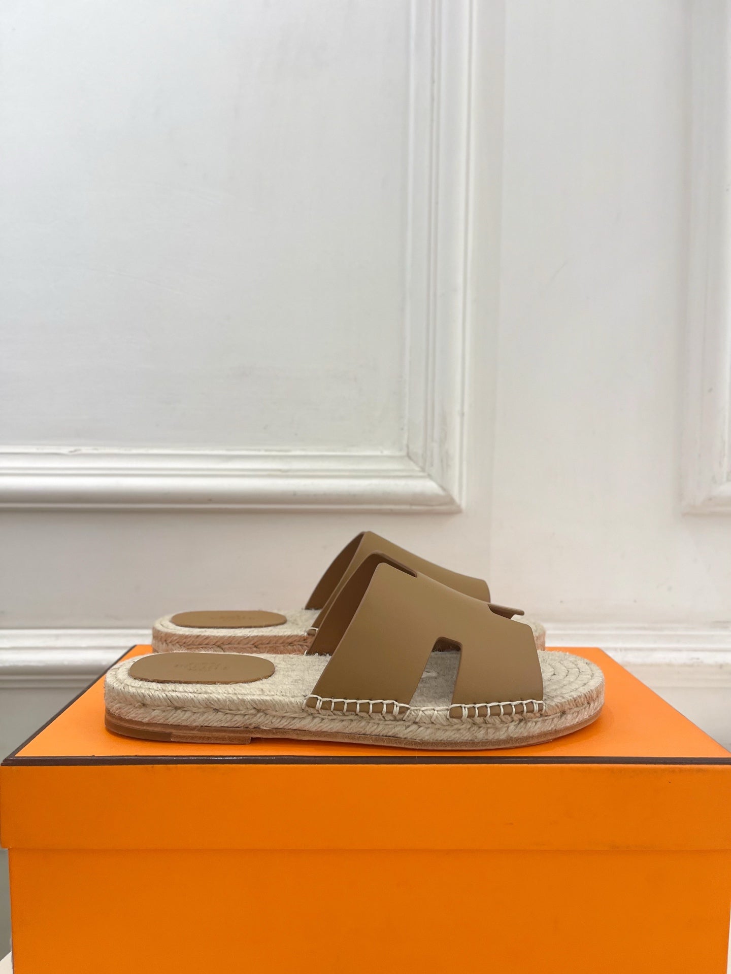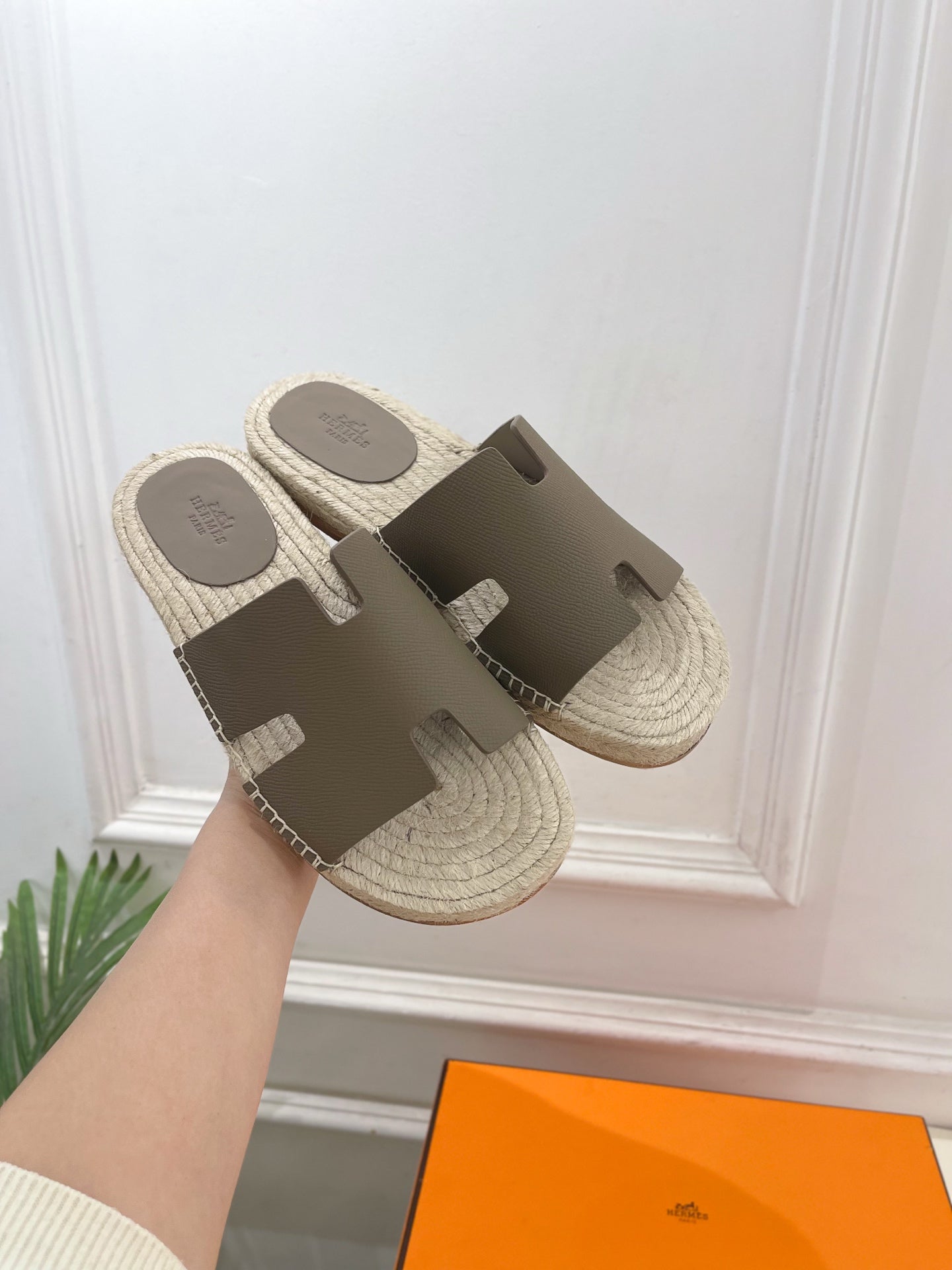 HM Antigua Espadrille Taupe Leather Raffia 631951