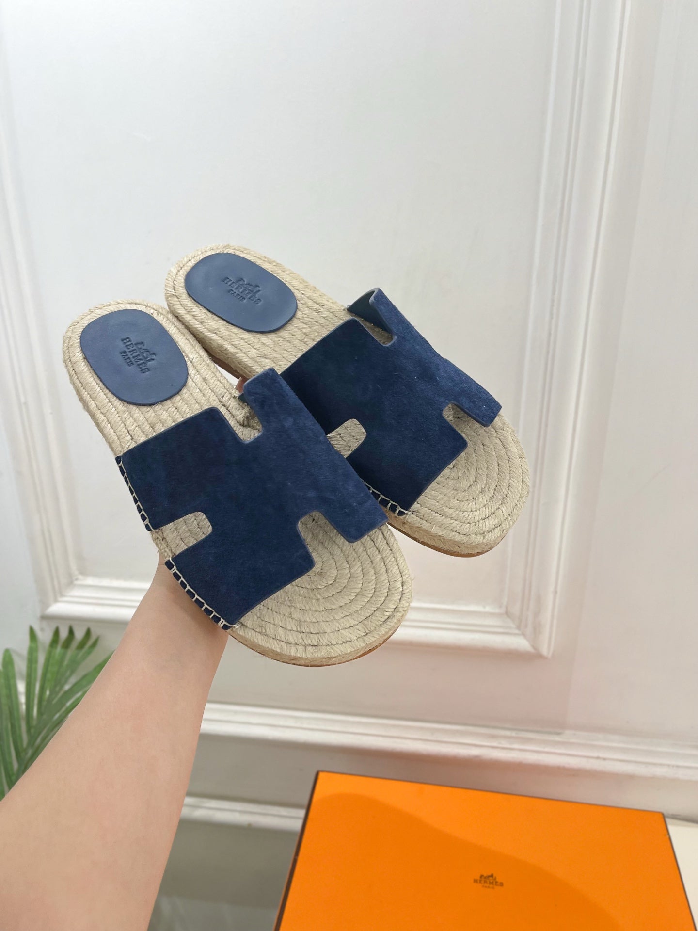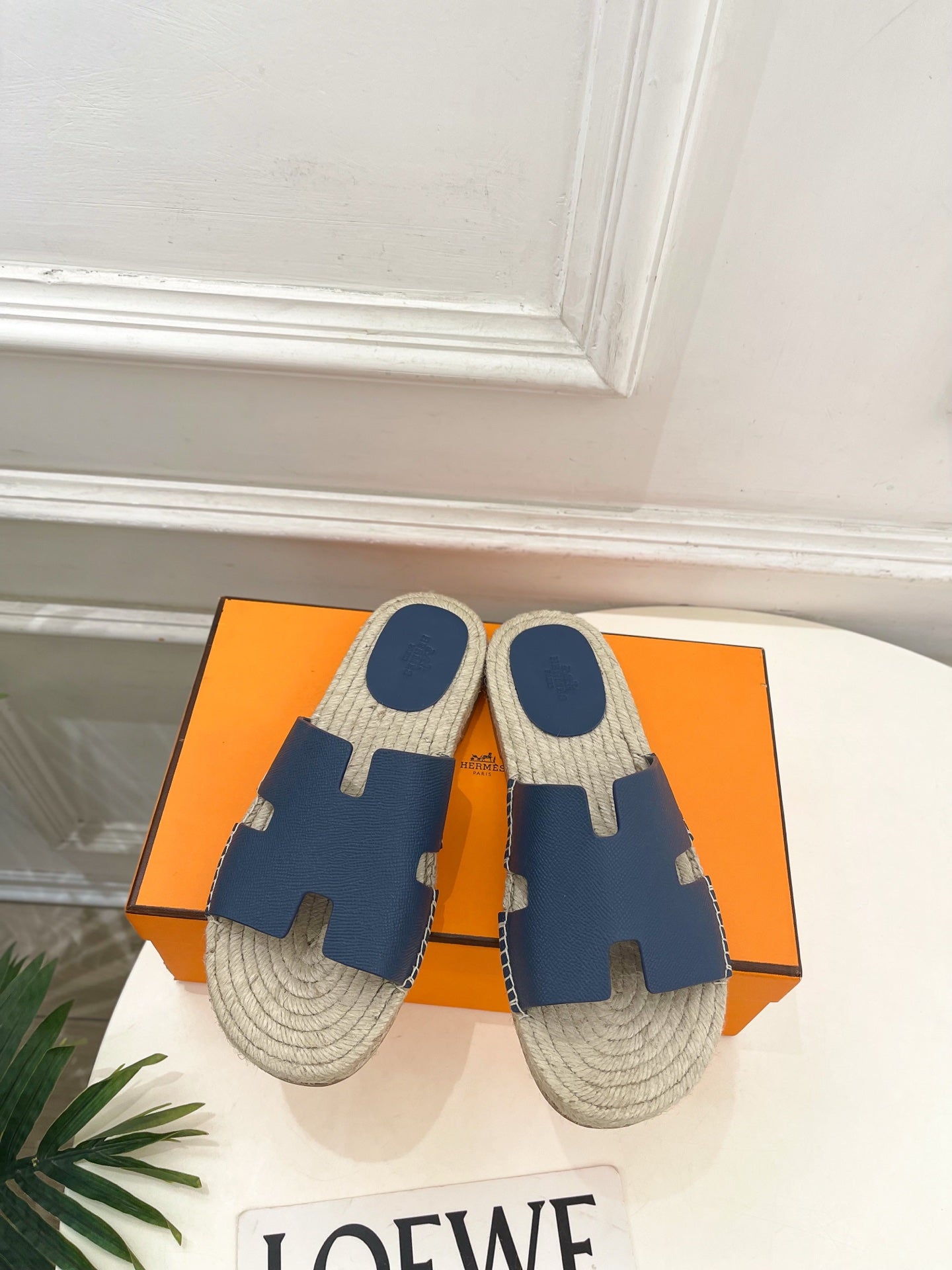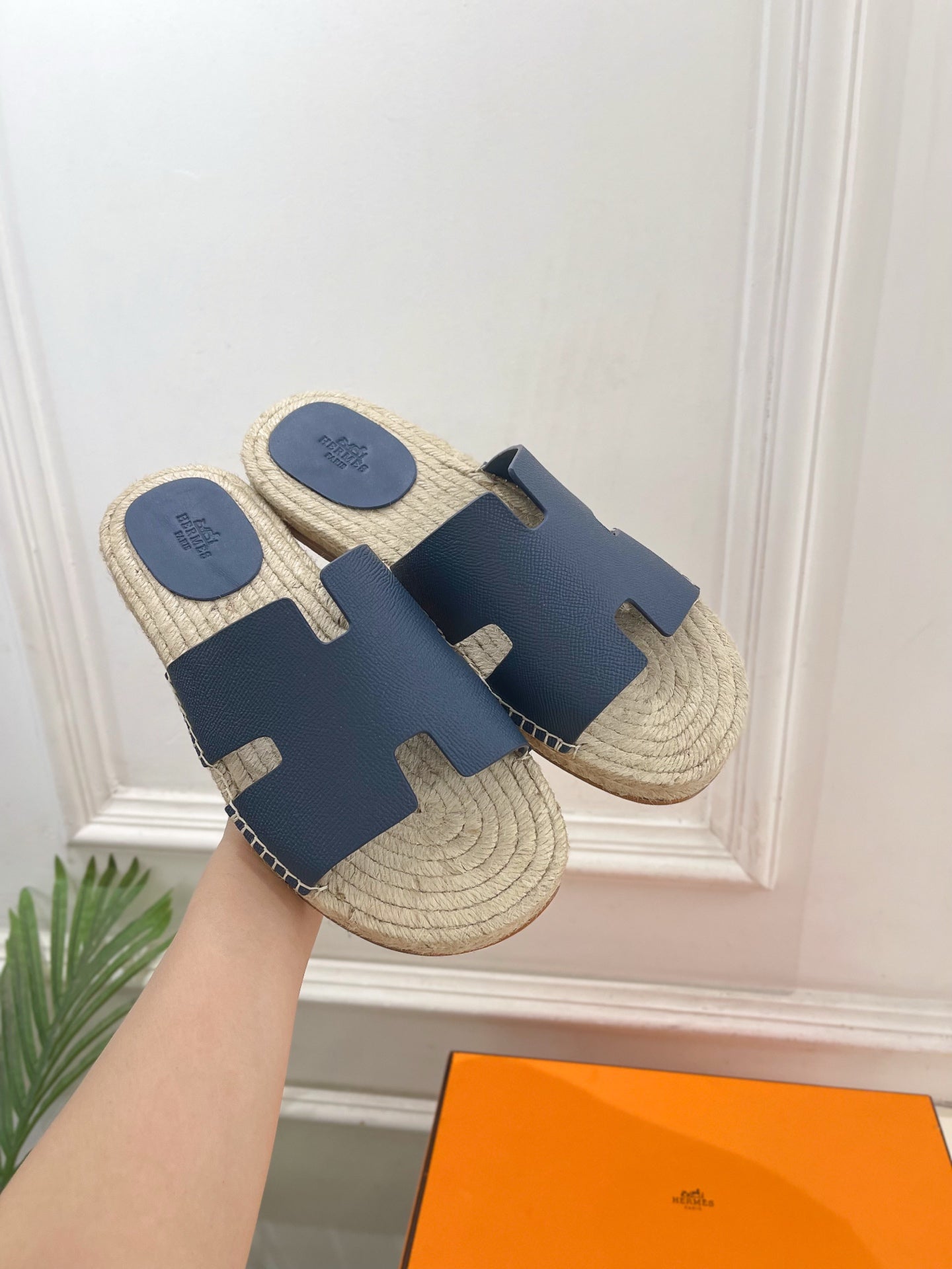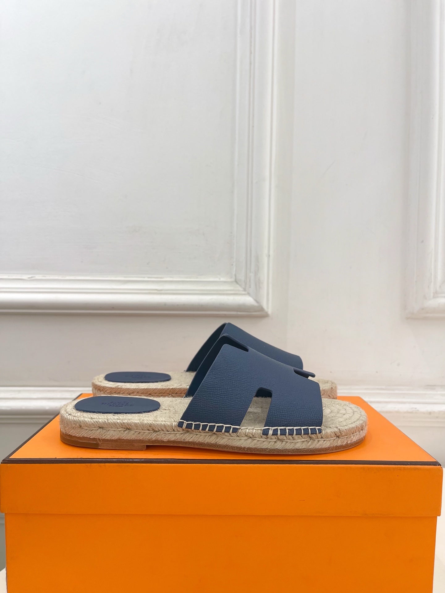 HM Antigua Espadrille Navy Blue Leather Raffia 631949