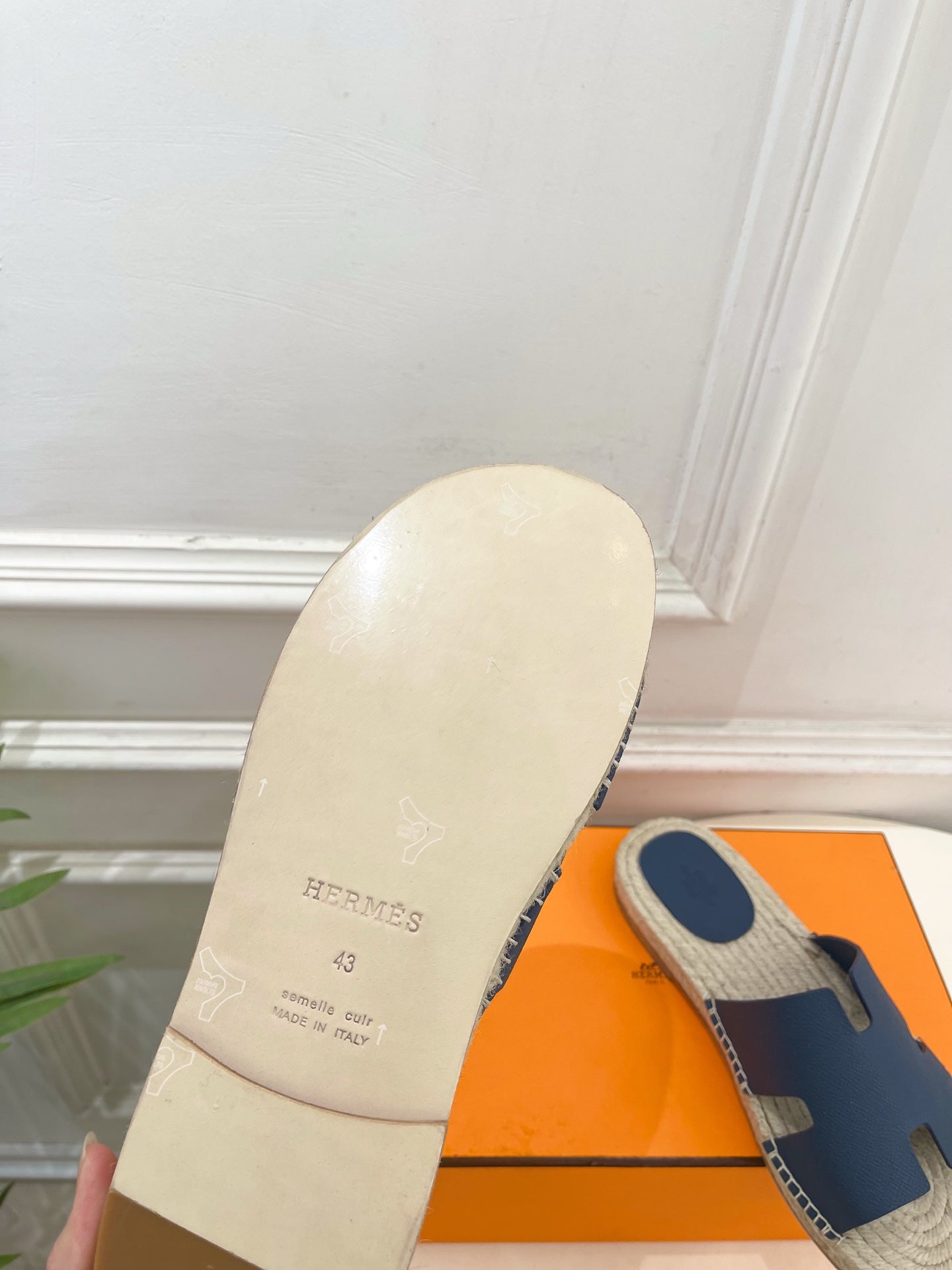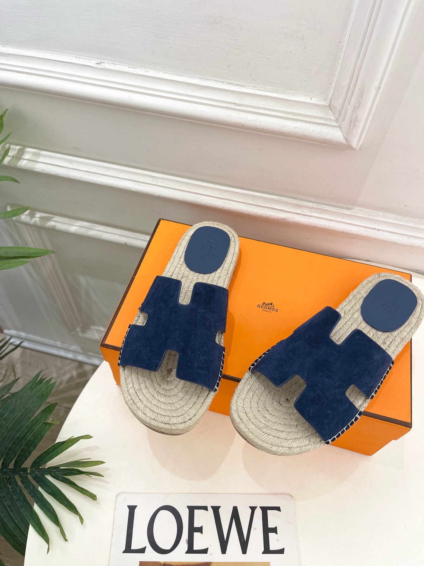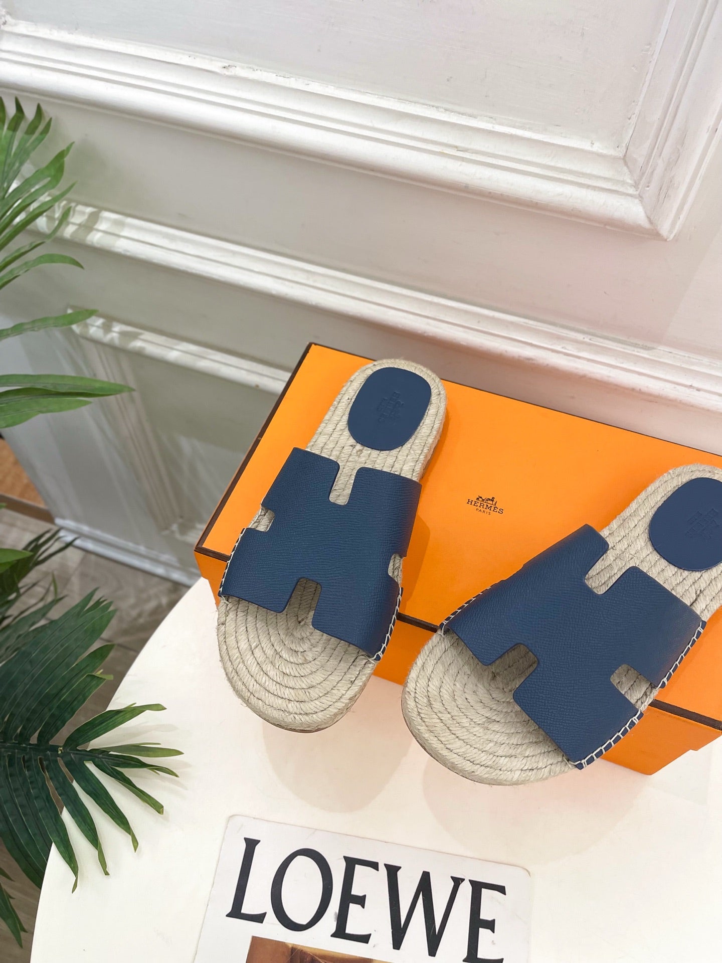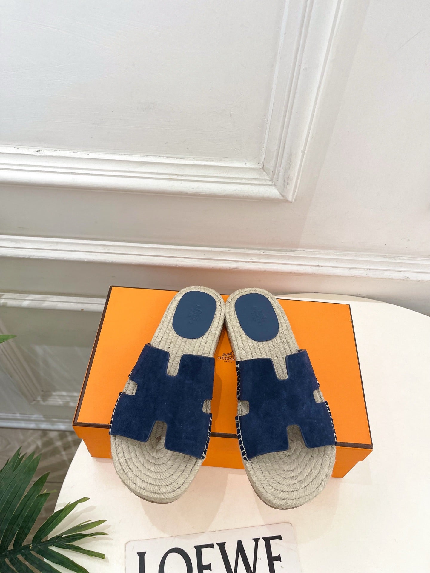 HM Antigua Espadrille Navy Blue Leather Raffia 631949