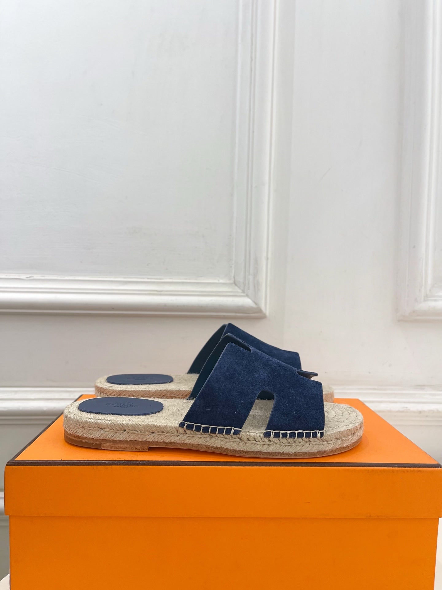 HM Antigua Espadrille Navy Blue Suede Raffia 631939