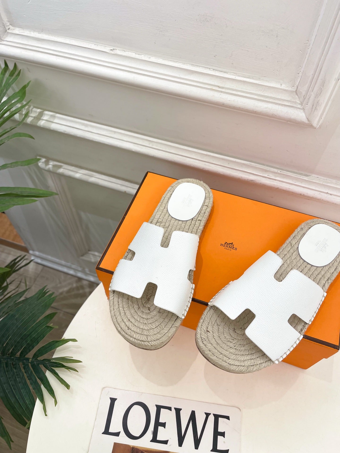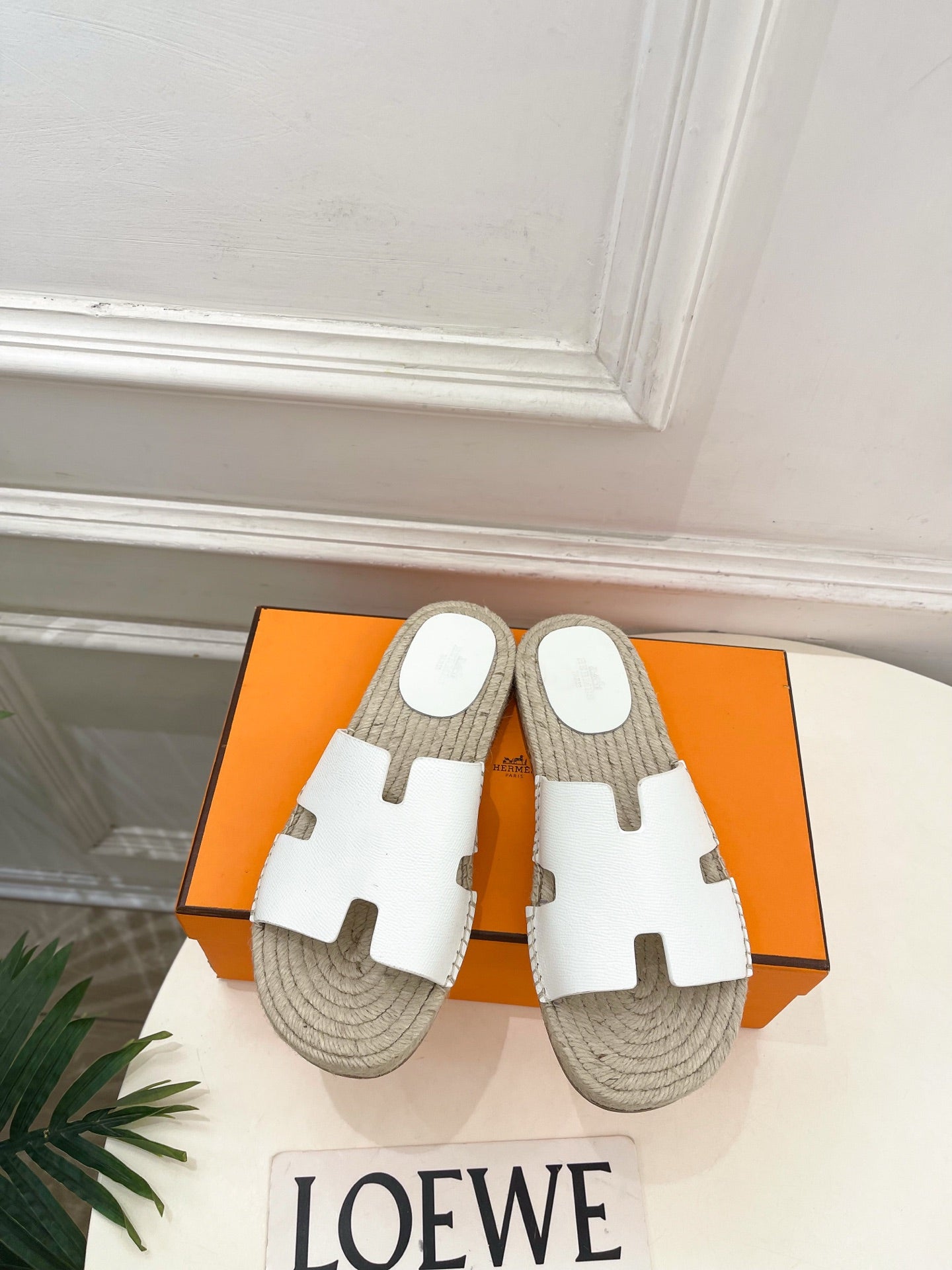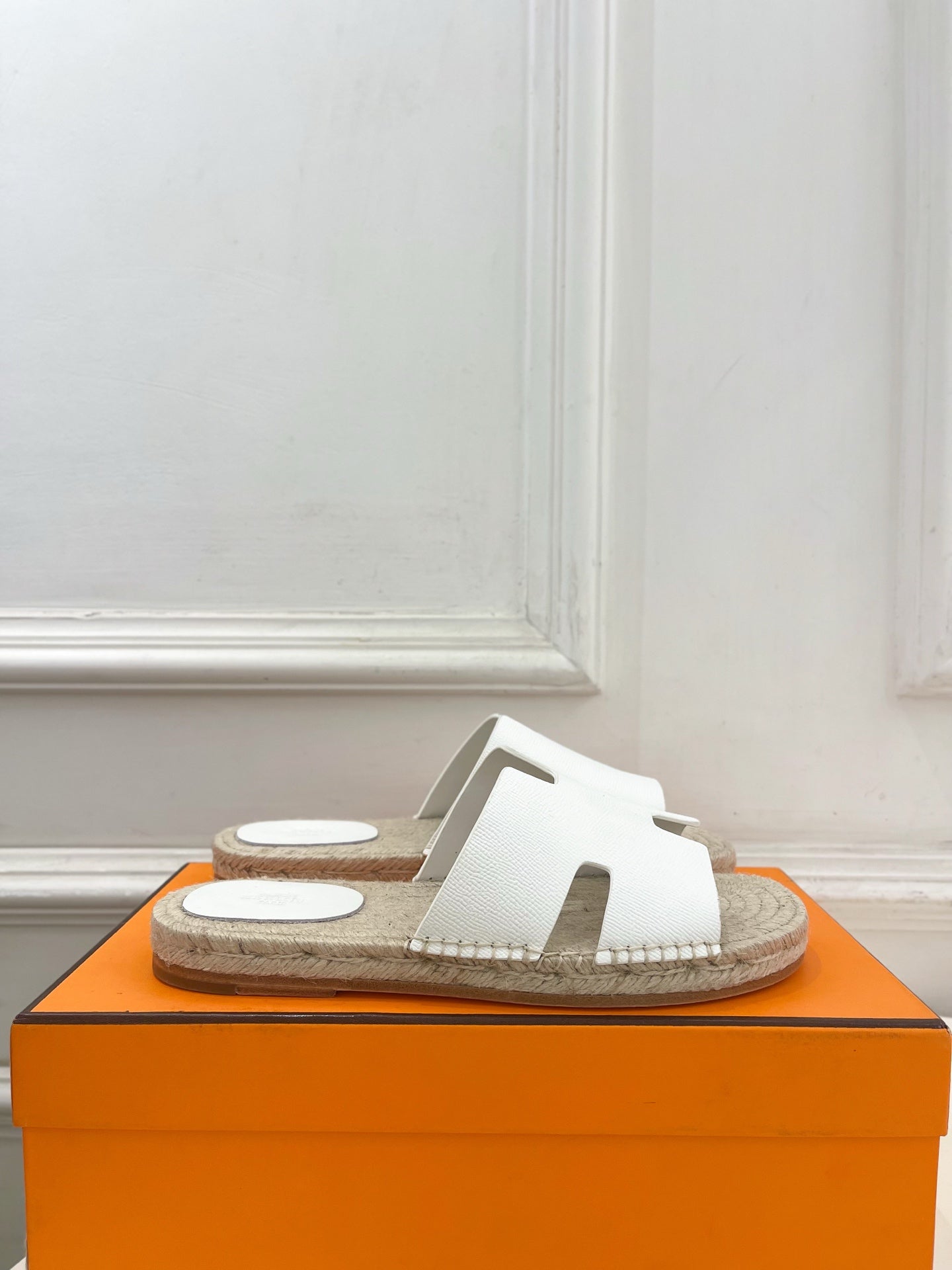 HM Antigua Espadrille White Leather Raffia 631948