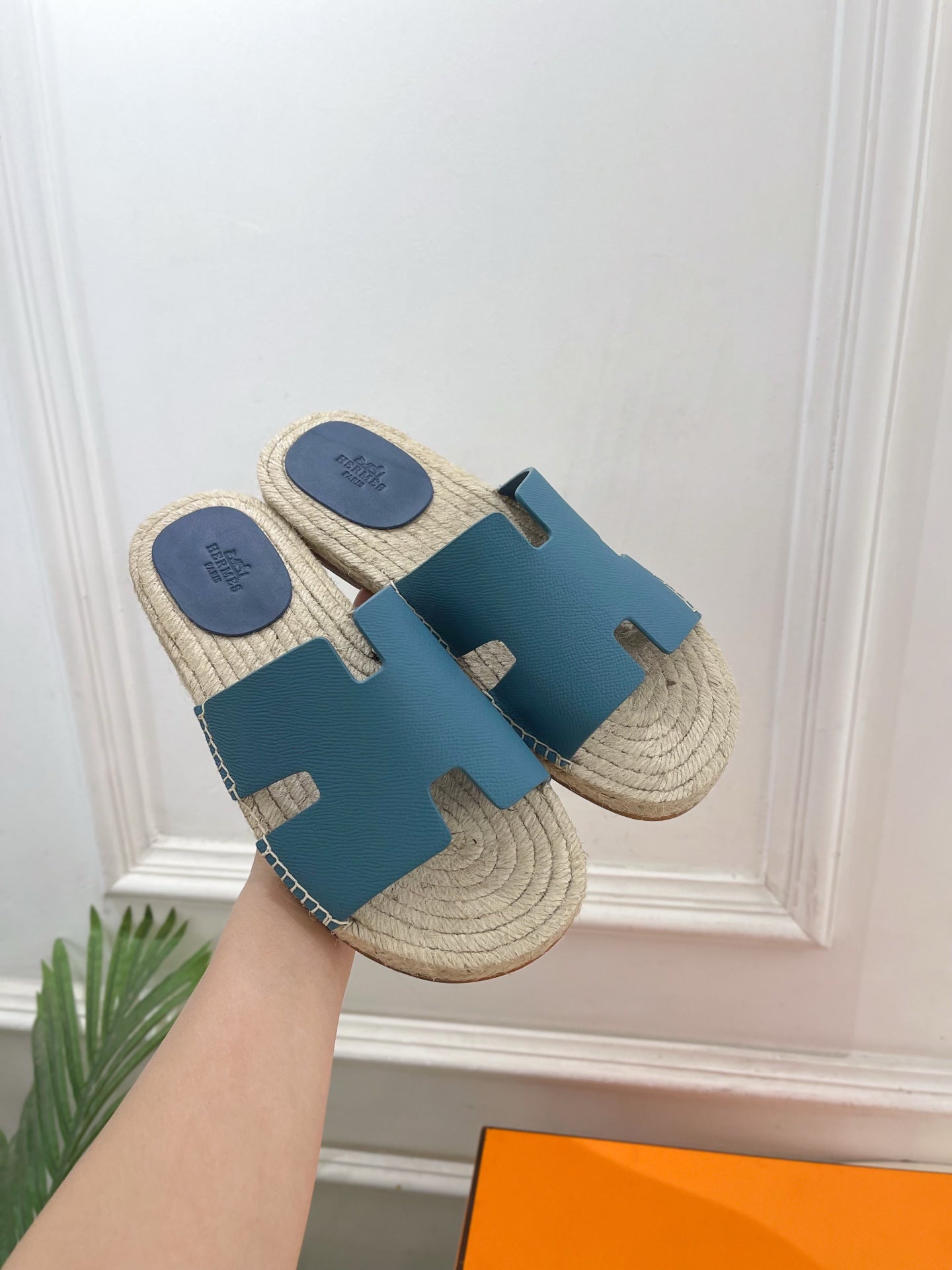 HM Antigua Espadrille Blue Leather Raffia 631950