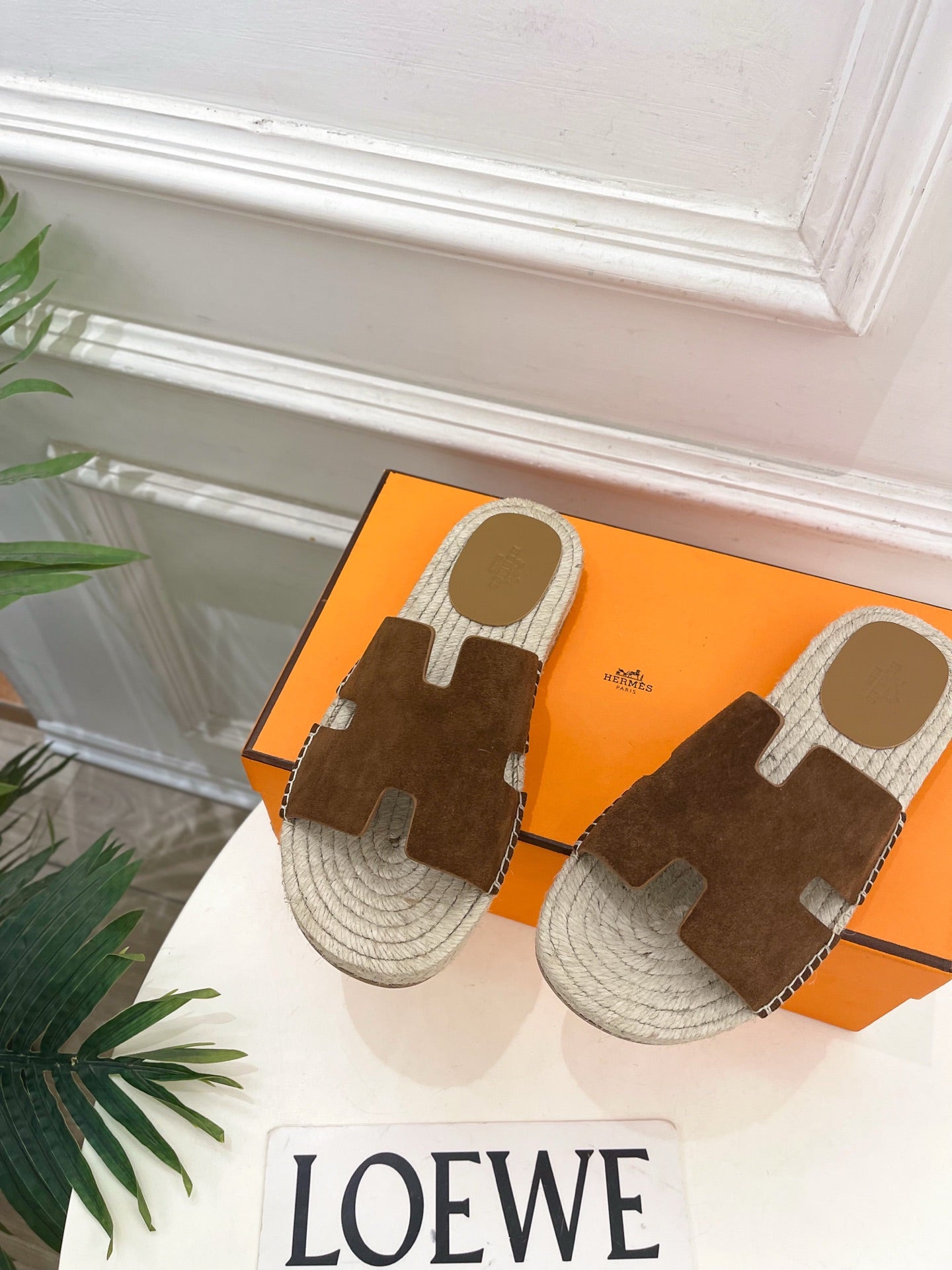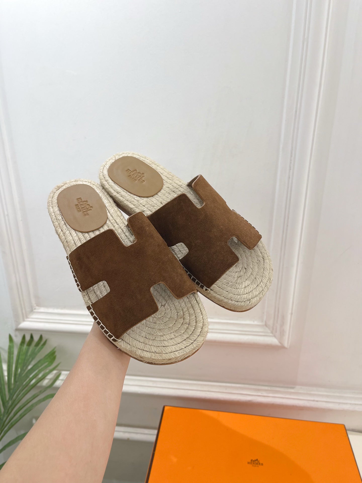 HM Antigua Espadrille Brown Suede Raffia 631940