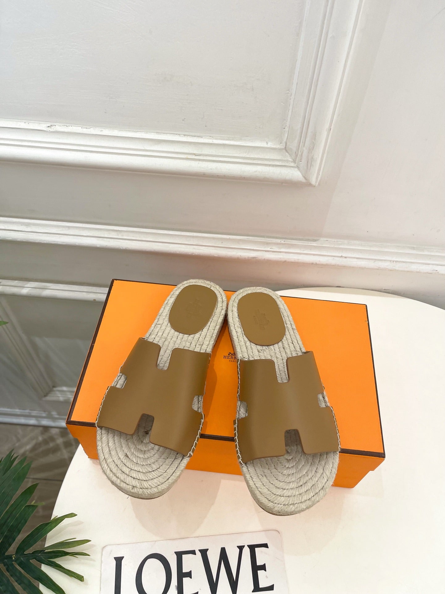 HM Antigua Espadrille Tan Leather Raffia 631946