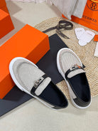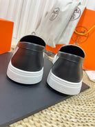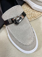 HM Buckle Casual Loafer Black Cowhide Cloth 317046