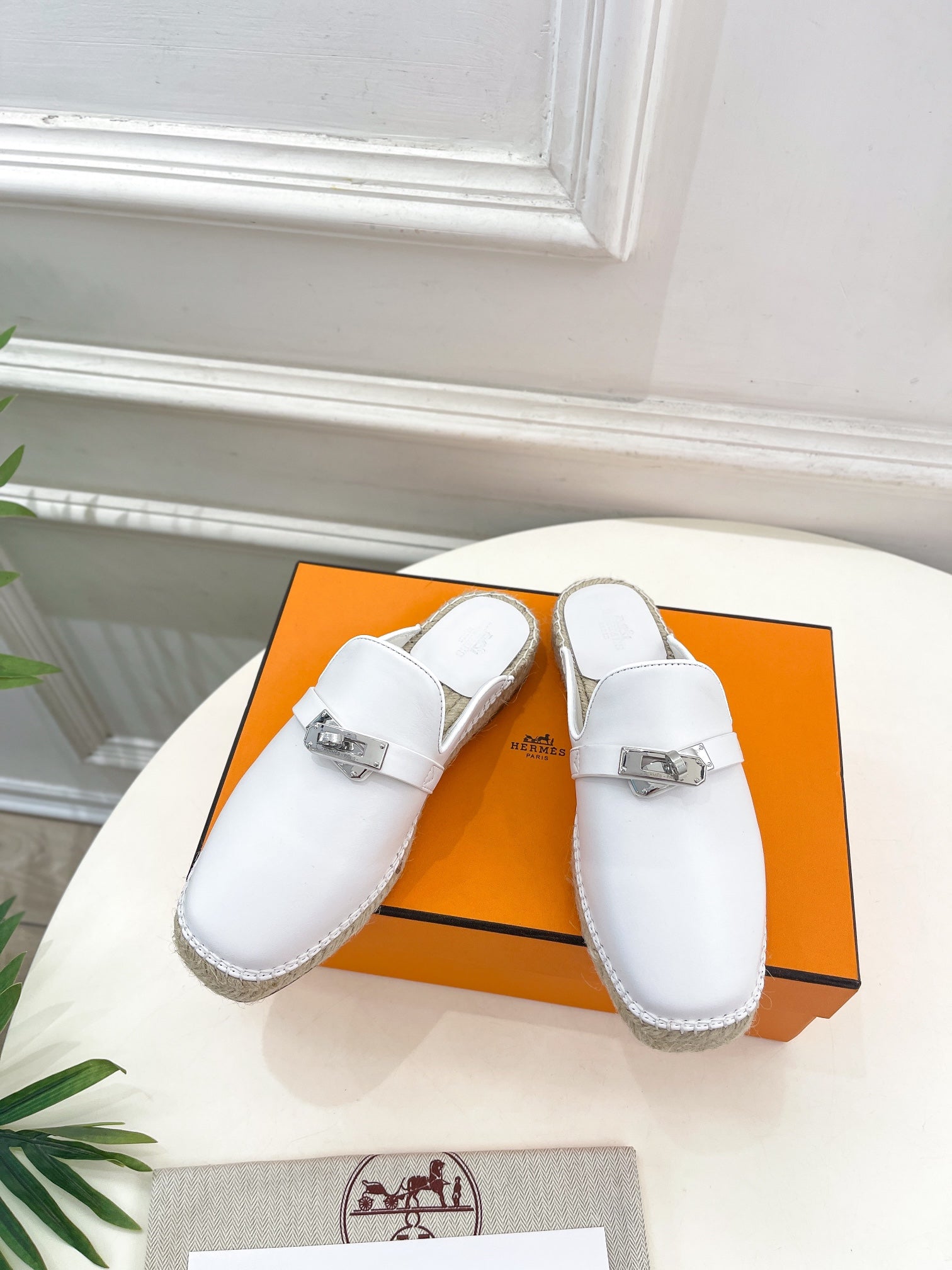 HM Feria Espadrille 20mm White Calfskin And Handwoven Hemp Rope 967989