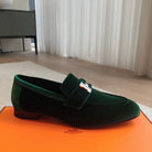 Paris Loafer Green Velvet Fabric With Silver Signature Buckle 509393