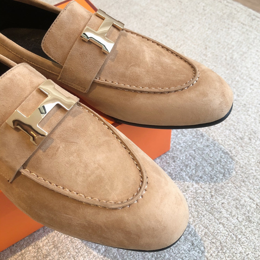 Paris Loafer Light Brown Suede Calfskin With Pink Gold Signature Buckle 509373