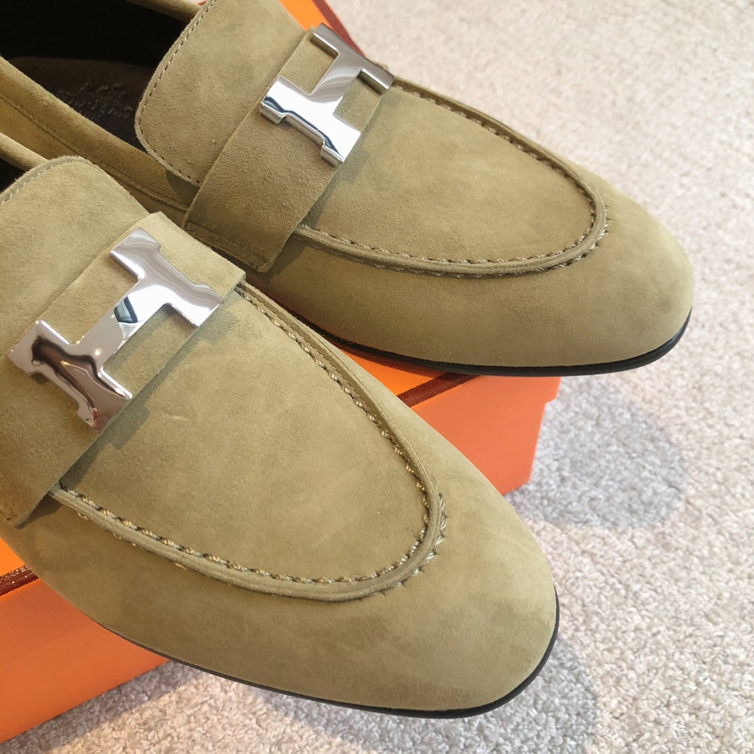 Paris Loafer Olive Suede Calfskin With Silver Signature Buckle 509376