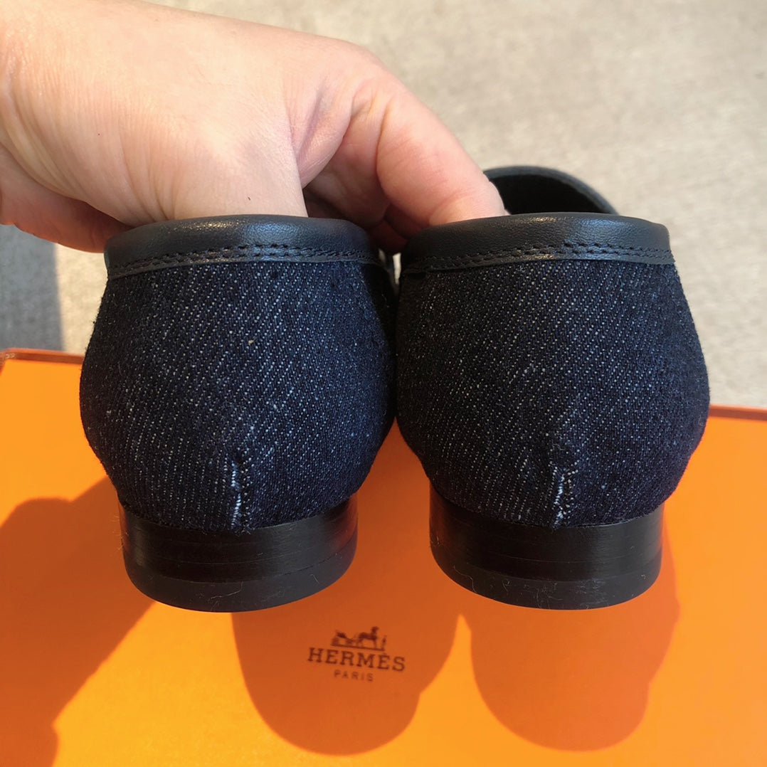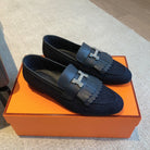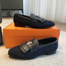 Royal Loafer Navy Blue Denim With Fringe Detail And Silver Signature Buckle 509435