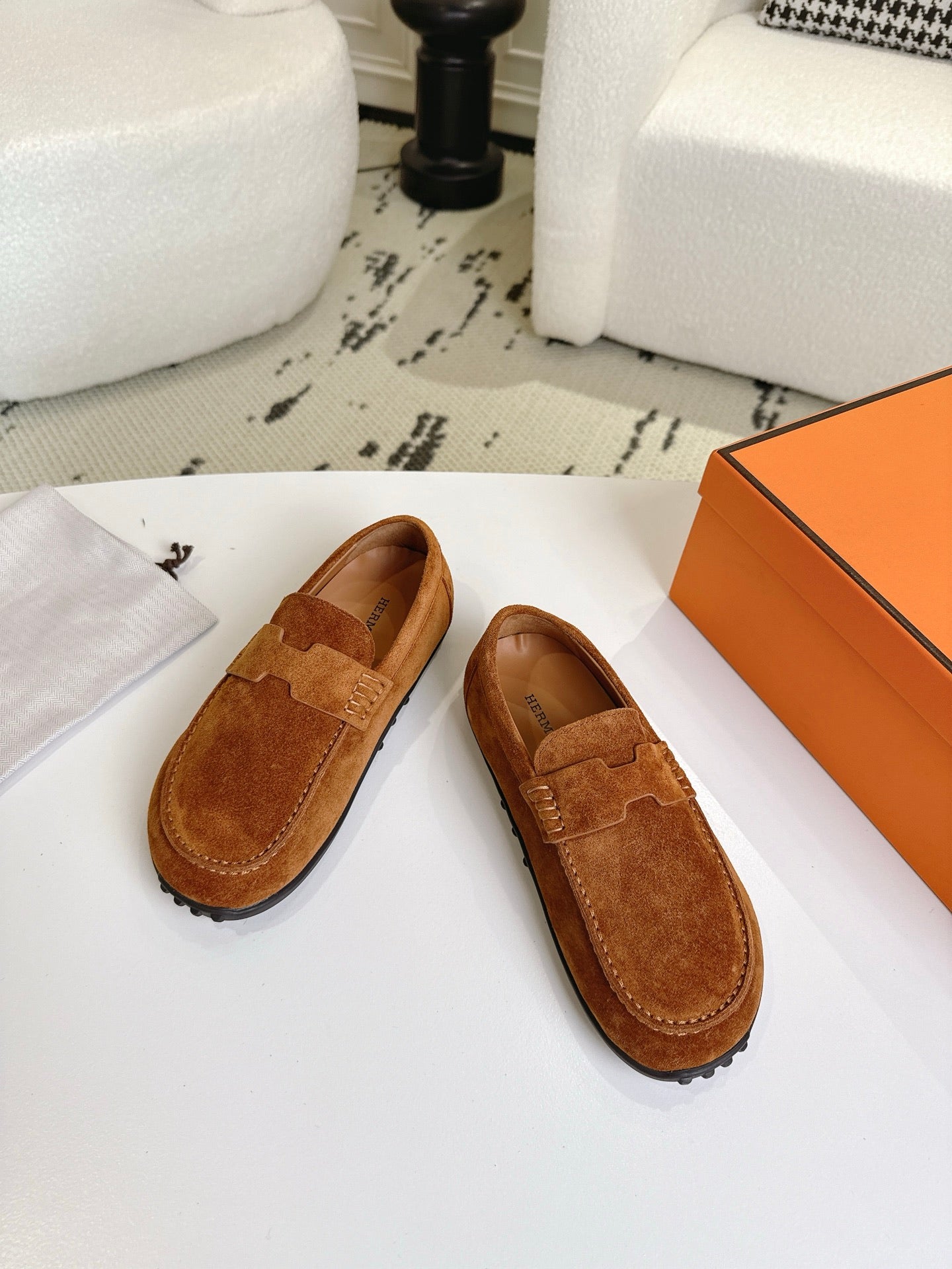 HM 25ss Loafers Camel Brown Suede 577161