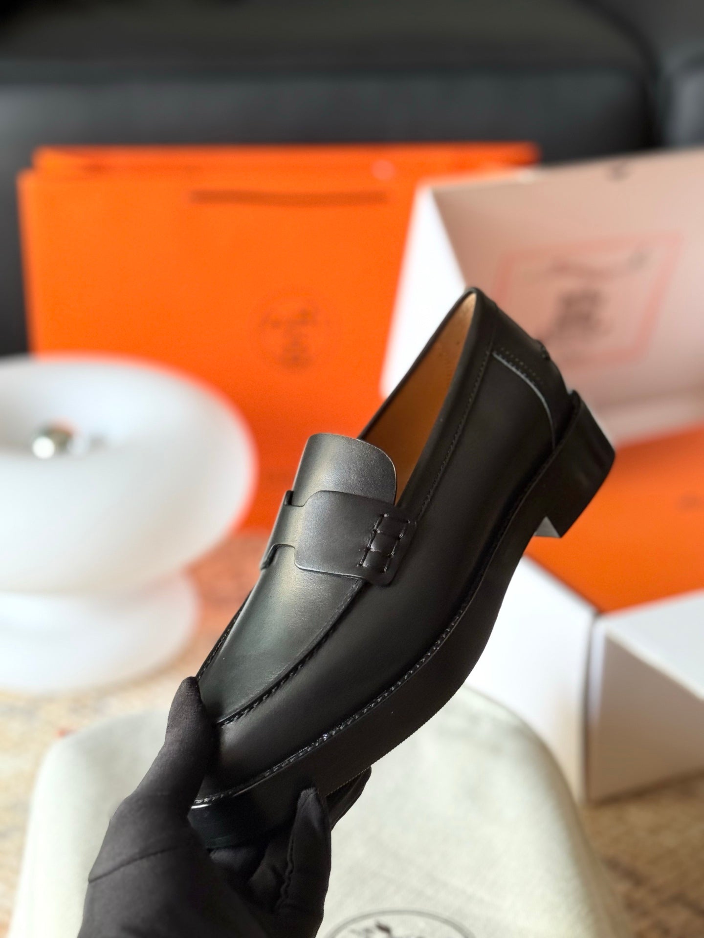 HM 25ss Loafers Black Sheepskin 577164
