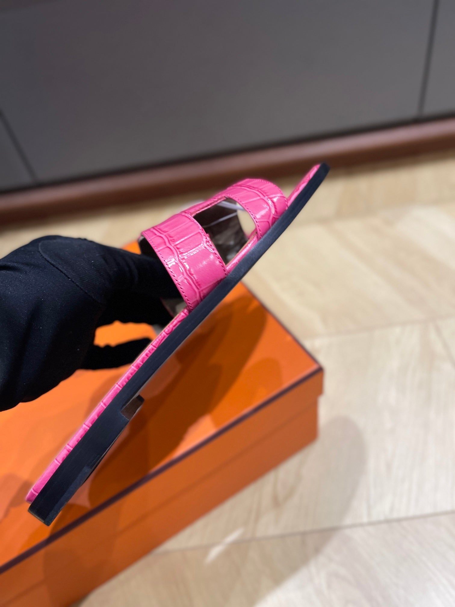 HM 26ss Oran Sandals Pink Ostrich Leather 625095