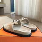 Empire Sandal Ivory Lambskin Suede Goatskin