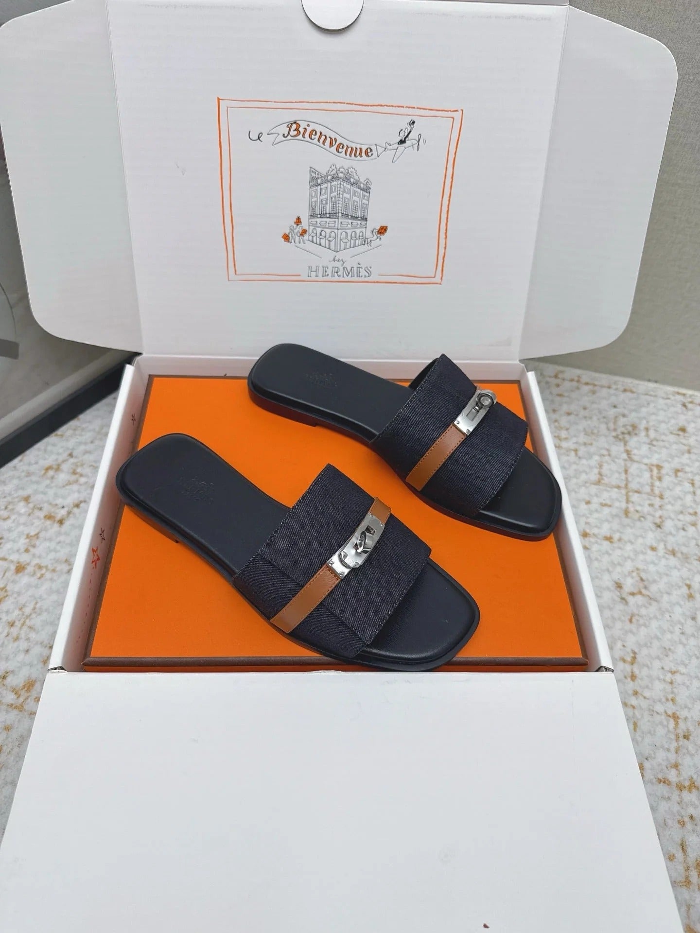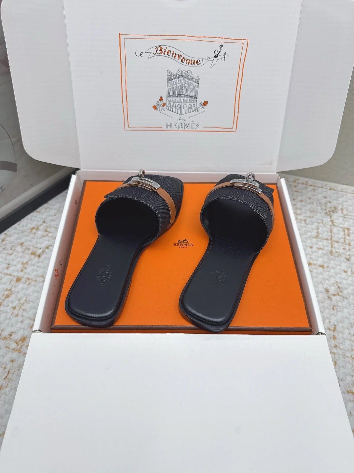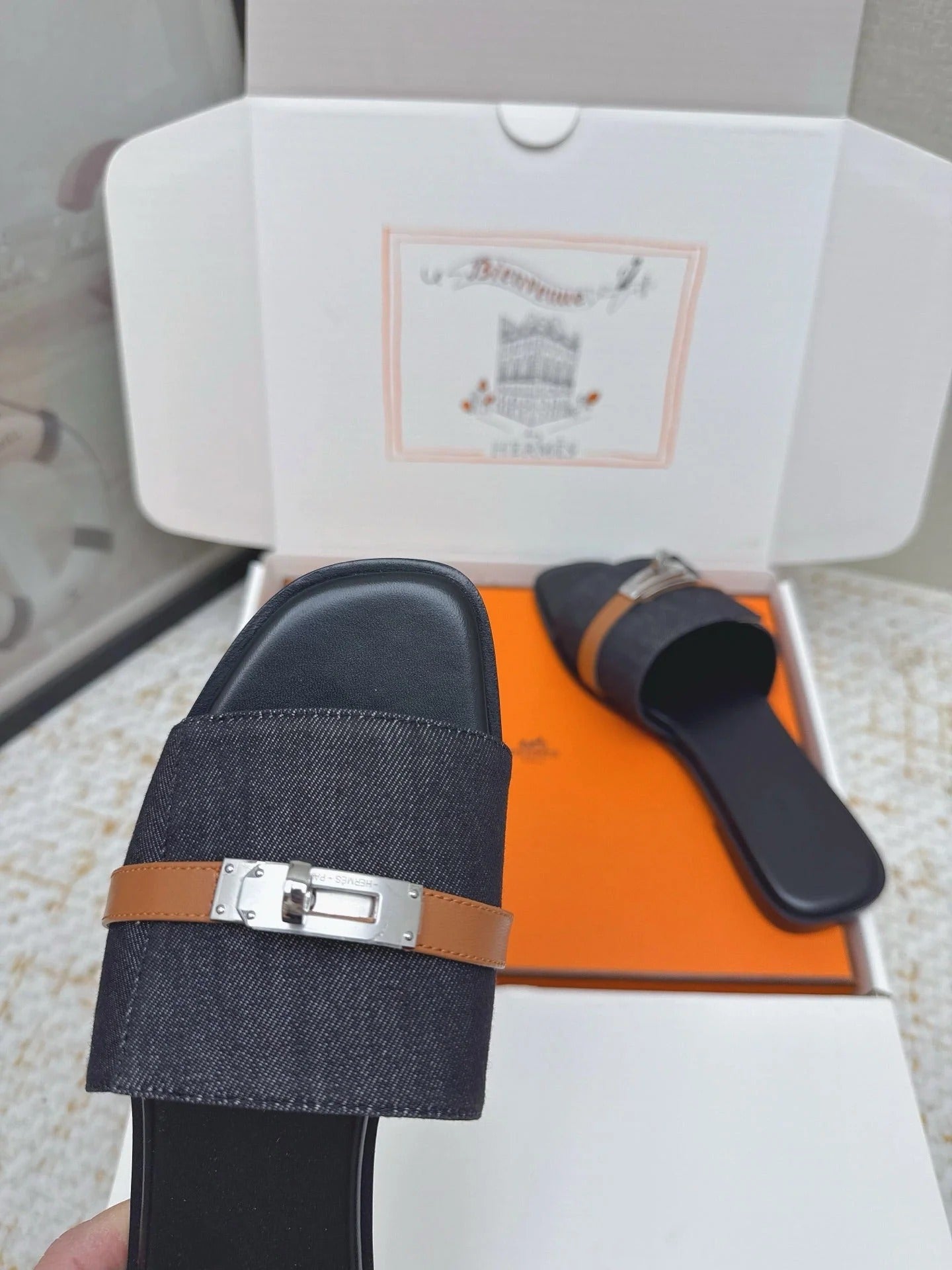 HM 26ss Oasis Sandals Navy Blue Black Denim Cowhide 625152