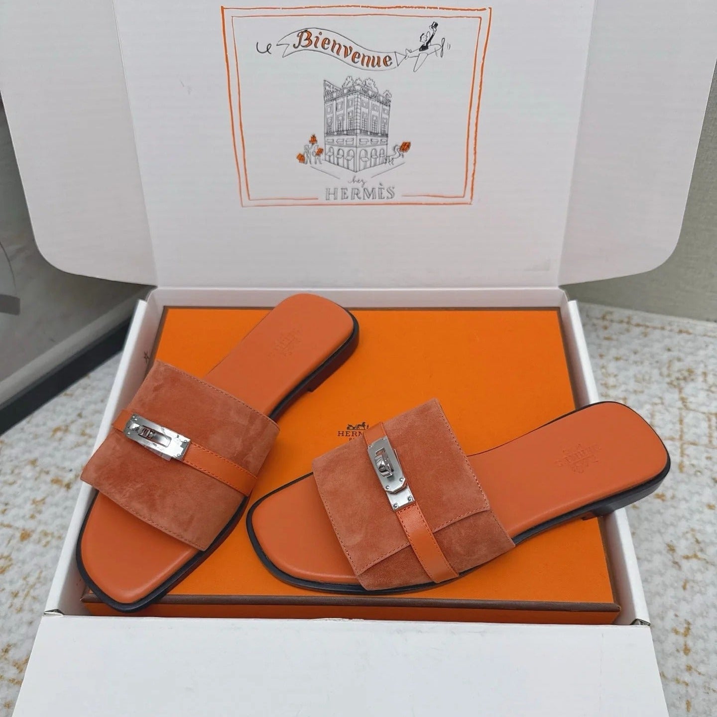 HM 26ss Oasis Sandals Orange Suede Cowhide 625176