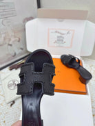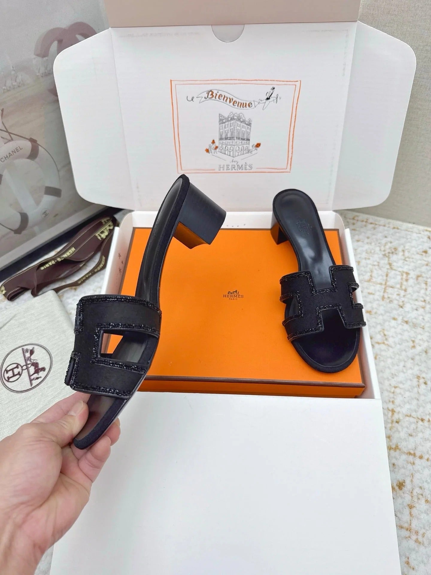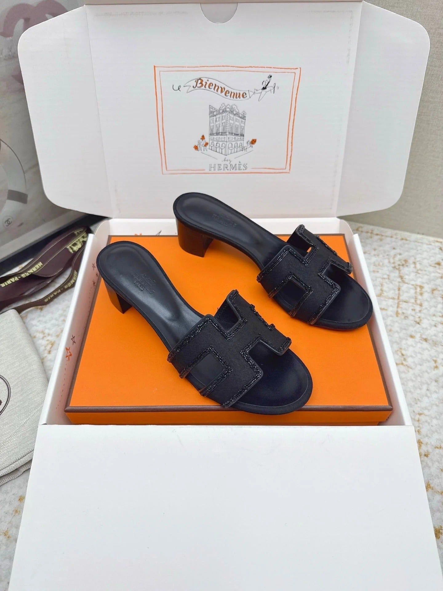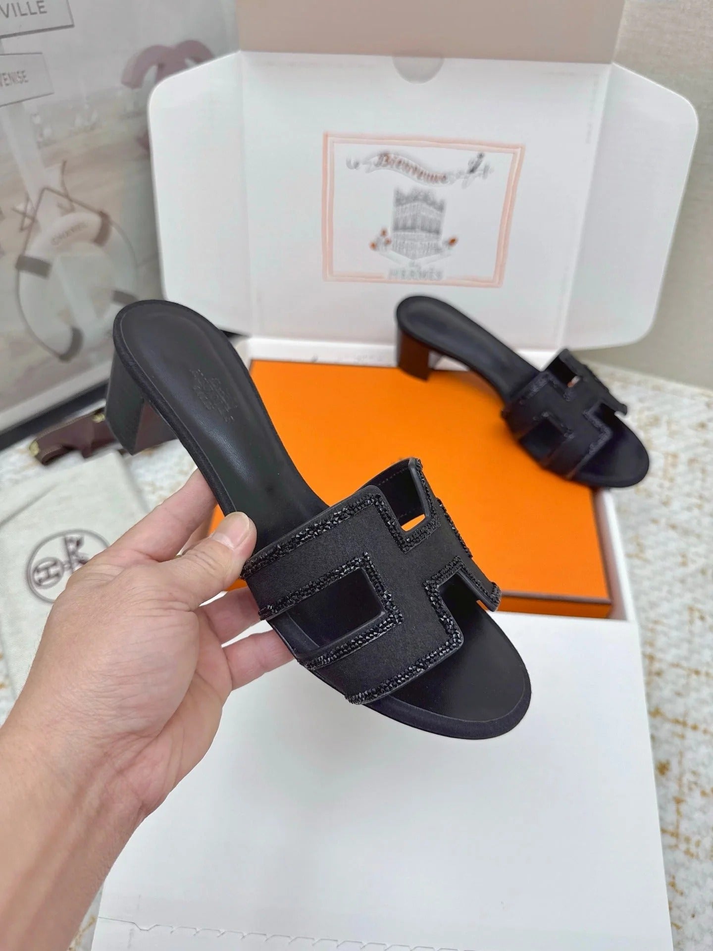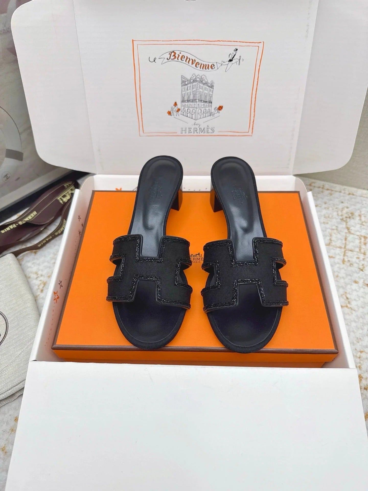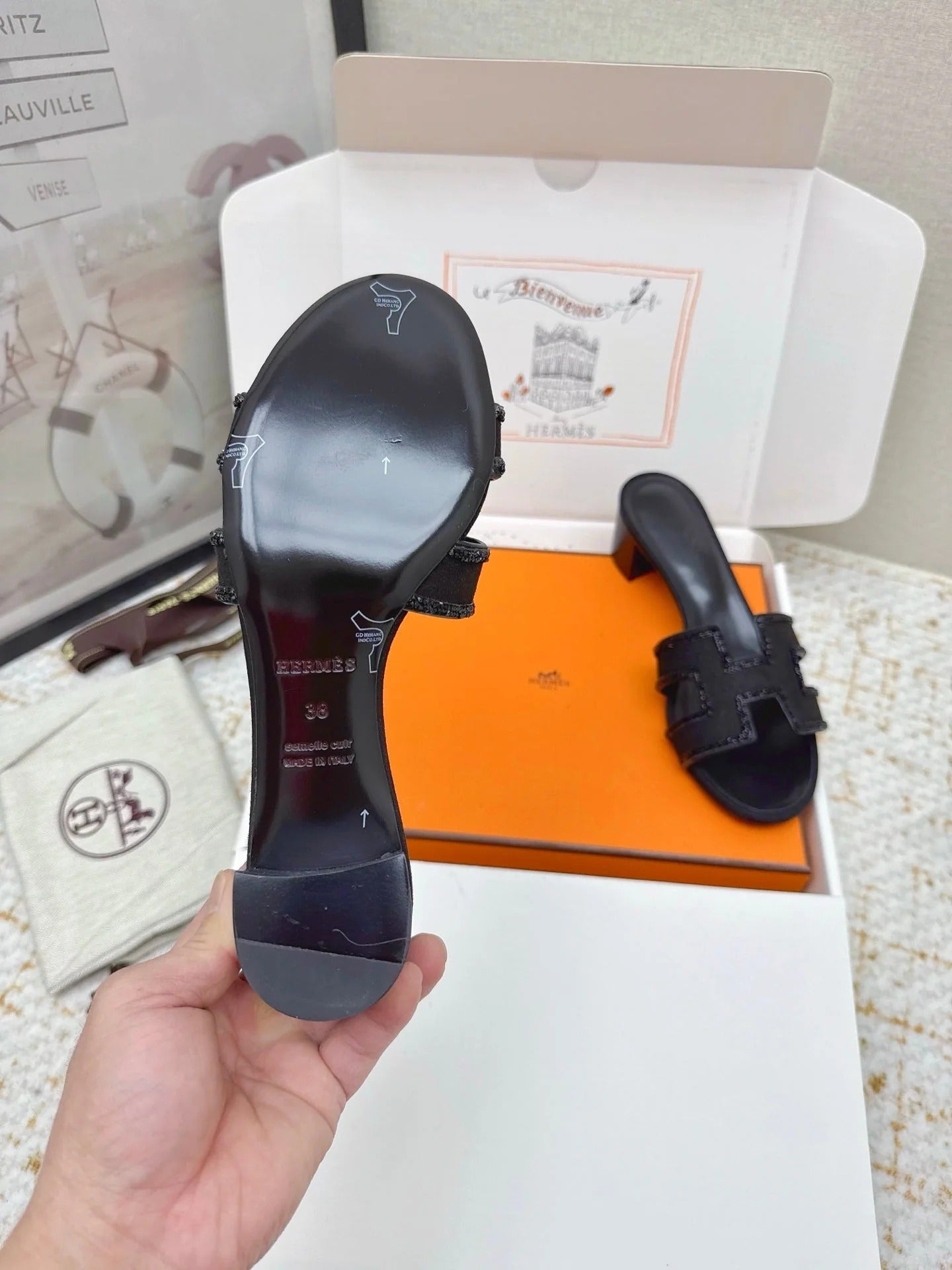 HM 26ss Oran Sandals 50 Black Sheepskin Rhinestone 625234