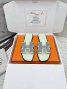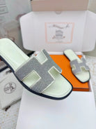 HM 26ss Oran Sandals Cream Gray Rhinestone Cowhide 625262