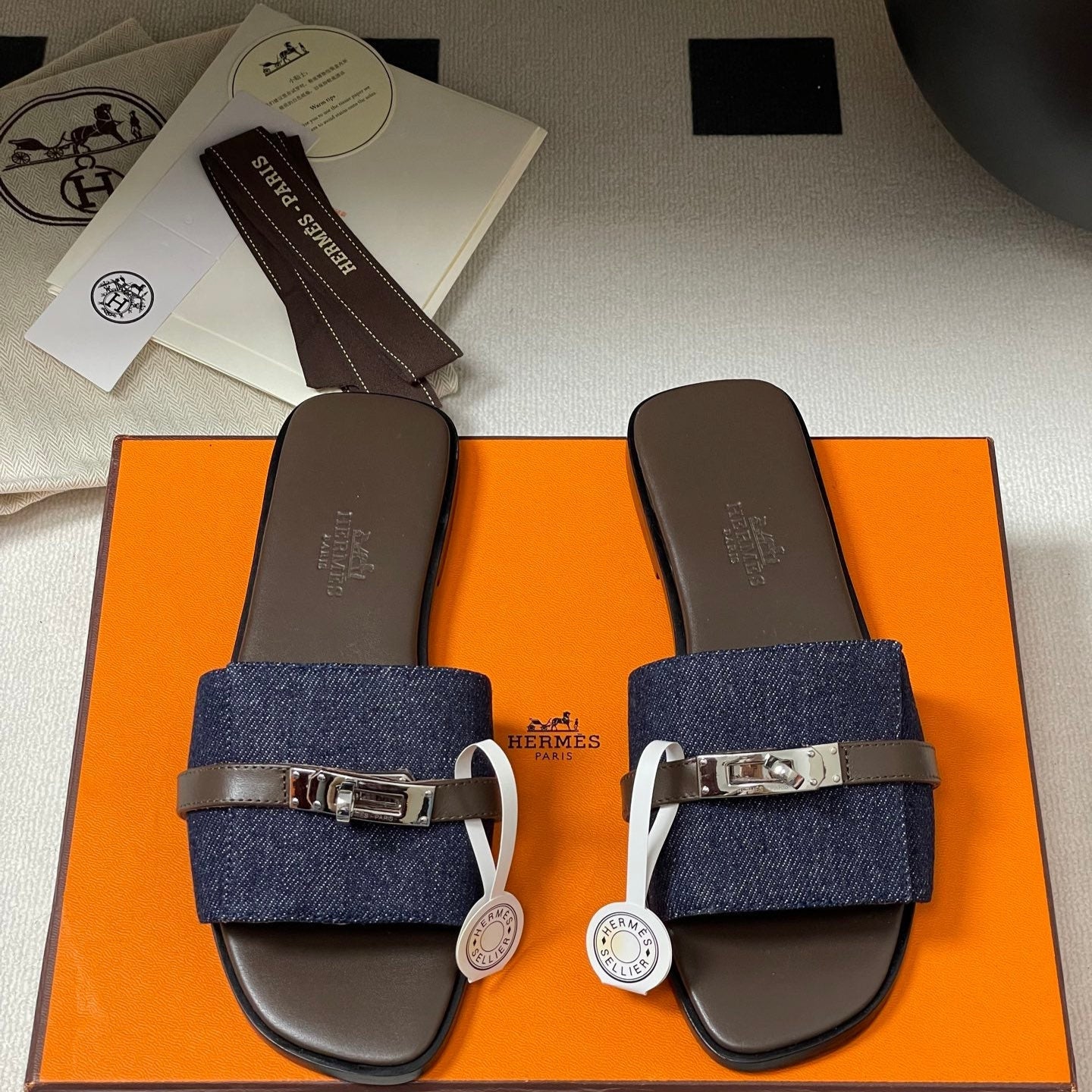 - Material: Denim, Calfskin