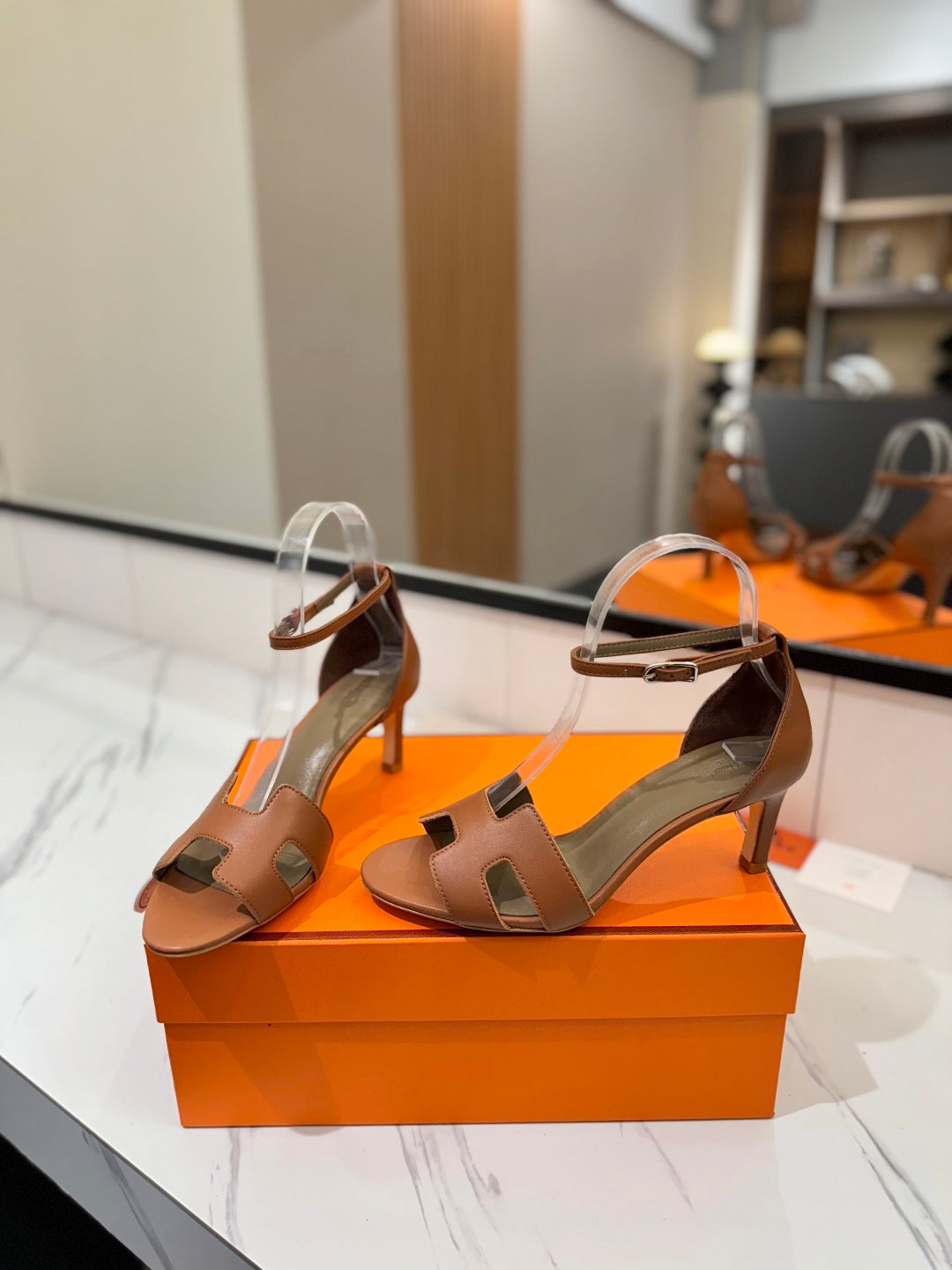 HM Joy 65mm Heeled Sandals Brown Flat Cowhide 294927