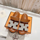 CHYPRE SANDAL BRIGHT BROWN LAMBSKIN AND SILVER DENIM