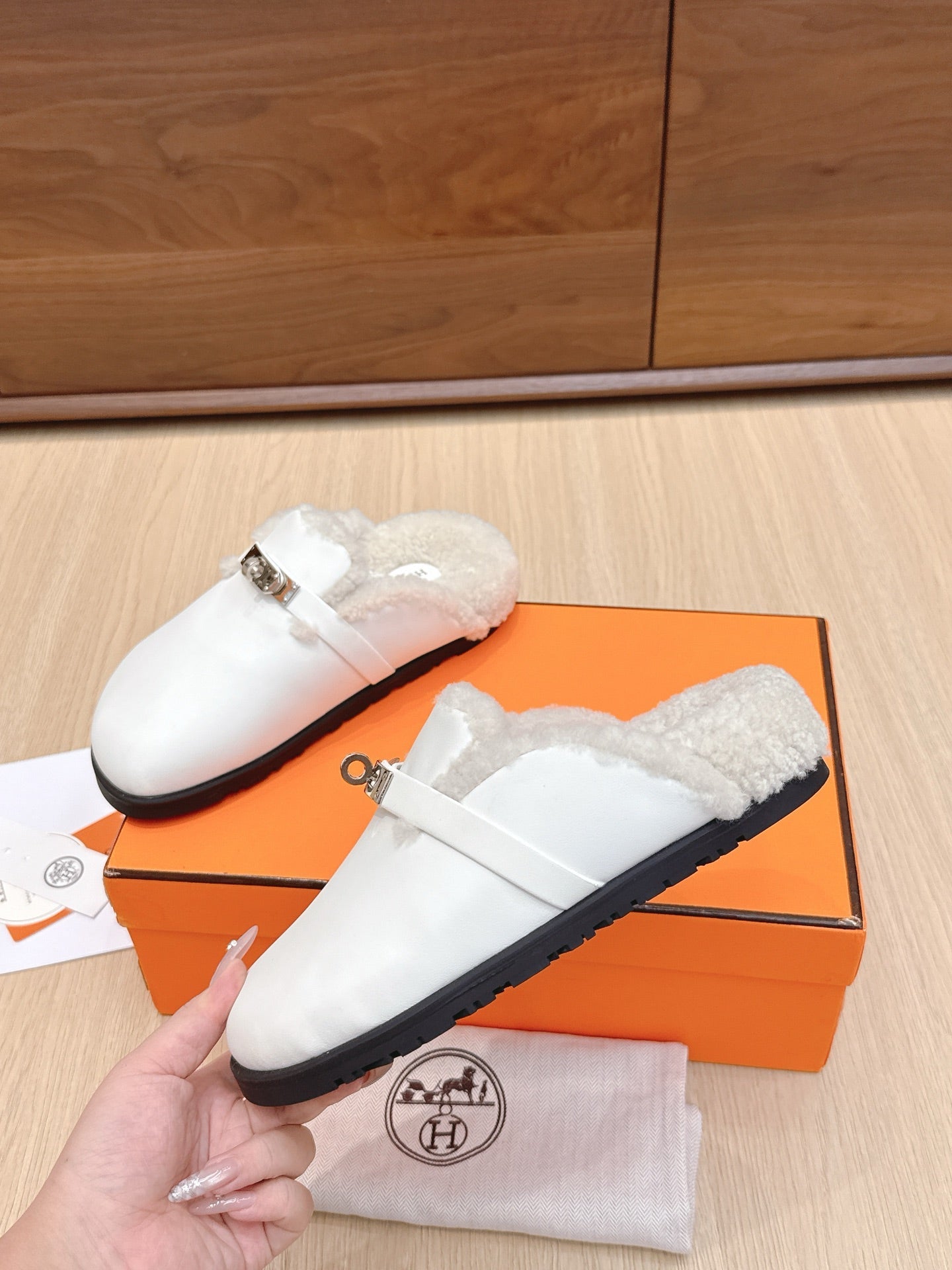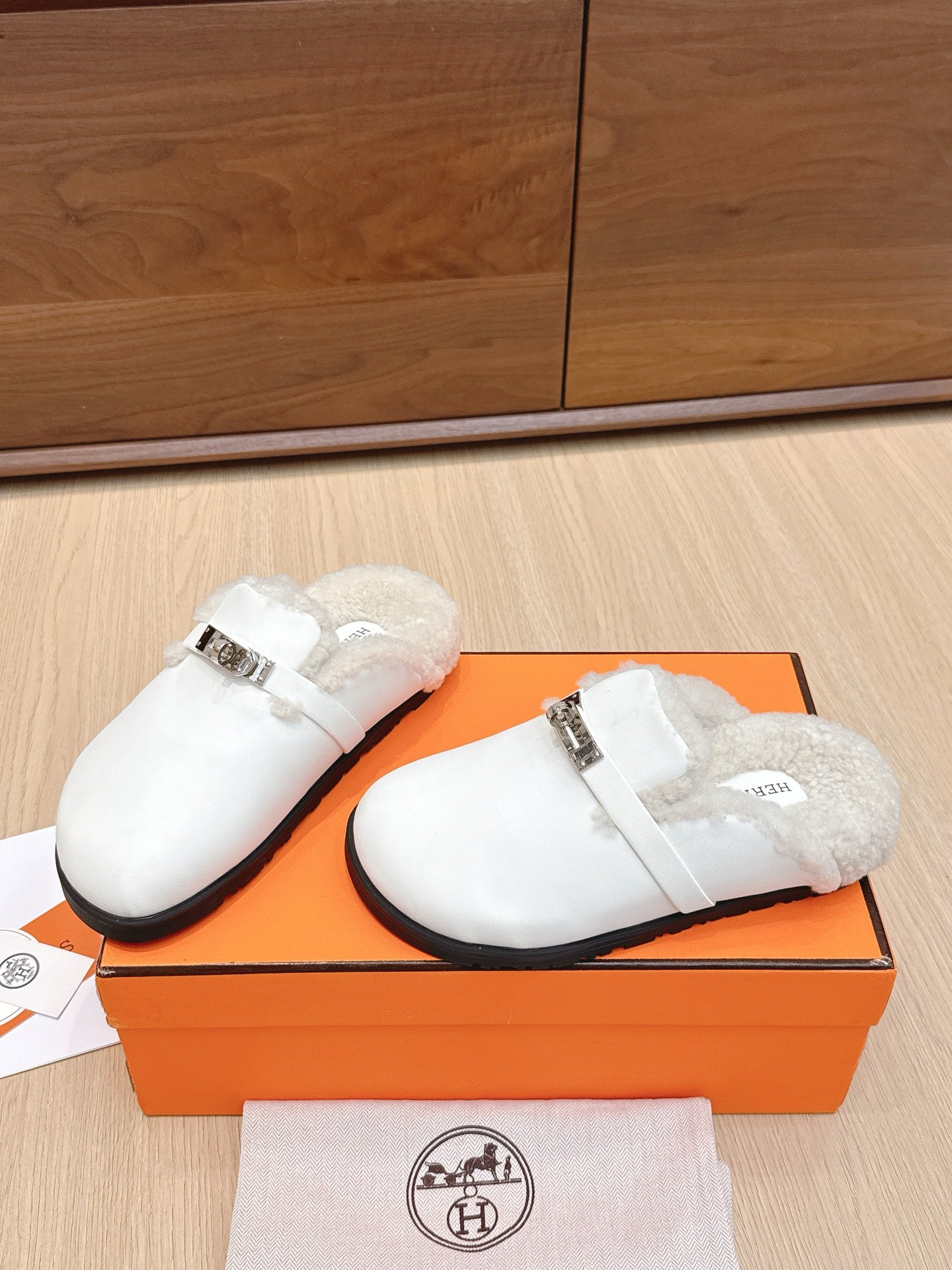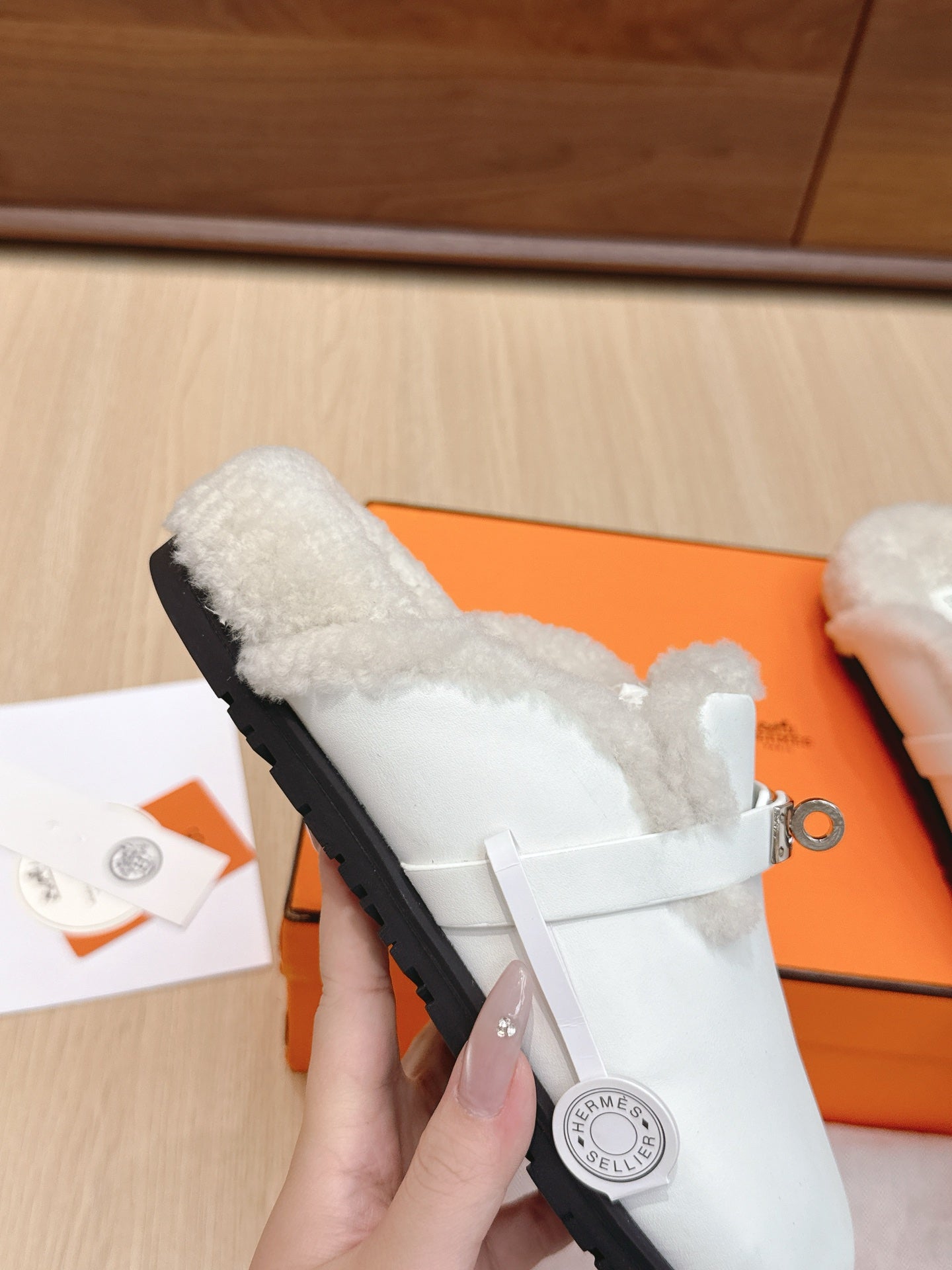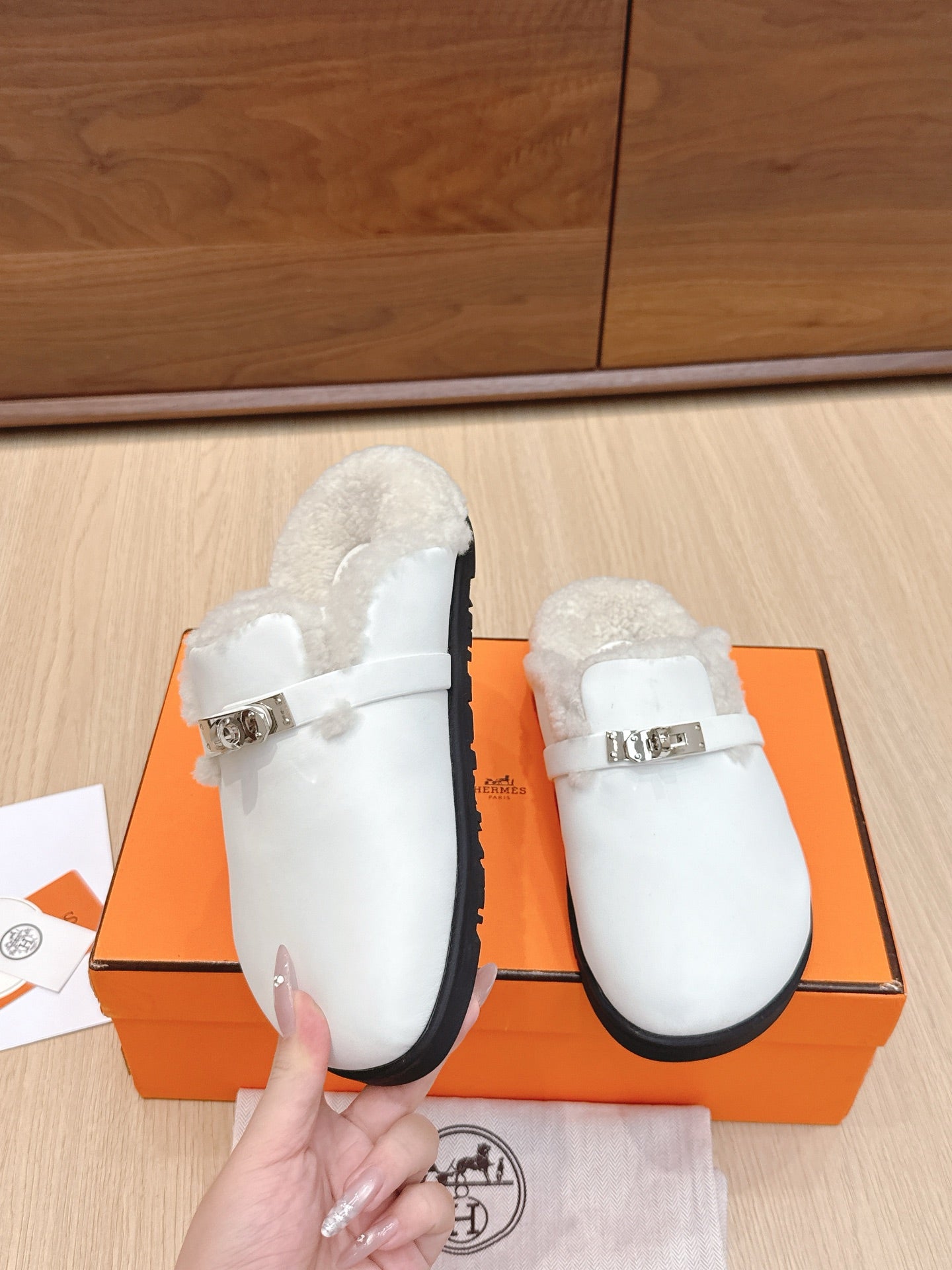 HM 25 Carlotta Mule White Shearing Calfskin 462186