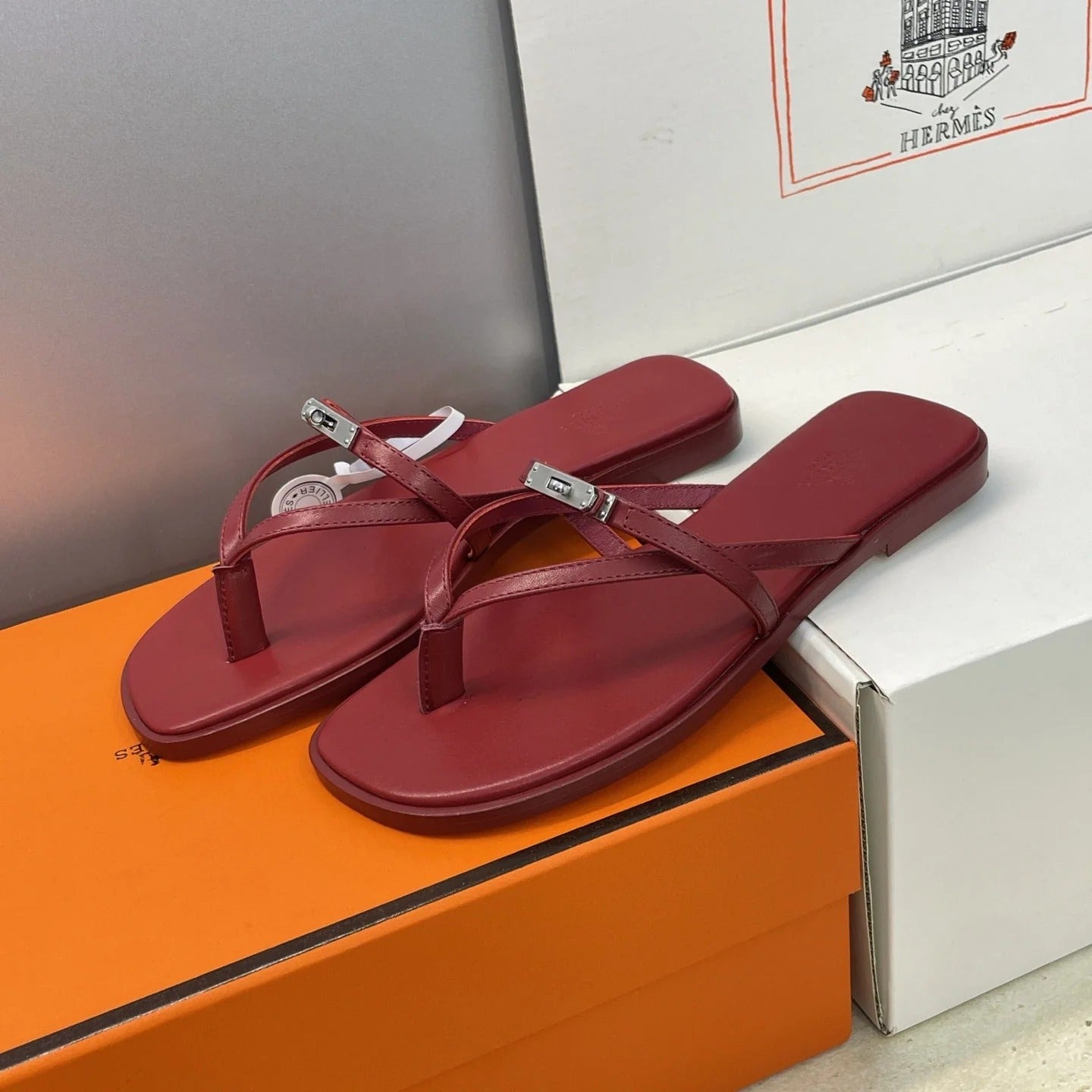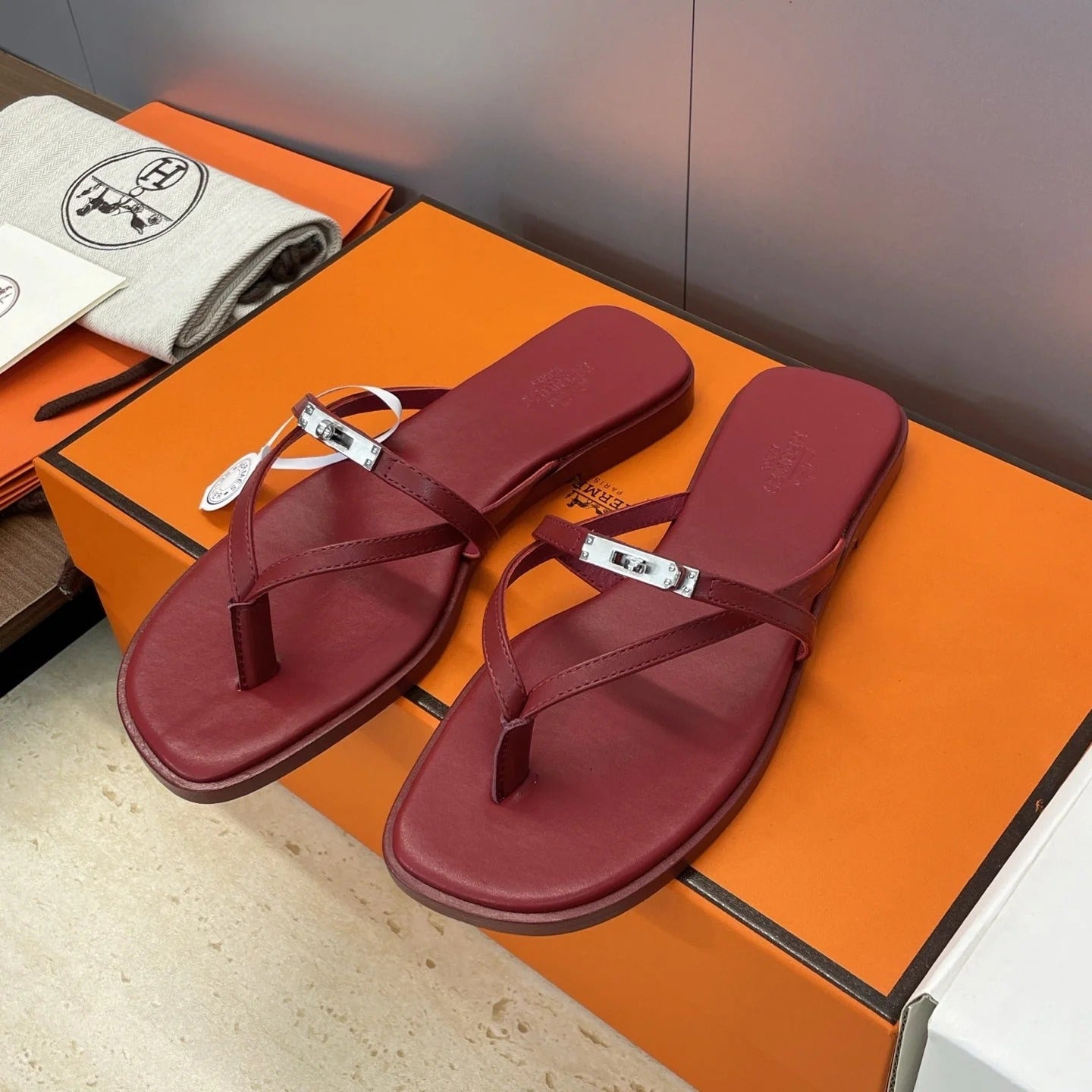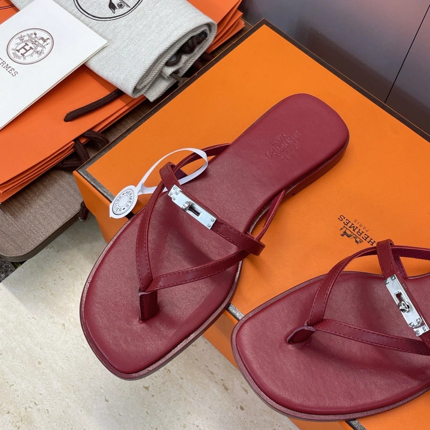 HM 26ss Kelly Sliver Buckle Slipper Dark Red Calfskin 607157