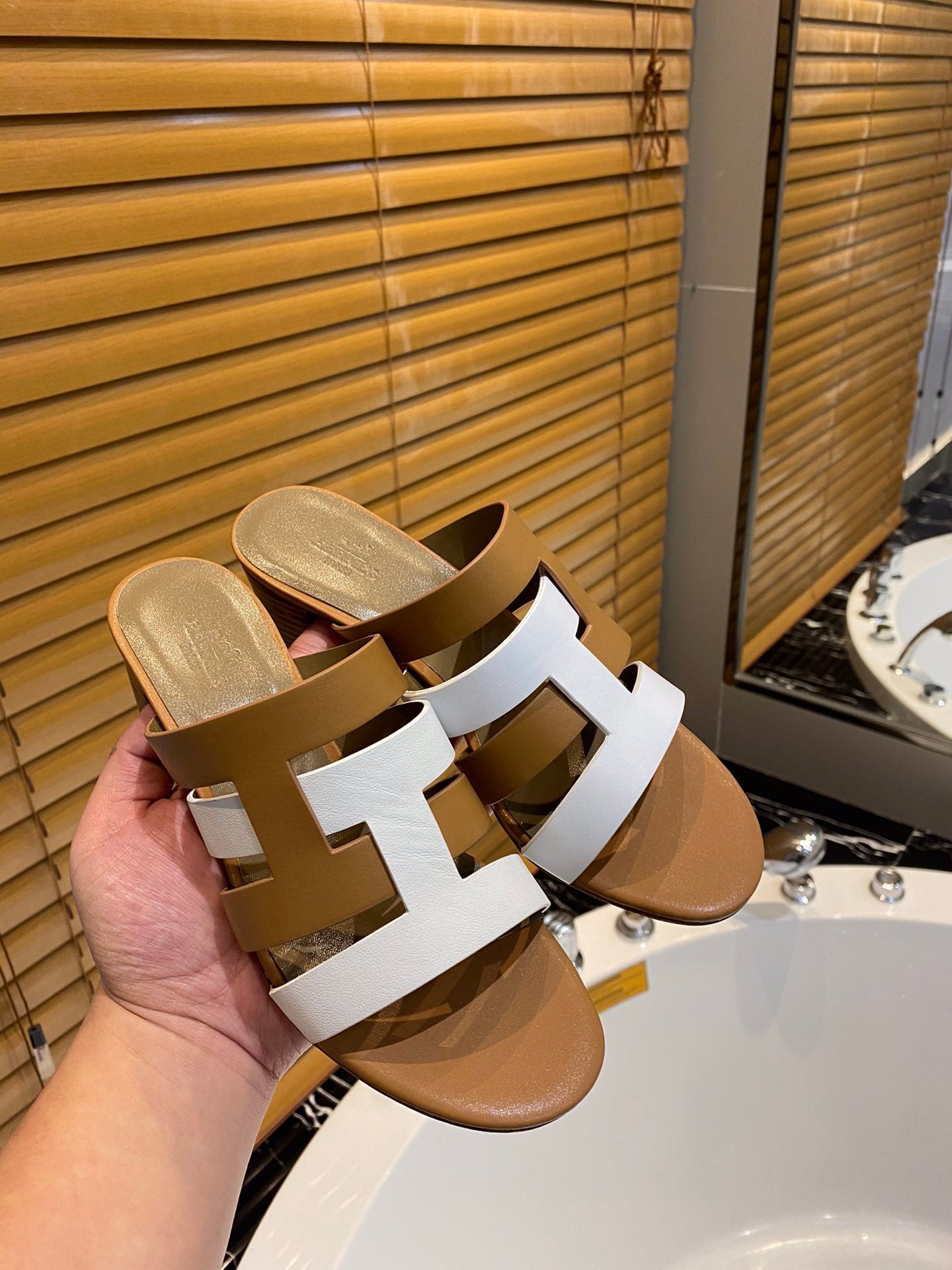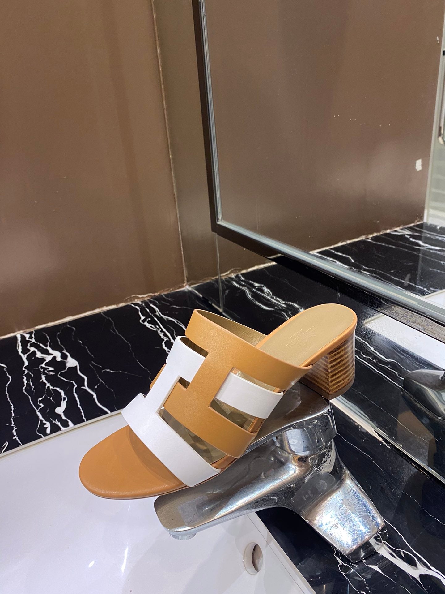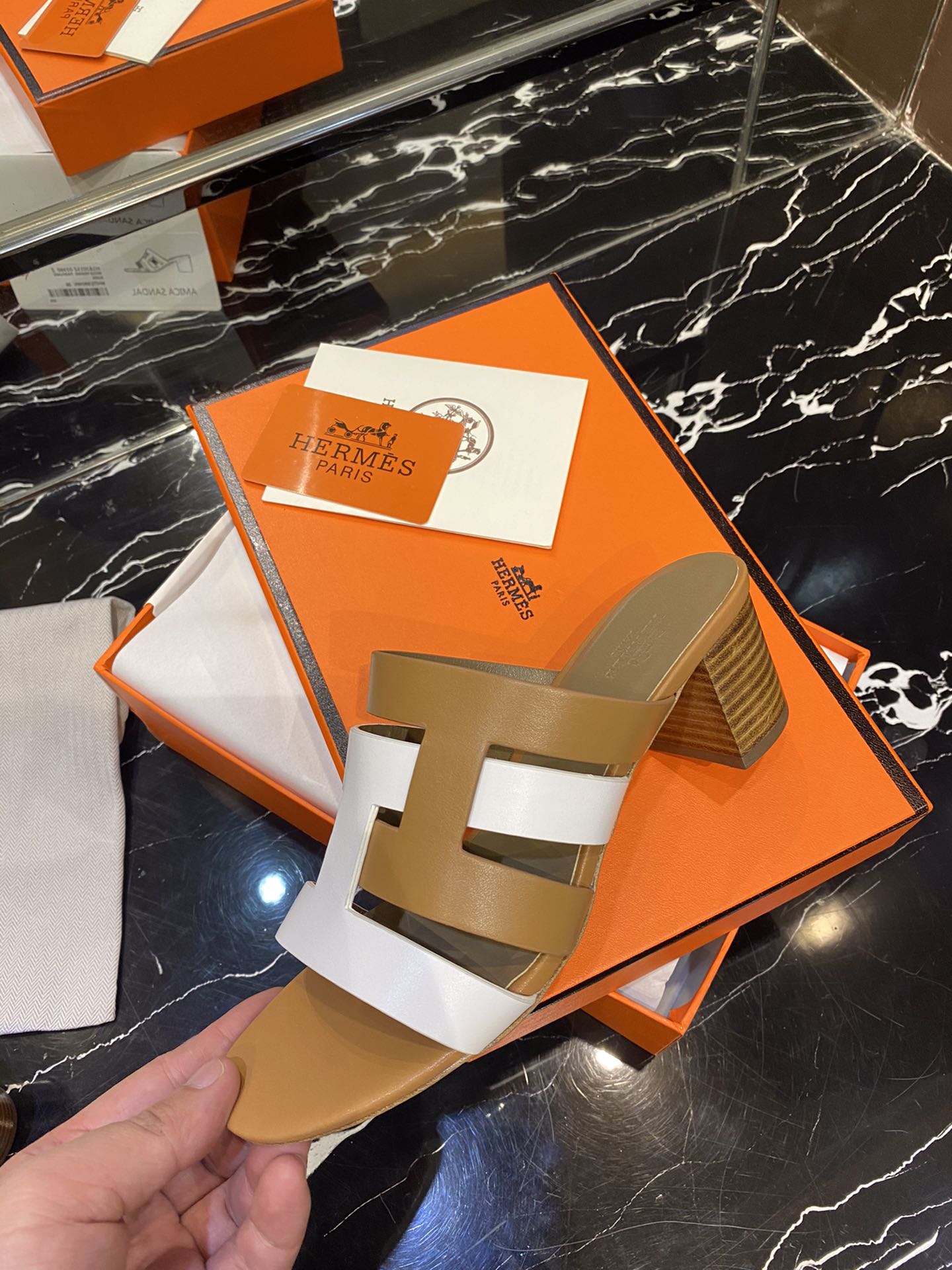 HM Amica Sandals 50mm Brown White Sheepskin 546229