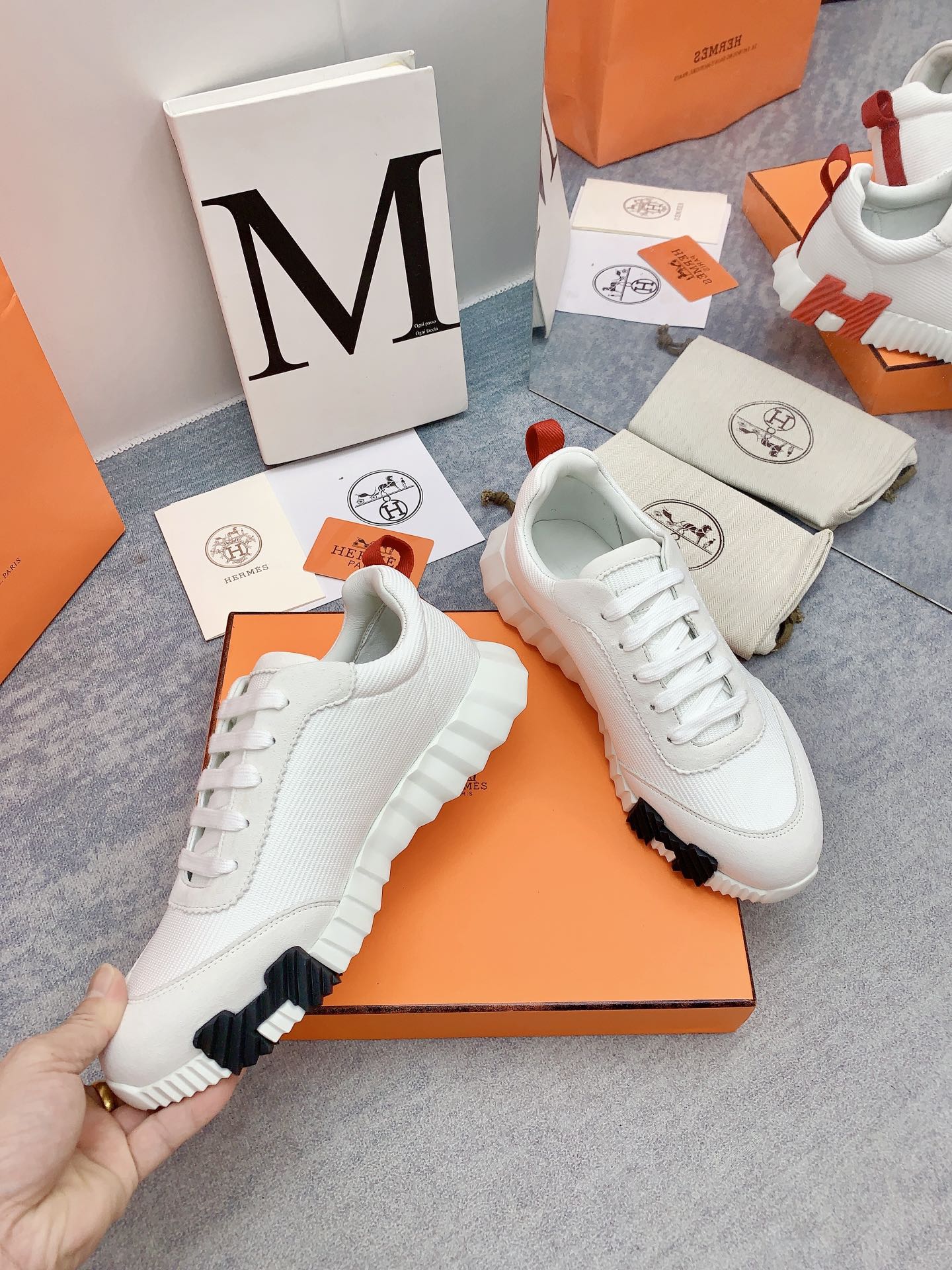HM Bouncing Sneaker In White Mesh Fabric 106463