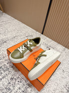 HM Casual Sneakers Sliver Buckle Olive With White Leather